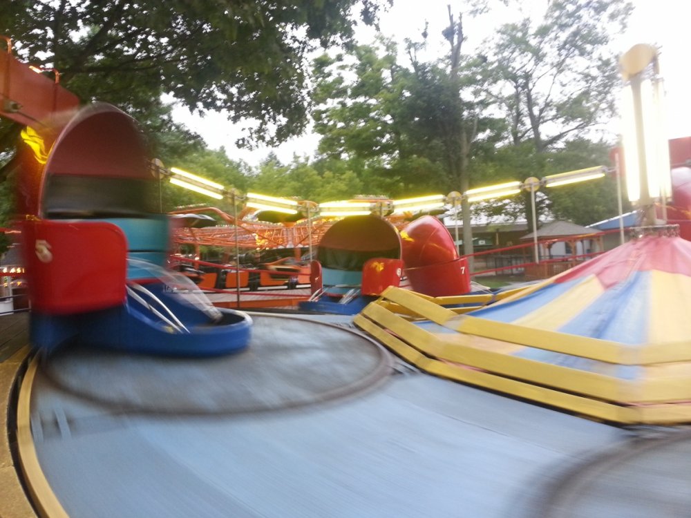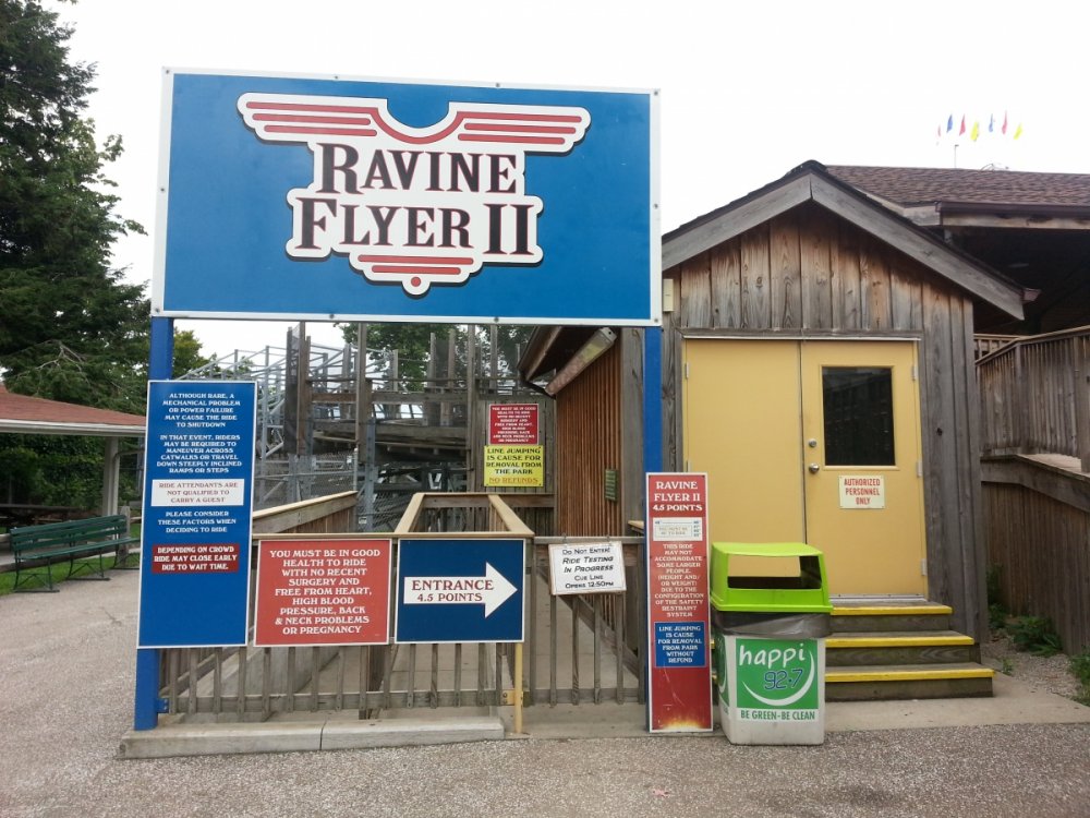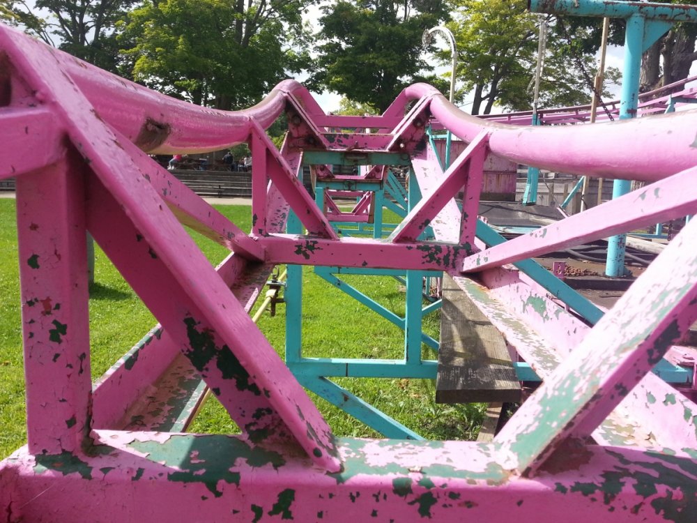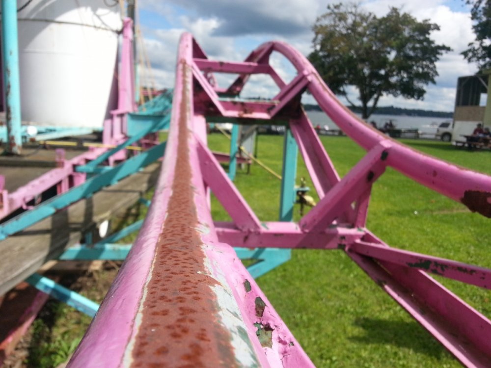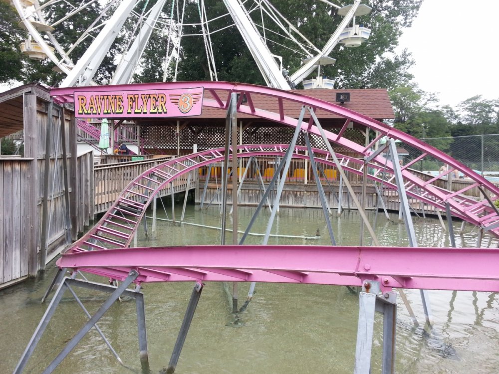 Our final parks of the weekend were Waldameer and Conneaut Lake. I was a little anxious about timing, since neither park opened until noon, and I had to get back to the airport in the early evening. Stacy was staying in PA to visit family and hit up Hersheypark, and hopefully coaster #200! Obvi the first stop of the day was Tim Horton's. It was August, but they already had pumpkin donuts! Mmm, Timbits! I wish we had these in the South. Don't take THo's for granted, Great Lakes people! Made it to Waldameer a bit before opening. It was already starting to get crowded, even before opening. Creepy! Hmm, Ravine Flyer has a sign that it doesn't open until an hour after park opening. AHHH! More clowns! What is it with this state? Well let's go check if the kiddie coaster is open. Nope! Comet was the only credit open, 45 minutes after "park opening." It was a fun little ride. Lifeguard frog has an attitude! The dark ride was fun. Steel Dragon still not open to the public... Next we went back to the kiddie coaster, which was finally open. I loved the setting over water. Yay, credit whore photo! Steel Dragon finally opened too. Standard spinner. This was a fun little walk-through. Parting shot of the Comet as we headed for the exit. Waldameer is a weird park. It has an excellent woodie and some unique rides, but the park operations were awful. It's a pretty small park, but I have a feeling they'll keep expanding. Our final park of the weekend - Conneaut Lake. This was pretty much the main reason for the trip, since the park might be closing. I'd heard a lot of bad things about the park and good things about Blue Streak, so I was intrigued. Looks good so far. Look, lawn maintenance! Hmm, the entrance is a bit deserted. It was empty, you just walk through and buy your tickets at the back of the park. First missing ride. Not too busy yet. A little run down but not bad. Look, a coaster! Through the trees! Blue Streak beckons, but first we have to go buy tickets. Another partially missing ride. After we bought our $5 all-you-can-ride wrist bands (what a great deal!), Connie told us we could ride Blue Streak. View from the Blue Streak station. It wasn't crowded, but there was a healthy amount of people. I'd heard a lot of stories of this park being completely empty all of the time, but I'd say there were well over a hundred people here. The Blue Streak station is a little run down. Pay no attention to the tarp. If this is what the running train looks like, what does the tarp-covered train look like? Blue Streak was fun. Great airtime, but a bit rough with a few jolts. Still a great ride and it would be a shame to lose it. Next we went to Devil's Den. What a unique, fun ride! There are no brakes on the ride. This guy stops you. They encourage you to stick gum to the wall. So... is it a credit? Not in my book, but there are arguments that could be made. It has a chain lift, and then is powered by gravity on a wooden floor. That guiderail in the middle isn't powered, it's just a guide. And check out those shopping cart wheels! Time to go to Kiddieland! AHHH! KILL IT WITH FIRE! Another credit whore moment. Except... DENIED. Another "absolutely no adults" coaster. This part of the park was less crowded and looked kind of abandoned. But this part was busy, with live music. SBNO Toboggan in the field. Corkscrew, or Toboggan? The train was stuck in the tube. This ride is definitely never running again. Coaster porn! It was kinda neat to be able to just walk up to it. Reverse POV! Rusty rail rider. (sounds like a cocktail, or something dirty) EWWW. What is it with the Pepsi? The gift shop had lots of Geauga Lake merchandise for some reason. Another ice cream credit. Yum. They've got a classic tumblebug too. Crowds continued to pick up as we were getting ready to head to the airport. One last stop at Blue Streak! First drop goodness. Seems Legit. So, Conneaut was interesting. It is indeed run down, but wasn't as bad as I expected. There were definitely areas with fresh paint and new benches and landscaping, but then there were abandoned rides just sitting around. I hope this park doesn't close though, because Blue Streak and Devil's Den are two great attractions. Bye Pittsburgh! Hope to see you again soon. Made it back home. We got in line for Ravine Flyer, which was about to open. It was a great ride! Smooth with lots of airtime. It's in my top 15 woodies. Unfortunately I didn't get any pictures of it - it's hard to photograph from inside the park. -