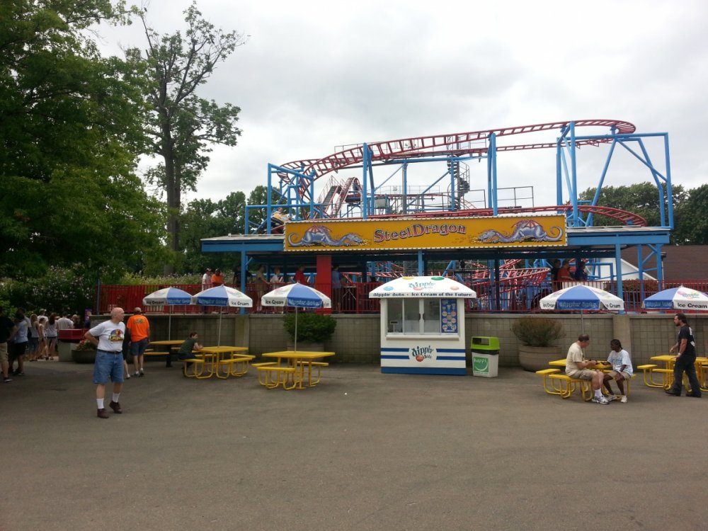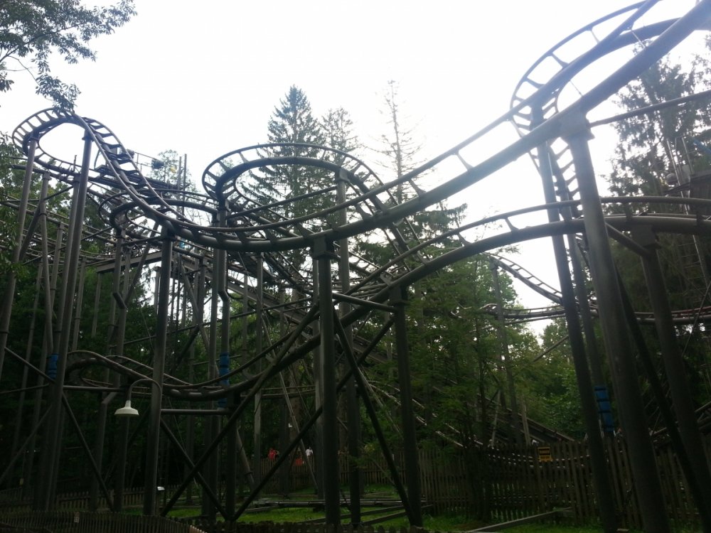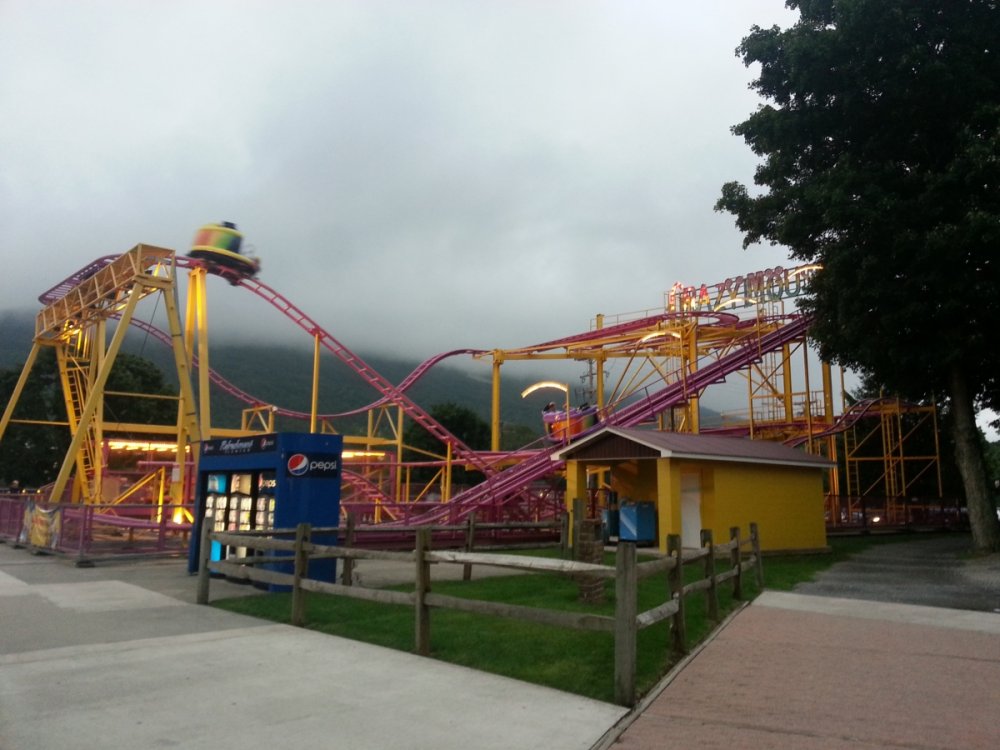 Back in August, I decided to take a trip to some Western Pennsylvania parks and visit Conneaut Lake amid rumors it might be closing forever. I'd been to some of the parks in the area before, but not since the late 90's, so there were plenty of new credits! I met up with Stacy (Naina21) and in less than 48 hours we visited Fun Fore All, Kennywood, Idlewild, Lakemont, DelGrosso's, Waldameer, and Conneaut Lake. First things first: Caught a flight from Atlanta to Pittsburgh after work on a Friday. First stop - Fun Fore All! Yes, this was a credit whore stop. I have no shame. The one and only credit at this FEC just north of Pittsburgh. Not the first Fiesta Express I've been on... It's a small but well kept park, with just a couple of kiddie rides, some bumper boats, go-karts, and an indoor arcade. Park map! Next stop, local beer! Found a little brewpub called "Shu Brew" in the next town north of my hotel. Pretty tasty! The random hotel I got on hotwire had a big atrium lobby. It was in a place called Cranberry Township, near Mars, Seven Fields, Economy, and Zelienople. Pennsylvania is weird. I met up with Stacy Saturday morning and we went straight to Kennywood. I hadn't been since 1998, so there was lots of new stuff. Exterminator has low capacity, so we headed here first. What a great mouse in a box! I unexpectedly enjoyed this a lot. I love that Kennywood has so many classic rides... even if operations leave something to be desired. It was still really overcast and threatening to rain. Phantom's Revenge wasn't open yet, almost an hour after park opening. But Sky Rocket was open! This was a fun ride. It has a weak second half, but is overall really enjoyable. It broke down right after we got off it. Awww, a kiddie whip. So cute! Even this deadly ghost is adorable! What time is it? Credit whore time! Wheee! I feel less weird about going on kiddie coasters when there's another coaster nerd riding with me. Finally the skies cleared and Phantom's Revenge opened... with one train. After an hour wait, we got to ride. Excellent ride, but Superman at Six Flags Mexico is my favorite Morgan coaster (unless you count Chance/Morgan, in which case Lightning Run wins by a landslide). We were a bit short on time, we both already had all the credits, and the park was starting to get crowded, so we hit the road for our next park. OK, one last shot of Phantom's Revenge from the parking lot. Next stop: Idlewild. This park was new to both of us. The atmosphere near the entrance was great - lot of trees and vaguely "mine town" buildings. The park was very busy and full of families. Coaster time! This is a really neat old family terrain woodie. Next up was the bizarre Wild Mouse. Such a weird little coaster. It was formerly at both Weiner Prater and Alton Towers. The cars are really cute! There were only two operating, so the line moved *very* slowly. It's a rough, weird weird weird ride. Watch out for the brakes. Part of the lift hill is tilted. Not the structure, just the track is purposely tilted to the right. I told you it was weird! Had to get some potato patch fries. They were OK. *ducks* Idlewild was a great family park. It's definitely a bit pricey, but is much larger than I thought it would be and has great atmosphere and some neat rides. We could have spent a little more time wandering around, but we had several more parks to visit and wanted to stay ahead of the rain. Next stop, Lakemont! We arrived at Lakemont a bit before a baseball game started in the park next door. There was a lot of traffic and people - we crossed our fingers that the park wouldn't be crowded. Landmark sign near the front of the park. I already had all of the credits here since they literally haven't built anything new since I last visited in 1998. Hmm... the park was empty. I mean EMPTY. There were maybe 12 other people in the whole park. 20 if you include employees. Skyliner is the second oldest woodie in the park. Could use some maintenance. Check out the baseball game in the background. Americana overdose! It's still a fun ride. Lakemont could really use some TLC! I know we hear a lot about Conneaut Lake possibly closing, but this park is probably on the endangered species list too. Kiddie coaster credit... DENIED. Apparently they have a strict "no adults" policy. They didn't used to, because I remember riding this in the late 90s. Stacy rides the Toboggan. I smartly sat this one out. Storm clouds were moving in again... An awesome mural of various foods that aren't for sale in the park. Ummm... tapeworm? Time to ride the world's oldest roller coaster. Leap the Dips is a classic. A terrifying, about-to-collapse-or-fly-off-the-tracks classic. When we were just about to leave, we saw a wedding party. Check out those heels! OK, I guess not all of the park looks bad. There are some decent parts. Our final stop of the day was just up the road at Del Grosso's. I visited here back when it was called Bland's Park. Now it's a spaghetti factory or something. It's night and day between Del Grosso's and Lakemont. Lot's of landscaping and well kept rides here. First stop, Wacky Worm. And not just any Wacky Worm... My 600th coaster! I think it's completely fitting that it's a Wacky Worm. Wouldn't have it any other way. The park has a small drop tower. And lots of flat rides. This operator was bored since it wasn't very crowded (thanks to the threat of rain). Ran over to the Crazy Mouse and got in a quick ride. Look at those clouds! These clown games are creepy. More creepy clowns! Ah! After getting the credits, we got some ice cream credits. This counts as two ice cream credits, right? Swirl? Tilt-a-whirl! Lots of Italian-ish food in this park, since the owner is a jar of spaghetti sauce. I think. Ewww, "Murf's potato salad"?? EWWWWWWWWWWW, PEPSI PRODUCTS!!!! Bye bye Crazy Mouse! Bye bye scary drop tower! Bye bye scary clouds! After driving through a downpour, we made a quick stop at Fun Fore All so Stacy could pick up the credit. Stacy 