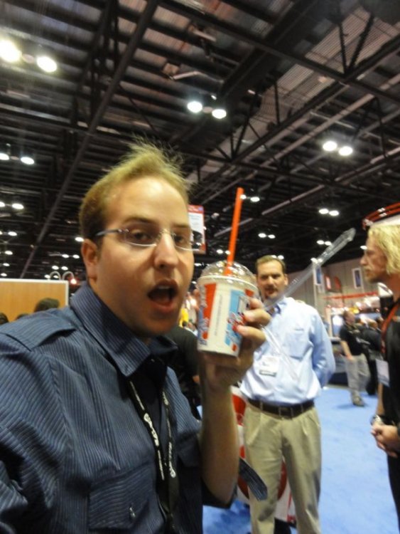 The Bryan and Adam Show Go IAAPA! Ah, it's that time of year again. The air is slightly less humid, the driving is slightly less Outrun-y, and Adam's horn recedes. It must mean it's time to go IAAPA! We got some notes from Coca-Cola (proud Bryan and Adam Show sponsor) that we need to "sex it up" a little bit. Whoa whoa whoa. They said a LITTLE. By the way this building has a Delorean on top of it. Y'know, 'cause future. There was a bunch of these laser mazes this year. It's like lasers just became cheap enough to use. That can't be it, right? Sincere question. Adam had to take a bathroom break after the lady touched him. He came out 3 minutes later, looked exhausted, took a quick nap, then was ready for more show. I JUST AGAIN ALL OVER MYSELF A wild Texas appears! Adam got very upset by this. They had a dance battle to prove dominance whoops I forgot to get a picture oh well guess you'll just have to believe me We really had a funovating time there. Just got a call from corporate. They said to TONE IT WAY DOWN And then Adam spotted it. And lept inside, shocking the security guard (pictured). Then, suddenly, ennui. You have to understand, doing the Bryan and Adam Show has made us extremely wealthy. We have so much money that if the moon is JUST RIGHT, cash will orbit around us. Oh, I should mention, we were shown around IAAPA via hovercraft. With a security detail. Texas had to walk. And then I took a little demo of this weather controlling machine. It claims to be able to cause hurricanes. Maniacal laugh! Maniacal laugh! Now, to finally destroy the Bat-man! Here's some unsolicited advice: don't sell cheesy hot dog bites and mini do[ugh]nuts at the same time. You guys, we are SO wacky! Yes, ketchup seasoning. If you can't read that on the bottom it says "Great for: potatoes, veggies [not including potatoes], burgers, chicken, pasta, soup, bread, yogurt, cereal, and lollipops." I don't know what this is but I think rich people have these things so I want it. You guys, they got all 9 dimensions in one movie! Let's count them off, shall we? There's the x, y, and z planes as your standard 3 dimensions. Then time. After that there's touching tasting seeing hearing smelling and getting sprayed with water. That's all 9, right? FIESTA HOY Look! It's my favorite character! The Foot Locker Bear(?)! So Adam barged into this booth and was all LET ME SLIDE DOWN THIS ON A TUBE And they were all K And then he kinda just sat there a while. It was weird. We directed the hovercrafts in the direction of outdoors. I guess we can ride something. Wait, what's this? I thought it was some sort of moving tree, considering its colors. They really had me fooled there! The moving tree ride was fun but I still resent it for tricking me. So we went back inside and found this, the ice cream of the future! In the future, using the letter Z instead of an S is not considered condescending! Then we went back to see our employers Adam tried Slurm. He says it's highly addictive. Also they told us to sex it up again. They need to make up their minds because we can't handle these mixed messages. You guys. Rasta mushrooms. You. Guys. This bag is also a liar. This car is purple. That's a real person. These captions are difficult to write. Here's Adam, ladies. Here's ALL of Adam. ...Ladies Oh by the way he's about to do the ropes course ...Ladies. And now begins a brief section, entitled "The worst pictures of Adam" This one speaks magnitudes. Thus concludes the section, "The worst pictures of Adam". Thank you. I can't even I don't know do you really need me to make a joke about this? So Adam has started doing this weird thing where he acts normal, then every few steps he takes, he poses and stares right into the camera. I'm not saying it's bad (it is) or stupid (it is), but maybe he's just gotten so used to the paparazzi that he just plays along now. Or maybe it's some sort of sick compulsion and he gets his jollies off from it... Yeah, yeah, definitely that last one. I yelled up to him "I'M GOING TO TELL THEM YOUR SECRET" But it only made him mug even more! It's like he wants people to know. He's a sick, sick man. Then he started touching himself, and then it got weird for everyone. I had to take a step away. Not literally step, of course. I hovered away. I decided I'd go panning for ...stuff... to get my mind off of it. And voila! Stuff! That bag is in one of the 300 bags of crap, and boy is it. I heard SeaWorld was impressed with Potter's ride system so they're going to use this one for Antarctica. Oh! I found Adam! We went to go pull some frog tongues together, which sounds like a euphemism. Because it is. We went to go murder some people. Notice how the professor has no students? Notice how he's sobbing? We pulled so many frog tongues. Babies making babies! A paradox! Gasp! And then I was all "Get a load of this chump's hovercraft! He drives it himself! Chump!" And that's the abrupt end to The Bryan and Adam Show Go IAAPA. Hope you liked it, and thank you for reading. I'm gonna go pass out now. -