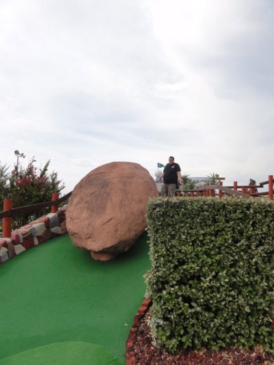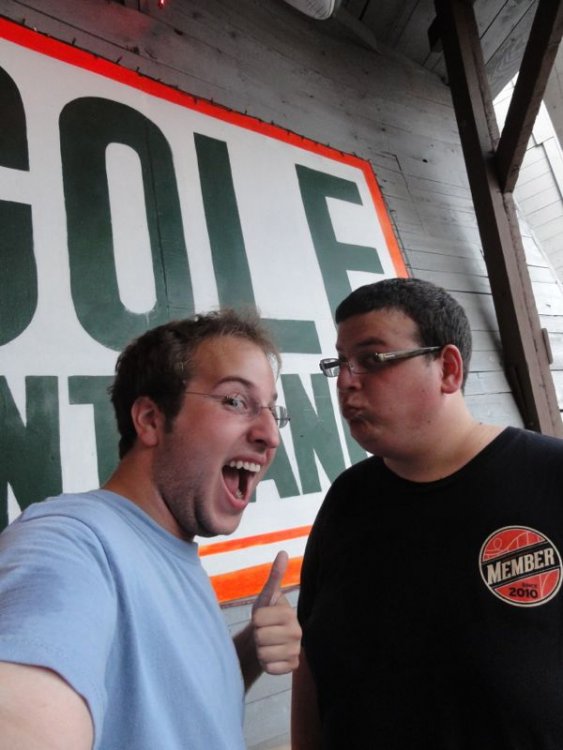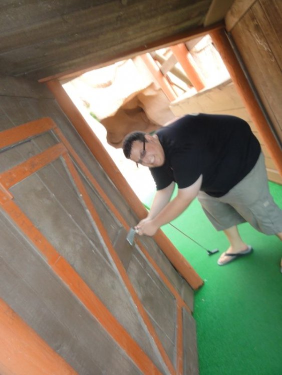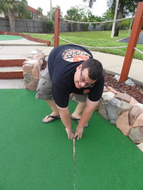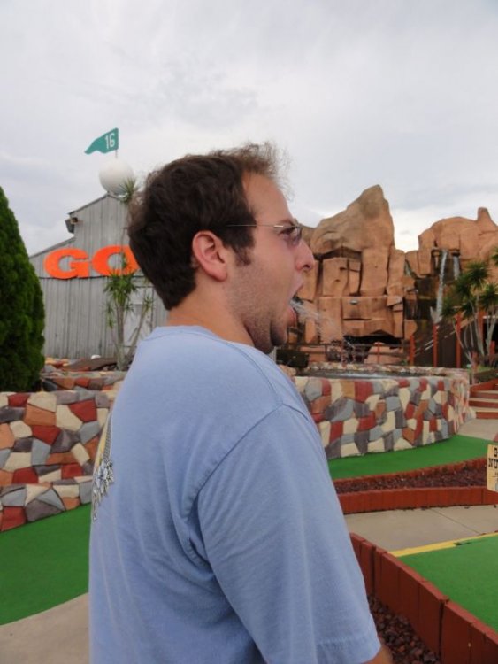 Bryan and Adam, in their Odd-est-venture yet! Since I don't actually say it in the update: Stay far, far away from Bonanza Golf. Now, enjoy. Welcome to Bonanza Golf, located on beautiful Cici's Mountain! See? Little known fact: all of this is naturally occurring. Oh! we must be in the right place. Also, I found a free knife in this cool themed bench that they had! Sometimes it's nice just to enjoy nature. Natural nature. Supplies in hand, Bryan and Adam set off for odd-venture. First, the art gallery. This piece was from 2006 and done via graphite on painted wood. Just to think, this took millions of years to form. Moishe had us play on the gold nugget course. I wonder why. Good thing I kept that knife. Clearly someone forgot their hiking gear. http://boingboing.net/2011/11/01/pictures-of-people-about-to-smash-something-but-they-obviously-arent-really.html Fact: Adam is 90. It's so weird how the grass is 2 different colors. The bottom one must be nutrient-rich from people shitting themselves with excitement. Ew gross don't touch it And of course it got stuck in there. What did you think would happen? If you'd like to see golf ball POV, click "like" on Facebook. Anywhere. All of a sudden, Adam started scheming. "First off, I'm going to tell those punks to get off my lawn, then..." "I won't break my hip because I hear it's very expensive, then..." "Oh. That was all." It's really quite beautiful here. Grant W... Where have I heard that before? I should explain: these are called "cave paintings". While they appear to be coherent thought, they aren't. Some used tools such as "cray-on" to draw their crude ramblings. While others used bird poop. This one is particularly interesting, as it shows not all of these people were neanderthals. Some were bears. It truly is a sight to behold. What's amazing is how you can just drive through the mountain to and from the parking lot. It's a shame that they put these GOLF signs up though. They really ruin the tranquil environment. Not a joke: This place is called "Ace Plus Chinese Buffet". I swear. OH GOD TOO MUCH ACE PLUS BUFFET Adam drank a lot of water. Because he didn't want to pay for a soda. And then Adam noticed my grey hair. Doesn't change the fact that Adam is 90. Adam told me we needed to really "sex it up". Then he told me to "sex it down". "Stop telling me to cut my arm off with a Swiss army knife. It's weirding me out. I'm staying up here until you calm down." I found some nice holes. I wish I was spelunking certified. Adam is scuba certified. Don't bother asking him about it, he'll remind you every 5 minutes you talk to him. Here's the thing about these more "rustic" courses: their ground tends to be uneven, leading to "ripples" in the grass. And then we noticed... They've been mining Cici's Mountain! The Bryan and Adam Show would like to remind you that delicious and refreshing Coca-Cola classic does not associate itself with the mining of Cici's Mountain and this is purely incidental. And we started to realize... There's gold in that there mine! Newly rich, we decided to hit up the local saloon. On second thought... Let's just get this over with. Done with the course, we decided to go further into the mountain to take a look at the locals' shop. We're real impulse shoppers, especially after coming into such a fortune. "I just gotta have it!" Adam asked the man at the counter if he could sell him the metal poles so he can hang it up as high as possible. He could, so Adam bought. And we couldn't resist the antiques! If you don't like this, you're a jerk. Oh, wait, no. It just means you're an adult. Yeah, if you don't like this, you're an adult. "This seems ill-advised! I'll take them all!" And that was the last cent I had. So I stole everything else that I wanted. Cheese it! It's the sherief! GATOR! RUN! TILLY! RUN! QUICK! IN THE WATER! After days at sea, we finally found land. It seemed to be some remote island off of Florida. Indeed, it was! "Well, since we can't go back to the mainland..." "Hey wait a second! We're saved!" "Bryan, let it go. We're going back to Orlando." So we made the long trek back. This time by foot. "DIRECTIONS CONFUSE ME SOMETIMES BUT I'M GOOD AT THIS ONE" And we made it! Thanks so much for reading. We do really appreciate it. We work pretty hard on these, so we always appreciate when people take the time to reply. Who knows, maybe it'll inspire us to do some more updates. -