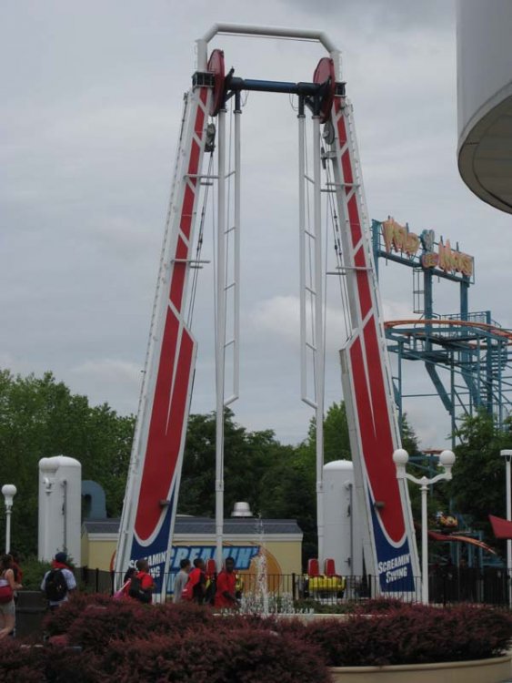 Now with 40% less superfluous, unnecessary adjectives... Photo TR: Dorney Park 6/4/2009 We're on day 6 of our trip and we're heading to Dorney Park. It's a charming place with some excellent rides. It was disappointing that they upcharge for their Screamin' Swing but that's my only major complaint. Here are the pictures... There it is, Dorney Park! Holy busload of buses Batman! There's gonna be a lot of kids running around today. We weren't worried though, we know the drill by now. The kids will all clear out by mid-afternoon and we'll have the park to ourselves. Like many Cedar Fair parks they allowed platinum pass holders early entry. Membership has it's privileges. Talon was first up. If you guessed that we liked it you would be correct. This is heavy machinery, serious stuff. The best thing about talon: It's not Batman the Ride. The second best thing is this sweet Immelman. It's preceded by this short Death Star trench run. Here's the upcharge Screamin' Swing. I guess they're just hoping we've never been to Cedar Point. They periodically ran it empty throughout the day. What a waste. We love a good mouse. This one was good. Not Arrow mouse good, but good nonetheless. Continuing down the midway towards Hydra now. It seduces you with its unique pre-lift inversion. It adds a lot to the ride in my opinion. It's short, slow, and funny lookin'. Just like me! There's Steel Force in the background. Time to work our way there. I like the atmosphere here at Dorney Park. Nice and relaxing. Goose, gosling, and trout all living together in peace. Dear Six Flags America, See those tall, green things along the path? Those are called trees. They provide shade for guests and are aesthetically pleasing. They also keep your park from looking like a lifeless slab of asphalt. They are relatively inexpensive and as a bonus they convert carbon dioxide into the oxygen that we breathe. Love ya, Dave Thunderhawk was a little rough, but still not bad considering its age. We finally made it to Steel Force. The mid course break run really ruins the last half of Mamba, but I didn't get that feeling on Steel Force. That combined with the tunnels and lakeside location ranks Steel Force a bit higher than Mamba in my book. Don't worry Worlds of Fun fanboys, they're both really good rides. Like the other two rides named Revolution I've reported on, I refuse to get on this. There's a nice assortment of flats here. Like this Sea Dragon... Monster... Meteor... And a duel S&S drop tower. Also a whip. They don't have many of these in the Midwest so we had to check it out. I've never seen a gun on a kiddy carousel before. They have 3 kids coasters here. This is the largest. These Voodoo pops will soon be replaced by the more PC Possessed pops. Is this a cookie or a brownie? I'm not sure of the shelf life, but these sugary confections usually seem like they've been sitting for a while Bonus points for a pinball machine. Nice going! We ended the day with a mini-marathon on Steel Force... And a few more rides on Talon for good measure. As the sun set on Dorney Park we realized our trip was sadly nearing its end. We're heading back to King's Island tomorrow for the credits we missed as our East coast trip concludes. Thanks for reading!