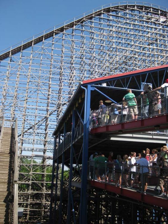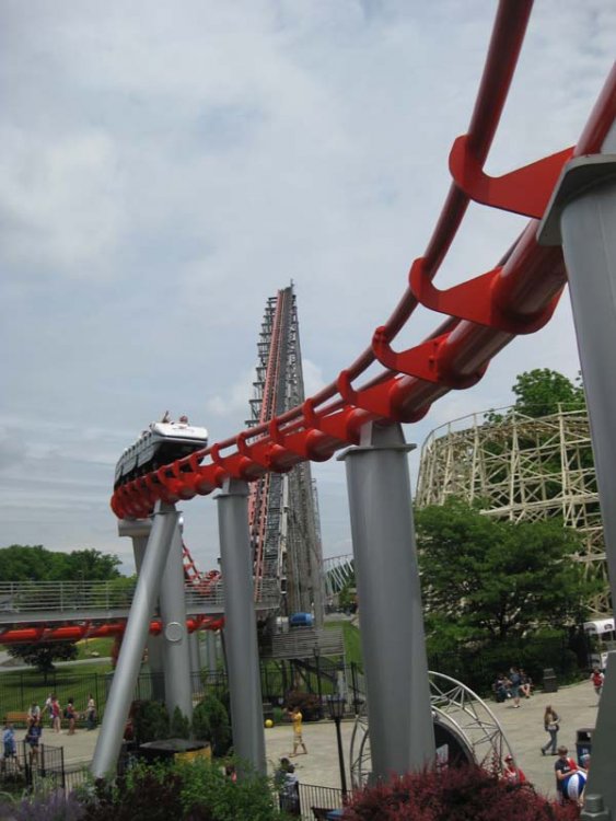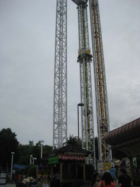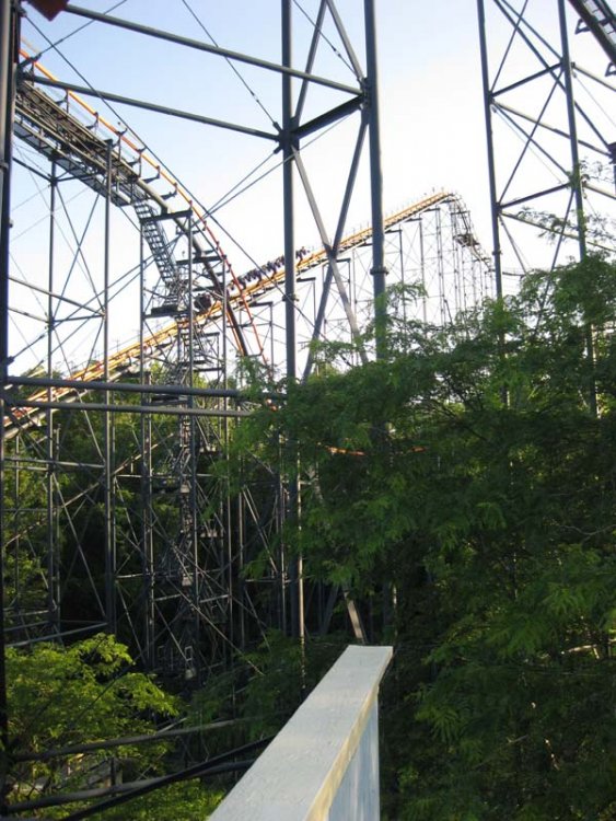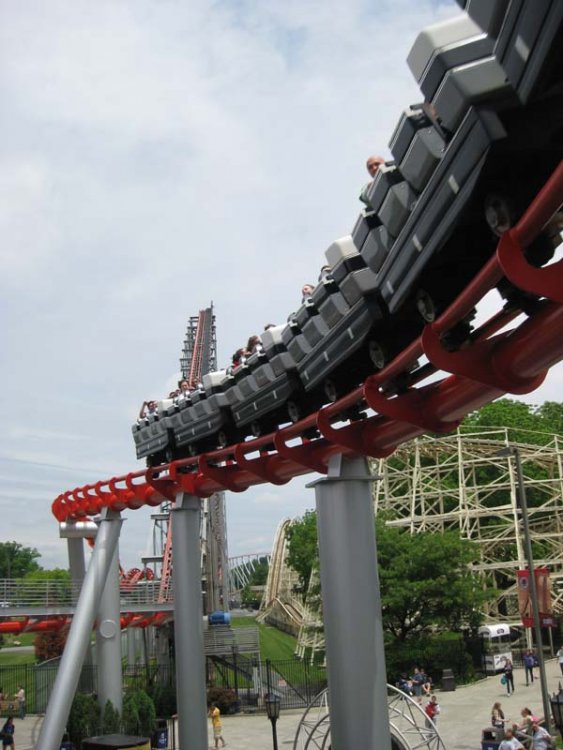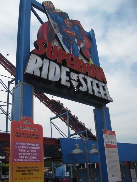 ^Thanks a lot! Photo TR: Six Flags Great Adventure 6/3/2009 The next park on our East coast trip is Six Flags Great Adventure and Wild Safari. Great rides and fantastic customer service added up to a very fun day at the park. I only regret not having more time to spend there. And now the pictures... We've made it to Six Flags Great Adventure! The Safari restrooms offer a better view of Kingda Ka than you'll find in the park. The safari opened earlier than the park, that means we get to experience the wildlife without sacrificing any rides on El Toro. These guys know the truth about Kingda Ka's "airtime" hill...It's just a forceless slope. Along with a world class wooden coaster, SFGadv also shares Wildebeest in common with Holiday World. But I'm sure you gnu that already. The safari is a must do attraction at Six Flags Great Adventure. Awww... Where else can you see bears doin' it? We named the one on the bottom Rex Grossman. The bears were really active on our visit. If not for El Toro and Bizarro they would have been the highlight of the day. It takes more than smoke and fire to fool this monkey, he still calls that ride Medusa. After a fun drive through the safari we made it to the park in time for the rope drop. Not knowing how crowded it would be, we made a beeline to Kingda Ka. We had gone the whole trip not expecting to ride Kingda Ka. Lightning had struck it just a few weeks before hand. Despite rumors that it would be down well into June, they fixed it just in time for our visit. This kitty lives in between Kingda Ka and El Toro. Here's what we came here for... We've had some great luck with queue times on our trip. Today was no exception. Everything was a walk-on all day with the exception of Kingda Ka (10-15 min.). I don't understand why there aren't more Intamin pre-fabs around. Are they much more expensive than GCI's? Whats the deal? After 4 or 5 rides on El Toro we had to catch our breath. Here's a photo you've never seen before. I hear this log flume is fun but we didn't ride. Kind of like Adventure Express at KI, I wasn't expecting much from this mine ride but it was actually pretty fun. Bizarro was next, we really like this one too. Here's a reminder that maintenance jobs are not only thankless but also can be quite dangerous. I consider myself a thrill seeker, but seriously if I was that guy I'd be pooping down my leg. Skull Mountain seems like a really good family coaster. We've been to 5 parks so far on this trip and this is the first pinball machine. Batman was next...It reminded me of Batman the Ride and Batman the Ride. They're all the same to me. We got held up for a while at Nitro while they changed trains. We only rode once and my initial reaction was underwhelmed. I wish we would have ridden it a few more times as I'm sure it's better than what I initially thought. Superman was next... Then on to Great American Scream Machine, the second of three now extinct coasters on our trip. A lot can happen in a year I guess. It brought back some painful memories of Shockwave at SFGam. We should have saved it for later in the day because I did get a pretty bad headache. My source at the park tells me they may use this building to contain Joker's Jinx. We couldn't spare the time to ride this top spin. I really would have liked to have ridden the parachutes but we skipped them too. The antique carousel had these predator/prey paintings across the top. Also, giant chickens! Now that the rest of the coasters were taken care of, it was back to El Toro. Between rides we rode Rolling Thunder. It made El Toro seem that much better. Six Flags America take note: Foliage and fans, this is how you do it. We skipped the tiger show for more rides on El Toro. I regret nothing. We spent the rest of the day going back and forth from Bizarro to El Toro. I thought the audio was a bit too loud in the station and on the lift (so loud it hurt my ears). The smoke and fire were nice I suppose but I'm not sure it was worth the money they spent. It's still one of my favorite steel coasters. Our day concluded with a very rare ride on El Toro in the rain. We had a fantastic time at SFGadv. Tomorrow it's on to Dorney Park! Thanks for reading.