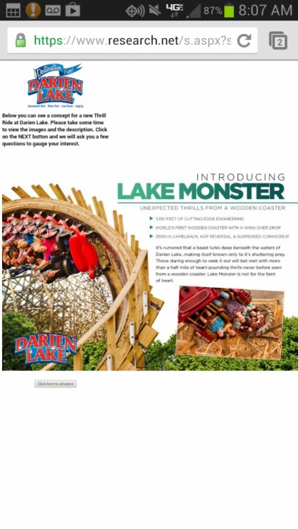 Just got sent this customer survey about a concept for next year's thrill ride. Neither the email or the survey asked for confidentiality so here is a screenshot. My response to the survey was pretty much begging them to build this. Here are the bullet points if they are hard to read. -3,190 FEET OF CUTTING EDGE ENGINEERING -WORLDS FIRST WOODEN COASTER WITH A WING OVER DROP -ZERO G CAMELBACK, HOP REVERSAL, SUSPENDED CORKSCREW. Fingers crossed, I really want them to go with this concept.