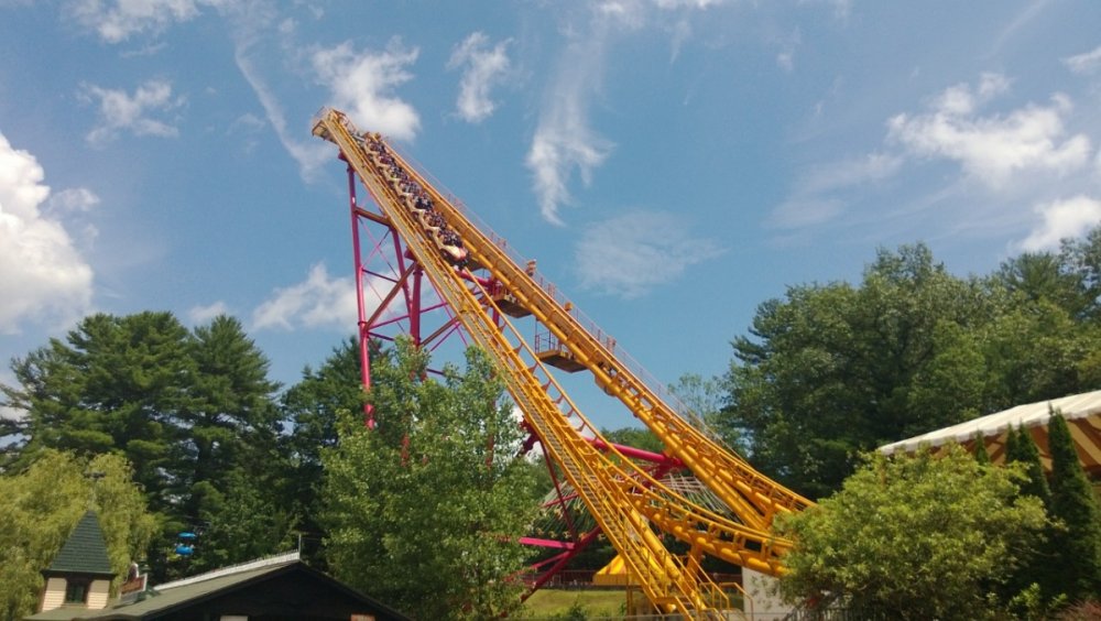 Went to the park today for the first time this year, I only went for a couple hours as there were no lines and really the only thing worth riding is the Comet. I still think that this park could really use a decent steel coaster, a small premier launcher perhaps. I stopped by the new flyers but didn't ride as this was the only thing that had a bit of a line, since I went to Knoebels last week i figured riding these flyers would be a bit of a let down. I got to ride Canyon Blaster backwards, while it really didn't make a terrible ride good it was definitely disorienting which is more than could be said for it before. The main purpose of going out was to test the camera on my new phone, so I will post a few pictures from my day. I had everything on auto, I think once i mess around with the settings a bit I should be able to get some better pictures out of it. Steamin Demon, Iconic ride for the park but a terrible ride new flyers looking good This is what I came for as you can see lines were not an issue, kudos to SF for running 2 trains when it wasnt necessary. New blizzard building themeing One of the better Boomerangs, it could benefit from the new trains though Pink Whale is back! Canyon Blaster....the first 2 cars are normal and the last three are turned around Still Boring! Bobsled was actually running today -
