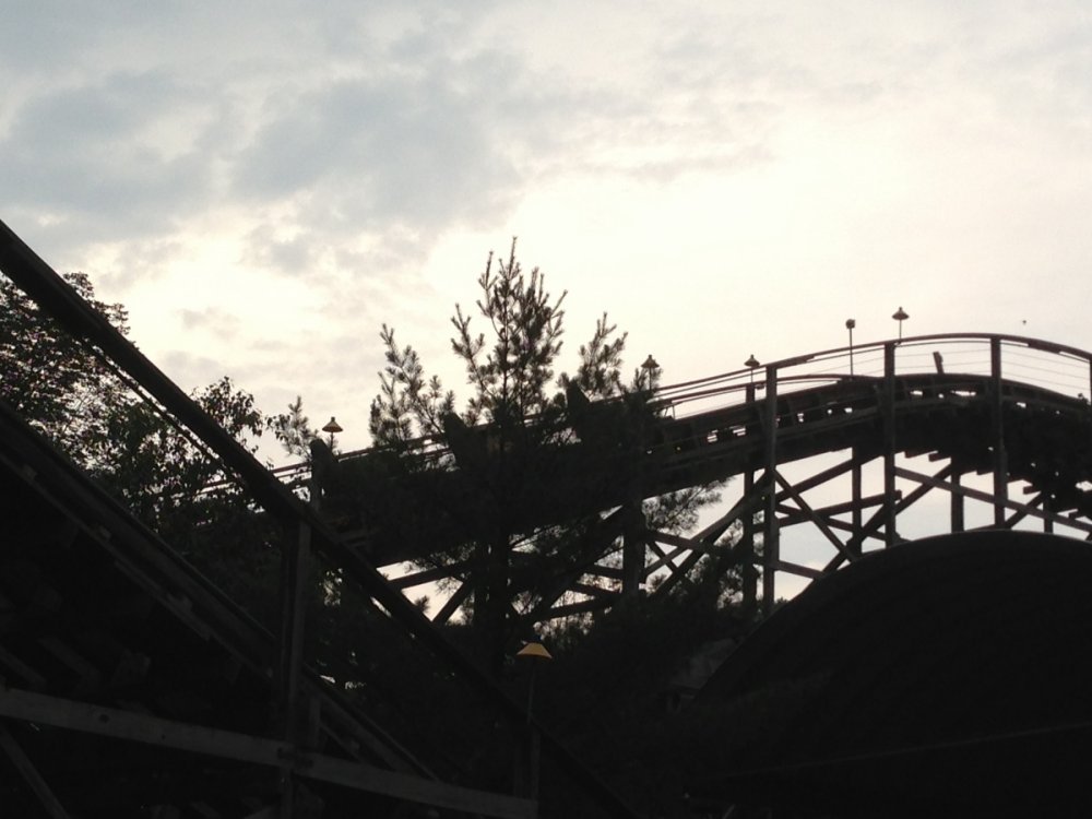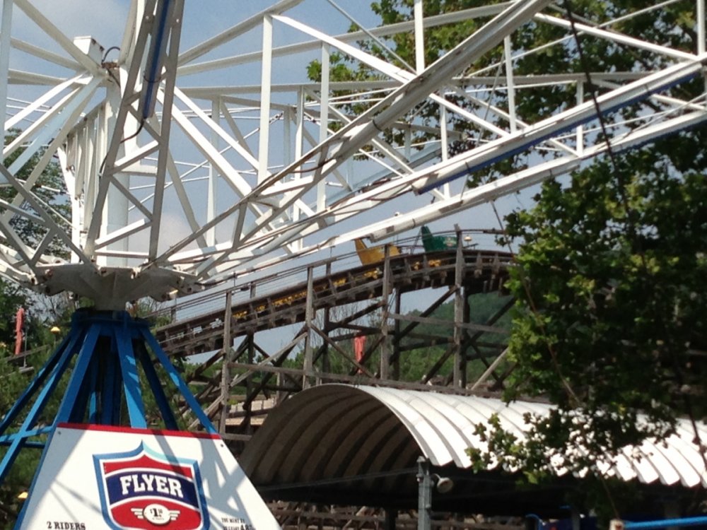 RHere some pictures I got of flying turns today. I wasn't in the area all day but I saw at least 5 test runs while I was in the area. I was disappointed about Phoenix as it is my favorite coaster and I drove about 5 hrs to ride it but the day was fantastic with only twister, I wish they substitutes Black Diamond as Phoenix was down because the price was still the same. Still an amazing day, Knoebels has become my favorite park. Getting countless rides on the carousel and about 6 rides on the skooters is a recipe for a great day. Figured I would include this bonus picture of the greatest non alcoholic drink ever, frozen apple cider -