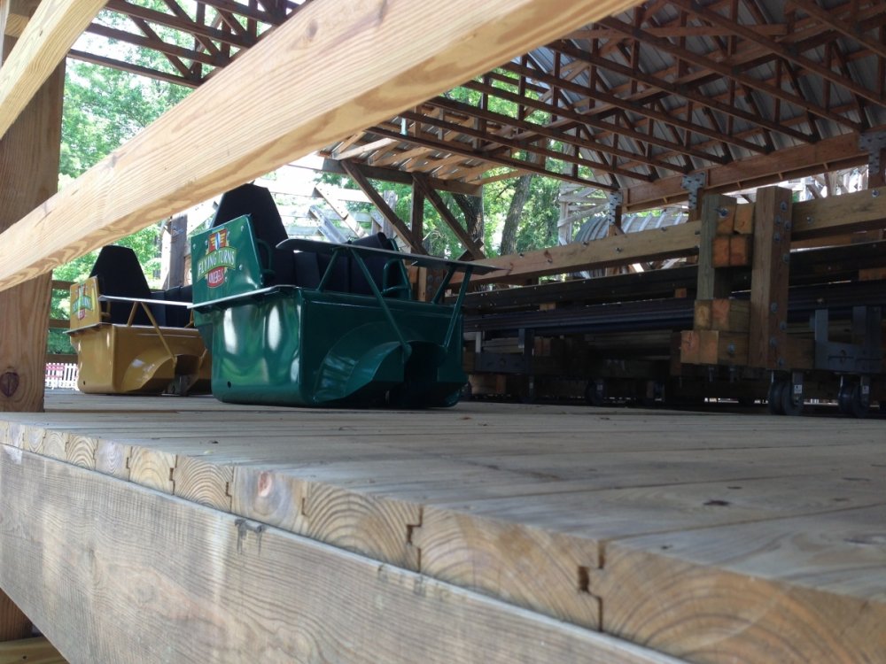 I was at knoebels today and flying turns was testing all day, first with two cars and 2 empty chassis. Then with 3 cars, then i saw they had all 4 cars on the train but i didn't see them test that. Also an employee i talked to said the rumor was either july 4th or in August sometime. Also Phoenix was down all day, i guess it broke down sunday and hasn't opened since. The same employee also said there were reports of fire from the motor but i suspect it was probably just smoke. Either way Phoenix was down and there was no activity near it so there is defiantly a semi serious issue, perhaps they are waiting on an replacement part. -