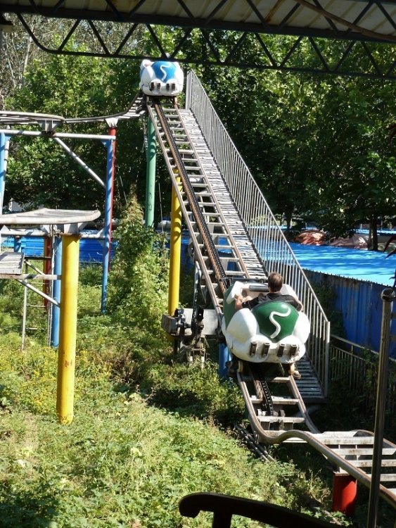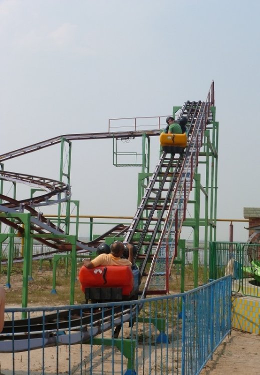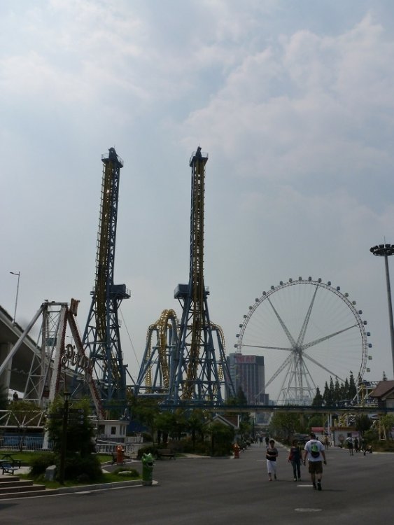 7. China 2012 OK, dear readers, better go get yourselves some coffee, tea, or perhaps a few beers. This may take a while. Ever since I was a kid, I've wanted to visit China--to walk on the Great Wall, tour the Forbidden (well, maybe not-so-forbidden) City, and see Hong Kong. Then, thanks to TPR, I discovered they also have a fair number of theme parks--yay! They also have a lot of nice city parks with lots of Sliding Dragons and knock-off Spinning Mouse Coasters. Er . . . yay? (Well, maybe not as loud a "yay.") I'll just jump into the photos and explain things as I go. There are many, but I promise not to regale you with every tiny kiddie credit in every city park we visited (only the ones that were, at least, sort of interesting for some reason). I don't recall all their names of these little parks, and I have no intention of looking them up. This was the longest TPR trip I've ever taken (a bit over 20 days), and like all the others, it was great. China is a fascinating palace, and while I wasn't too thrilled with Beijing, I enjoyed Hong Kong and Shanghai. If you want some interesting insights into China, I recommend River Town--a book written by an American who spent some time teaching English at a Chinese college. Welcome to Crab Island Resort! This is "Washing-Machine Agitator: The Ride." We will encounter it again. I have no idea who dreamed up this ride . . . . . . or if all installations come with their own apartments. Ah, my first Golden Horse knockoff SLC! This ride answers the musical question, "What could possibly be worse than a Vekoma SLC?" Hang in there Hanno! There are a lot of mouse coasters to go yet. At least they aren't MURDER HORNETS! Window of the World was a bizarro version of Epcot . . . . . . with some partial nudity . . . . . . and a knee-cracking mine train coaster. Camel sitting was also available. We made our way to the Great Wall . . . what the hell is that? A lot of people made their way to the Great Wall, but I enjoyed seeing it in person at last. We rode an alpine coaster down, too. This is part of the Forbidden City, which looks a lot like the rest of the Forbidden City. Next up was Beijing Shijingshan Amusement Park, which had the single scariest shuttle loop I've ever ridden. This ride tends to fall off the track and onto its upstop wheels in it vertical loop, and the same ride model had left riders stranded upside-down at another Chinese park! I ain't gettin' near that thing! You hoomans are on your own!" Looks like the mine train could stand a little mowing. I was denied this Golden Horse SLC because all the extra padding on the restraints wouldn't allow them to close over my rotund frame. I was OK with that. Sun Park's entrance had a "I was built for the Olympic Games" vibe to it. This character is in no way similar to a character in a popular Disney shooting dark ride. Sun Park also had some haunted walk throughs where the staff can hit you in the butt with a broom. This would not be the last time this happened to me in China. A big thunderstorm washed the pollution from the air in time for out visit to Happy Valley Beijing. I liked this park, but this non-working S&S coaster would be a recurring theme in China. Crystal Wing was a very good B&M Flying Coaster with some nice theming. But, for some reason, all Happy Valley parks must have a carny-level Disko. I love the dude's beard here. The show with the fake-beard guy led up to this deluge. That seemed to be the whole point of it. Help! I'm being assaulted! Welcome to Victory Kingdom--a park where almost nothing was open except this Golden Horse SLC, . . . . . . this crazy-looking flat ride, and a splash boat in a river of questionable water. Er, is it supposed to do that? (This isn't Victory Kingdom, as the Wild Mouse is actually running.) I just like this picture of Elissa. That's why it's here. Floraland was another Epcot-like park, only with hookers. This Tagada was a lot of fun--and something you'd never see in the U.S. This was either a haunt or a sanctuary for cross-eyed werewolves. What makes Happy Valley Chendu so happy? It has a kick-ass Mega Lite! I enjoyed this building of ice sculptures, too. "Agh! I'm wearing shorts, and I forgot snow was cold!" This isn't Wall-E--it's Wall-T. Totally different. Occasional heavy downpours were another recurring theme. I didn't get my photo with a panda on my lap, but I did hang out a bit with them. They're Chinese royalty. Happy Valley Wuhan's sign looks like something you'd see in Reno in the 1970s. The park was incomplete, as in some coasters, such as the S&S launched ride, weren't ready for prime time. But it did have Dauling Dragon. . . . . . and Hidden Anaconda, the first Maurer Sky Loop I'd ever ridden (it was fun). All Happy Valleys have mine trains, but Wuhan's is the only one themed to NASACR-racing big rigs. More to come.