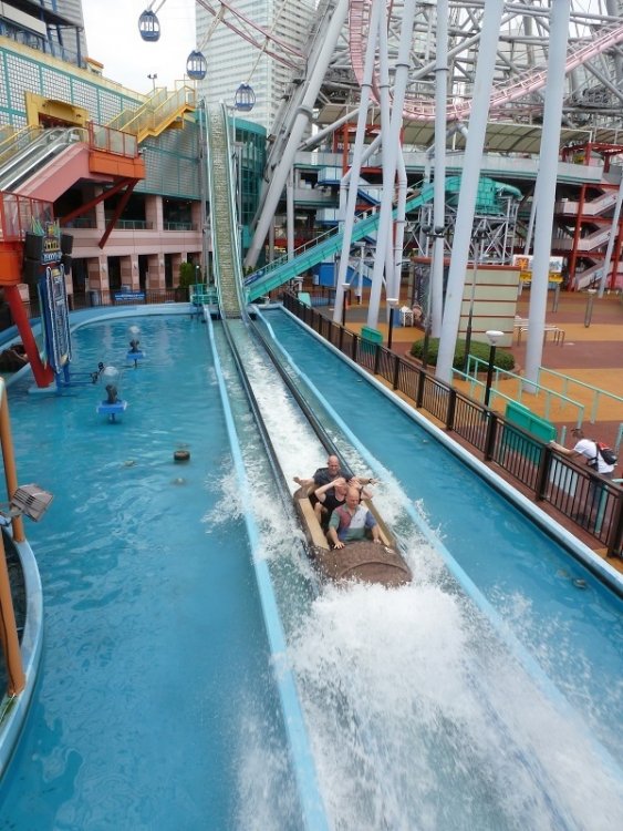 1. Japan 2013 And we're back. Back in Japan seven years ago. Jazz Impressions of Japan, by the Dave Brubeck Quartet, is playing in the background as I write this, as such memories as this are best contemplated in tranquility. Yes, one appreciates the quiet when enjoying fried gyoza and frozen Kirin. As in any return trip, you can expect something old and something new. We headed north to the visit Sapporo on Hokkaido, as well as the usual cities, such as Tokyo and Osaka. What did I take away from TPR's 2013 Japan Trip? 1. The foam in a frozen Kirin blows Butterbeer away. 2. One must climb many, many steps to achieve true enlightenment at the Ikari Temple (and the vending machines get more expensive the higher you go). 3. Although I'm not a huge fan of Japanese beer, the fresh brew out of the taps at the Sapporo Brewery is pretty dang good. 4. Tokyo DisneySea remains the best theme park in the world. Speaking of DisneySea . . . Oh my goodness! A bunch of us have arrived a day early. Where ever shall we go? I had to buy a one-day ticket at the TDS booth, and the CM asked me my age. I said "53," and she sold me a ticket for a surprisingly low price. I joined the group after I'd paid, and realized that she'd sold me a "senior ticket." I guess she thought I said "63"? Chandu doesn't think I look that old. Our first "official" stop was Tobu Zoo, the home of Kawasemi--yet another great Intamin Mega Lite. But what can top the sheer thrill of the Hello Kitty Unicorn ride? Off to Osaka, where we had a great backstage tour of Universal Japan's Spider-man. I took this photo of Backdraft's preshow with my little Panasonic Lumix. A CM gave me the old "crossed wrist" signal and said, "No photos." Meanwhile, Dan was standing next to me with his big professional-type camera, with a lens the size of a bazooka, snapping away. Not a word was said to him. I guess size does matter. Mickey truly leads the life of a swingin' bachelor. He even made the cover of "Brutus.' which I guess is the equivalent of Playboy for giant, sentient mice. Hirakata is a fun family park with the customary Jet Coaster and giant green monster who tries to strangle you. It's also the home of ELF (or "Episode of Little Fairies," believe it or not). It's a very good Intamin family wooden coaster. The Ikari Temple is a lio of steps and a lot of orange arches. I was glad to see it, but it was a very tiring climb up. Cosmoworld is the home of the appropriately named Vanish. Ooo, look--it's gone! Just in case you missed Vanish the first time. The infamous screaming log ride, where you're encouraged to howl "We Are on a Log Flume" at the top of your lungs. Once upon a time, you could rent a little electric boat and cruise around Sea Paradise's dolphin lagoon. Sigh! I miss Blue Fall. Remember, folks: The family that boozes it up together, stays together. Steel Dragon 2000 was showing off its shiny new B&M trains at Nagashima Spaland. And the old Schwarzkopf shuttle loop was still good. I think the puppet is her supervisor. Welcome to Sapporo. Enjoy yourself at Vegas Vegas! (This was one of the more "western" cities I've visited in Japan.) Hokkaido Greenland was a very nice "traditional" park, if you can get past this horde of giant insects. While there, be sure to "Go On" the jet coaster. (Yes, that's the name--Go On.) Dragon King is not an Arrow loop screw, but an amazing simulation. I don't remember much about this coaster, which might be for the best. "OK, I SCARE YOU GOOD!" The walk-through haunt was fun, . . . . . . but this was scarier! Hmm--I wonder where we could find some beer and food in Sapporo? Perhaps this establishment. So much beer you might drown in it! The Sapporo Bier Garten (aka, the "All You Can Eat and Drink in 90 Minutes Restaurant") was great. "Mine's bigger." More to come.