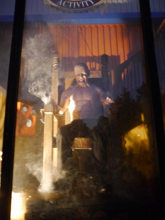 Prepare yourself for more EVIL at Kings Dominion! EVIL really draws a crowd. I think the Zombie High bus driver needs some supplemental training. The exit of Blood on the Bayou doesn’t do the rest of the maze justice. It needs a gator or some fire. Delirium looks creepy in all the chemical fog. Larry says steampunk isn’t scary--but it is kind of stern. I think the steampunk thing has run its course, too--but they do have some cool props. The No Vacancy: Condemned facade still looks a lot like previous years’ No Vacancy mazes. Hmm--I seem to have lost Larry in the Necropolis. Excuse me, but can you see Larry from way up there? “You lookin’ for a Larry? Let me check. Hey, dude in my mouth! Is your name Larry?” Ulp! I don't think that's Larry! Blood Drums has a lot of drums, but not so much blood. But it does have both digital . . . . . . and real fire. OK, I officially no longer care about the drums. “Quit looking at the Fire Woman and watch me!” We finished off the night at Cornstalkers. Thanks to Fright Lane . . . . . . we avoided waiting in this. The giant spider told us to get out. The Evil Boogie Boogie Eyes are trying to hypnotize me! Better run! Thanks for reading. -