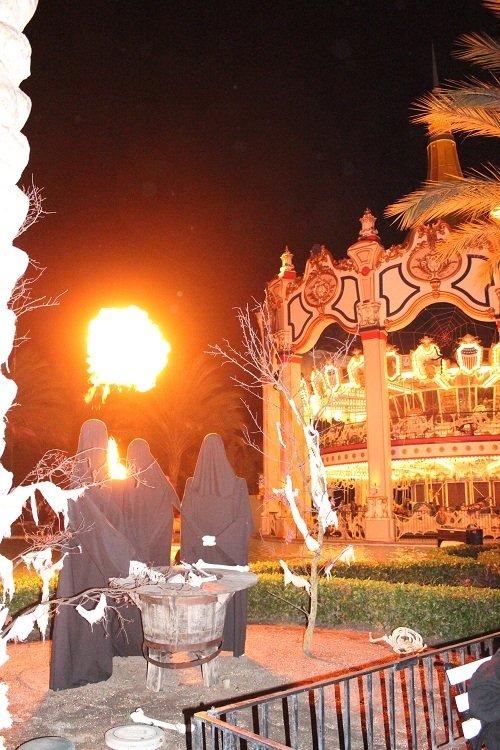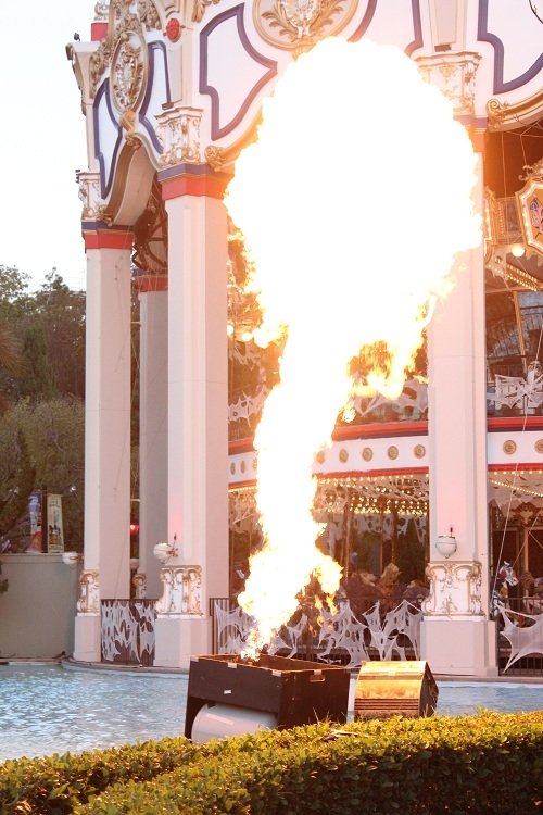 Many thanks to CGA for inviting me to the Media/VIP event for Halloween Haunt's opening night. The food was great, and Madame Marie's interaction with us was hilarious! In addition to the dinner, being VIPs we were given a one-time use front of the line pass (which we later used for Dia de los Muertos), two pairs of 3D glasses and Gold Striker ERT. After my brother (rjvader) and I checked in and entered the park, we ran into CGA's Roger and Ryan, who told us that Gold Striker was open. It was truly a walk on, no line whatsoever, and I was told to sit wherever I wanted. I chose row 12, which gives great airtime going down the first drop. With the exception of a few people riding in the front, the entire train was empty, a pretty surreal experience. Using our VIP passes, the security guard let us into the area that was blocked off to the public. We headed over to Madame Marie's Voodoo Chophouse, where we met up with Angry_Gumball and his neighbor. Once we watched the opening ceremony, we dashed to the back of the park, which is always a great idea. Toy Factory, Zombie High and Cornstalkers all had less than two minute waits. I say this every year, but it's true: This was the busiest opening night I've been to. As with every opening night, some missteps are to be expected. I was disappointed in the music this year, which is always a high point. With the exception of Toy Factory, Carnevil and Werewolf Canyon, none of the mazes have their songs playing in the queue. This was most noticable with Madame Marie's Massacre Manor. That great, creepy song only played inside the maze, and the line only had the generic heavy metal music that played throughout the park. Underworld Alley's song was too quiet, and Dead Man's Cove's song is gone completely. Some thoughts on the mazes, ranked from best to worst: Dia de los Muertos (x2): This maze stood out above the rest, and after waiting 45 minutes the first time (which was worth it), it was a no-brainer to use my front of the line pass the second time. The level of detail is outstanding. Also, I think this is the first maze to have an elevated section, where you walk up a ramp and look down to the next part. The Club Blood bar scene makes a comeback, complete with a dancer and a new coat of paint. For me, the highlight of the maze was the jungle room. While I enjoyed Club Blood's remake last year, Dia de los Muertos is an excellent replacement. The 3D was a little blurry, but it didn't detract from the great experience I had with this maze. Also, I'm looking forward to streaming the song if Thomas Tissot uploads it. Carnevil (x1): The oldest maze, but still one of the best. Great song, detailed rooms and lots of enthusiasm from the actors, even though it seemed a little understaffed. Madame Marie's Massacre Manor (x1): A year later and I still can't get over how much detail this maze has. Solid maze all around. Cornstalkers (x2): I enjoyed Cornstalkers' new look. The three different paths at the beginning add a new twist that isn't seen on any other maze, even if they aren't staffed. The maze is a little shorter, but I think it's for the better. Werewolf Canyon (x1): Well, look who has moved up in the ranks! While this maze has nothing new, the actors really made the maze with their enthusiasm. Who would've thought Werewolf Canyon would be the most staffed maze in the park? Zombie High (x2): The second of the new mazes this year, and unfortunately it was just OK. Visiting the park last Sunday, I saw many props stacked outside the newly-built shed, and I thought there was no way they would finish the maze in time for opening night. Turns out I was right. The facade they put on the shed looks painfully unfinished, and I noticed one wall of the maze was essentially bare plywood with a few drops of "blood" on it. At times, this maze felt like Slaughterhouse with the lights turned on. Overall, though, Zombie High had a good amount of detail, and I enjoyed the dance floor and the monster on springs. Chairs from the Pictorium were used for the theater portion of the maze. Slaughterhouse (x1): Haunt's newly revamped maze in 2011 now looks outdated and simple, due to the immensely detailed Madame Marie's and Dia de los Muertos. It wasn't bad (the "song" fits perfect and adds so much more atmosphere to the maze). At least it kept its "squishy" part, unlike the next and last maze... Toy Factory (x1): First maze of the night, and everything was going great. The actors were in character, the new rooms gave the maze a fresh feel, the song was catchy and annoying as always ... and then we got to the end. One of the best parts of any maze, the inflatable walls, has been removed, instead replaced with stacks of boxes. My guess is that it was removed to help capacity. Besides this, the maze was good, but the feeling of disappointment I felt leaving Toy Factory makes it end up at the bottom of this list. New in 2013, Fun House Express in the Action Theater is a great addition to Haunt. It's being shown in the left side of the theater, which means Happy Feet is done for the season. For the scare zones, Gauntlet was by far the best. I will let the pictures tell the rest of the story: We're here at CGA, this time as Haunt VIPs! Got our front of the line and Chophouse dinner passes, and we're ready to go. Which is your favorite? For me, it was Dia de los Muertos. But first, we couldn't resist Gold Striker ERT, bringing my lap total to 38. The fried chicken restaurant is transformed into Madame Marie's Voodoo Chophouse. Madame Marie welcomed us to the reception, and promised to take our souls later. Angry_Gumball taking a picture of me taking a picture of him. Food! More upscale than Fright Feast (formerly Boofet) which was taking place at the same time. Madame Marie's "pets" stayed with us. She's got her eyes on you, Angry_Gumball. Flamethrowers! This looked amazing at night. The monsters have been unleashed. It's going to be a busy night. Overlord's Resurrection was top notc