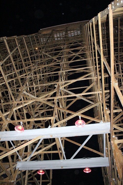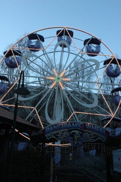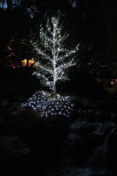 I went to Gilroy Gardens' annual Holiday Lights for the first time on Saturday. I was able to get in for free thanks to my 2013 California's Great America Gold Pass (really got a lot of mileage out of it this year). The light displays are pretty spectacular. The park opens at 3 p.m., but at that time, it's a little too bright to be able to see any of the displays. Once darkness starts to fall around 5 p.m. that's when the park really starts to shine (literally). Night rides on Quicksilver Express and Timber Twister were some of the highlights of the night, even if it was freezing cold! Some of the trees around Quicksilver Express are lit up, but for the most part, you're in complete darkness. Going down the second drop in complete darkness is pretty amazing. The Waterfall Illumination show at Bonfante Falls was fun to watch. I took a video of it: [youtu_be] [/youtu_be] On to the pictures: The park's entrance gives you a taste of what you're going to be seeing a lot: Lights! Attendance was a bit lackluster, but at Gilroy Gardens, that's the norm. Wish I took this picture when it was darker, but Panoramic Wheel had its own mini light show. At first, I thought the amount of tables was excessive for the holiday feast, but it was quite full later on in the night. Many ride queues had their own decorations. This was Timber Twister's queue. People gather for Waterfall Illumination, a really cool display of lights that are synchronized to music. Most of Bonfante Falls is closed off, and for good reason: You don't want to be walking underneath the waterfalls in this weather. But of course, off-limits areas do not apply to irresponsible parents. The show is about to begin! South County Backroads (aka "the car ride") is themed to the 12 Days of Christmas. The lights are hardly noticeable during daylight. Once night hit, this ride had a long line (for Gilroy Gardens, that is). We wanted to punish ourselves with a freezing-cold ride on Mushroom Swing, but it was down when we got in line. I'll end this with a construction update for Gilroy Gardens' new water area. Land clearing is still going on. They removed a circus tree on the property since my last visit. This is what the area looked like in mid-November. Workers dug around the circus tree and built a box around it for transportation. A hole is all that is left now. -
