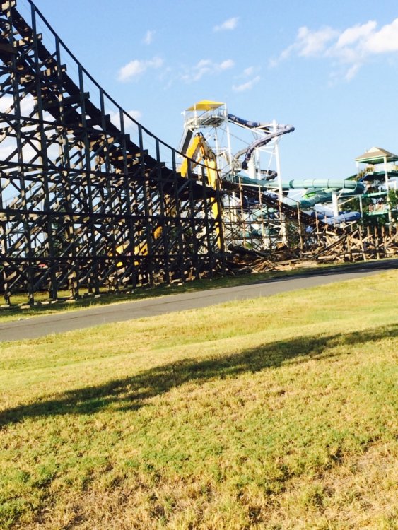 On my way to work this morning I saw the claw sitting in the parking lot so I assumed deconstruction would start today. WELP it def did all the remaining are the station, lift hill to the bottom of the first drop and turnarounds everything in the middle is scrapped -