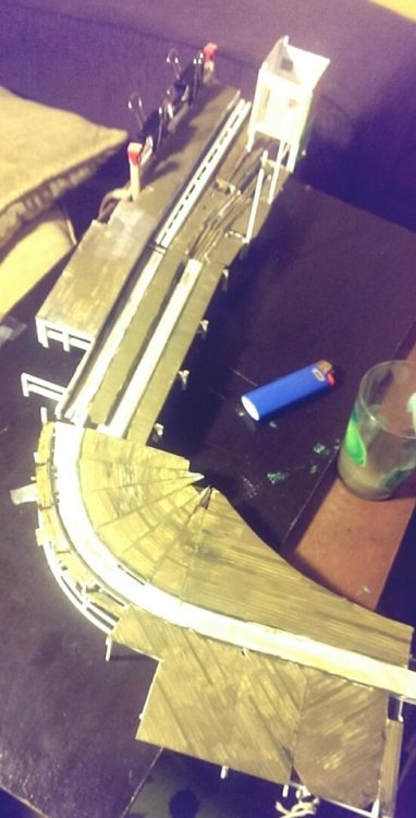 Progress on one of the last sections I have to build. Starting to lay some pre-track. I started building this section 9/16. I have found that the reason why I've submersed myself so thoroughly in this project. It's to keep up on my patience, which is dealing and trying to get rid of my abusive partner without losing my sanity. That's why I can be so particular with my pretrack (that you can see creeping upwards). -