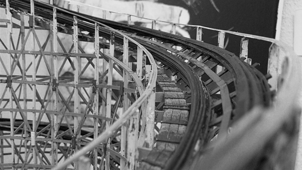 1955: Tearing down the Giant Dipper was an option the Mission Beach Coaster Company was considering over trying to rebuild it. Once they decided to declare bankruptcy, new park lease-holder Jack Ray asked to take over the Coaster Company’s lease when in expired the next year. While the future of the Dipper remained uncertain, Ray insisted that he needed a roller coaster in order for the park to have any chance of succeeding. He stated that he would have to build his own. Immediately, Ray installed a small wooden coaster called the "Big Dipper” designed by Herbert Schmeck of the design firm Philadelphia Toboggan Company. This 35’ tall kiddie ride was originally installed at Hoppyland Amusement Park in Venice in 1951. After the park closed in 1954, the Dipper was moved to Belmont Park where it stood for a few seasons starting in 1955. It was then moved to the Pomona County Fair Grounds near Los Angeles where it served until it was permanently destroyed in 1975. While located at the fair, it was used in a very dramatic shoot-out scene in 1973’s movie “The Clones.” The Midway to Ray's New Belmont Park. He was responsible for the construction of the Enchantedland section of the park centered. It remained there until 1976. Another glimpse of the elusive Big Dipper. Double Ferris Wheels take attention away from a partial glimps of the Big Dipper. This Schmeck designed coaster took the place of the Giant Dipper while it was closed for two seasons.