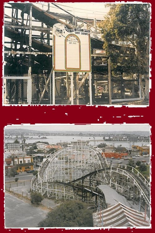 Thanks everyone for all the wonderful responses. I'm overwhelmed, really. So much so, I was saving this gem until towards the end - but it's not like we all don't know how it turned out. By the summer of 1990, I was employed by the (then) San Diego Seaside company. The Save the Coaster Committee was successful in its mission to keep the coaster from the wrecking ball. On 9/1/89, Seaside took over the serious restoration of the Dipper. You can imagine my feeling of anticipation as I was filling 5 two-hour tapes in the midst of fresh cut wood, drills, paint...and lots of sweat. LOTS. I managed to overlook all those construction guys - it was the coaster I was hot for. Enjoy~ 1) Music Video Giant Dipper Restoration Filmed summer of 1990 Music: Working On It Artist: Chris Rea Writer(s): Christopher Anton Rea, Kevin Stephen Welch Copyright: Magnet Music Ltd., Kevin Welch Music, Warner-tamerlane Publishing Corp. Edited Spring of 1992 using the post primitive methods you can't imagine. 4:21 length 2) The day the trains first left the station. I'll save the story of what happened between 6:07 and 7:35 for the end. That's the fun part. Crowds were beginning to collect when word got out that we were going to try and run the thing. Former president of the Santa Cruz Beach Boardwalk turned General Manager of the Seaside Company, Ed Hutton, thought he should make something clear to spectators of what they might see. 3) The new Giant Dipper loses her virginity for the "'first" time. In the 90 minutes after the train was sent out, about 1000 more spectaotors all showed up from the immediate area. You can hear them cheering it on. Note the people in the station house running from side to side.