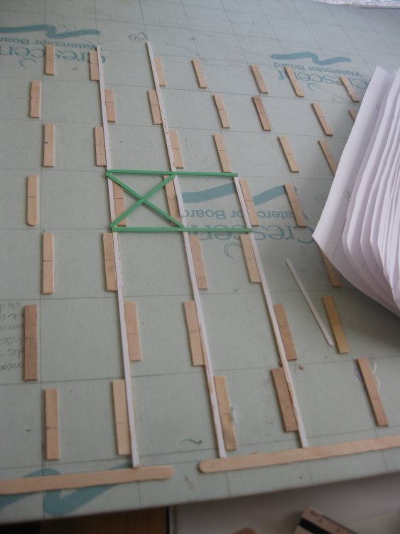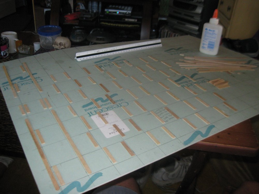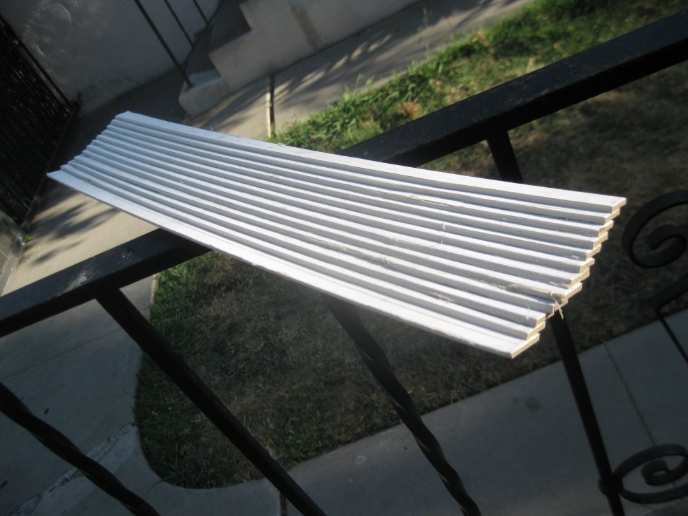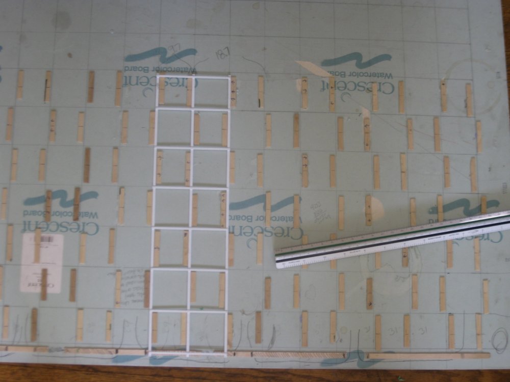 Here is my main upright painting template. Very simple - this will allow me to paint two sides of the main uprights (the sides that are unencumbered by connectors) prior to assembly. -