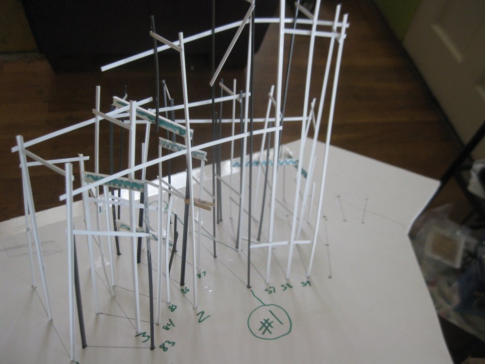 Mapping out a difficult section - this is where 4 layers of tracks converge in to one corner. Next step is to build a rough mock-up of this section to study clearances and what posts need to be re routed so as not to go right through the middle of track. -