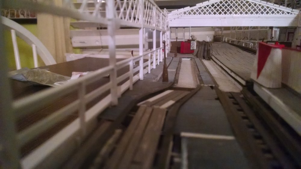 Not too much to update. Had about a week to redo something I did wrong, but check out a rendering of a table and case I'd like to add. The right pair of track - The mysterious 'split' where trains a and b switch sides The mysterious 'split' where trains a and b switch sides - using photo above to get all the details. A little more fudging to do, but otherwise, fairly convincing Not EVEN Colossus.... December or January? The case I've designed for the finished model. I'm hoping to find someone who will build it for $500 What it's supposed to look like. Please excuse my notes. -