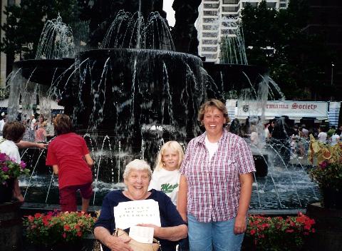 Today my mom, Samantha and I headed downtown for Oktoberfest Zinzinnati (Cincinnati). Our city has a huge German heritage, and our Oktoberfest is the largest in the US, and second largest in the world next to Munich. Basically, it's 6-8 block long street fair full of mainly 3 things....beer, food and German music. When we got parked, I unloaded the 100 pound wheelchair of death for my mom (who, as I stated above, was celebrating her 80th!!! birthday today!) and while she was getting situated, Samantha and I tied a sign on the back that said "Today's My 80th Birthday!" It only took until we got into the elevator of the parking garage until someone said something.... My mom was so funny, she kept looking at this woman like "Do I know you?" and then she realized we'd done something. She was a pretty good sport about it, even though she doesn't usually like attention drawn to her. All day long people were coming up to her and wishing her a happy birthday. It was awesome. We headed about 3/4 way down through the festival to a spot where a German band, "The Polka Dots" were playing. They had some rides nearby and Sam, of course, wanted to ride, but the tickets were .75 each and every ride took 3-4 tickets. I told her she could choose one ride, so she chose the Round-Up which has become her favorite this summer. After that, we headed for food... Sam had chicken tenders and fries, my mom had a footlong hotdog and a potato pancake and I had stewed chicken and noodles. When we finished up we headed to the main stage for the day's big event, The World's Largest Chicken Dance (and Hokey Pokey). This was big deal for me, because this year's festival Grand Marshalls were local tv legends Al and Wanda Lewis, aka Uncle Al and Captain Windy. Now, if you grew up anywhere around the Greater Cincinnati area in the 50's, 60's or 70's you would know who this is. This couple hosted the longest running children's show in television history. Once we got ourselves a place to sit, I took Sam and we went and got a frozen lemonade and I got an ear of roasted sweetcorn. We got back to our seats near the stage, I glanced over and saw Captain Windy. I was so excited. She was standing off to the side, so I grabbed Sammi and my camera and we headed over to meet her. I got Sammi's picture with her, which was a huge deal for me. About 15 minutes later they came on stage and sang songs from their old show (I could immediately remember the words!) and then did their signature "Hokey Pokey" followed by the "Chicken Dance". When that was over, we headed back up through the festival and stopped for our favorite treat, the giant cream puffs from Schmidt's Sausage Haus of Columbus, Ohio. I am ashamed to say I ate 2. The crowd was getting pretty thick at this point so we made the rounds of a few other booths because my mom wanted some cinnamon roasted nuts and a soft pretzel to take home, and then headed back towards the Fountain Square garage. We stopped in front of the fountain to take a picture of my mom and Sammi, and a lady offered to take it for me so that I could be in the picture as well. It was a delicious and fun day.... and I thought of Soren and Wally both as I walked past all the beer drinking guys in lederhosen! Shari "God, those cream puffs are good" Shoufler Here we are with the Birthday Girl...80 years young today! The most delicious cream puffs ever!! "I'm angry German girl...give me some food" Uncle Al and Captain Windy lead the Chicken Dance! Sammi with the legendary Wanda Lewis, aka Captain Windy. Here's my mom and Sammi....she's ready for the Chicken Dance! Here's the bus PhishyBrewer would like to drive, I bet.
