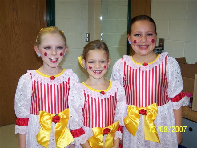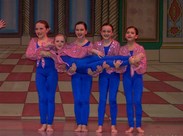 7. For those of you who wondered what your money went towards (those of you, that is, who paid the little blond girl to ride Little Bill with you at KI), this is proof that you were really funding the fine arts! Samantha performed for the first time last Sunday as part of the Jr. Company competition team at her dance studio's production of "The Nutcracker". It was exhausting (for me, not her... all that hair and makeup!) but well worth it... she did an awesome job! Shari and Sammi Brought to life by Herr Drosselmeyer. In Act 1 she started out as a doll... Thanks for viewing and Merry Christmas! All those months of her cartwheeling in front of the TV paid off! In Act 2 she was a roly, poly Ponchinelle (no one knows what the *$ that is...) As you can see, this was an Elissa friendly production...