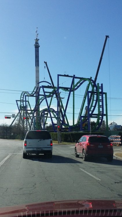 My how times change. I too wish we still had Texas Chute Out, and Wildcatter. . . Both were fun rides. Flashback !! I SO miss that ride. I need to go down to Fiesta Texas to get my fix. I also miss the TX Cliffhanger (Wildcatter). You'd think they could've used more of the shopping center that's in that space, for future use, but it seems they're keeping the restaurant end of it. It's still up. And I passed by Six Flags earlier, and NO The Joker isn't topped off yet.