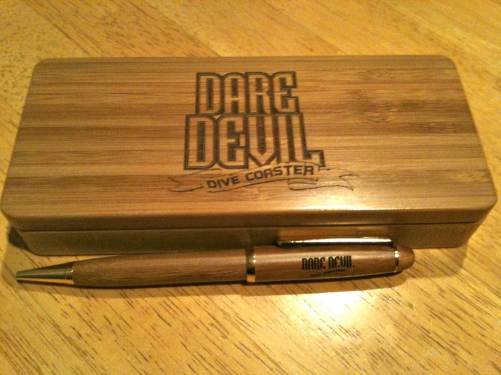I was wondering if a SFOG regular can tell me anything about this Dare Devil Dive pen? It's made of wood and came in a nice wood box. Is this something that can be purchased in the park or did it have a more limited distribution than that? It was given to me as a gift and will make a nice addition to my memorabilia collection, but I'd just like to know a little bit more about it.
