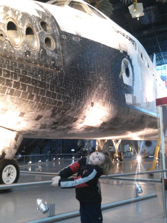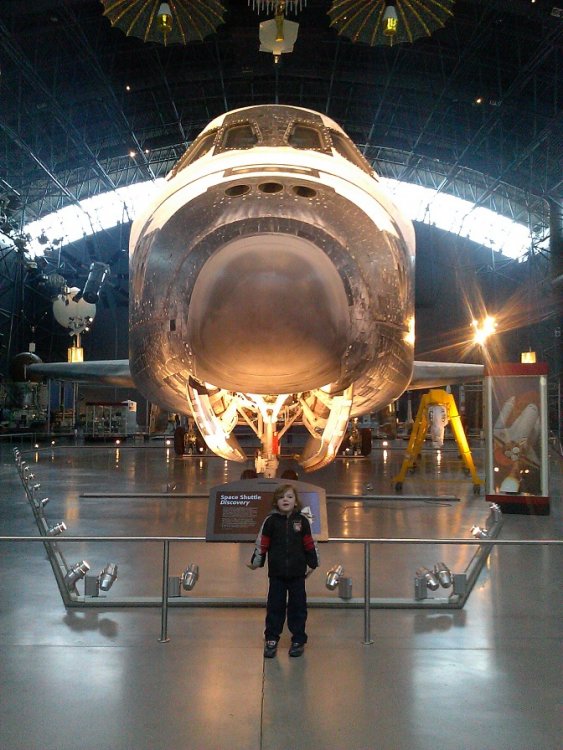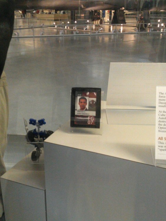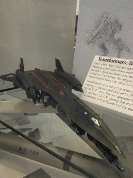 5. I've been inactive for what seems like forever, so I thought I'd make my return to TPR with a Random Photo TR of the Smithsonian National Air & Space Museum's Steven F. Udvar-Hazy Center in Chantilly VA. This museum is for all the exhibits and artifacts "too big for the main museum on the National Mall," as the Smithsonian describes it. For you movie buffs, this is the filming location of the scenes in "Transformers: Revenge of the Fallen" in which geriatric Decepticon-turned-Autobot JetFire first awakens. The story continues in the captions! The SR-71 Blackbird spy plane, the first aircraft seen (other than the stunt plane hanging above the lobby) as visitors enter the museum. "Earth? Terrible name for a planet. Might as well call it dirt. Planet Dirt!" This Blackbird was the plane that transformed into JetFire in Transformers: Revenge of the Fallen. When she was retired and donated to the Smithsonian in the '80s, this plane flew from Los Angeles to the Washington DC area, a distance of about 2,500 miles, in 1 hour, 4 minutes. It took me about that long to drive the 43 miles from home to this museum. How's that for perspective? Floor level view. View from the catwalk above and behind the tail and engines. For you aficionados of REALLY obscure movie trivia, this is the plane Sam, Mikaela, Simmons, and Leo hid under when JetFire first woke up and transformed into robot mode. Jetfire's film prop landing gear door. Model mockup of JetFire in Decepticon livery. Decepticon insignia. These are the hangar doors that JetFire burst through after unsuccessfully commanding them to open. The ACTUAL view outside the hangar doors. Not a whole lot of desert out there. A Gen1 Optimus Prime. The Allspark Shard film prop. Agent Simmons' Sector 7 ID prop from the first film. Look close...that's John Turturro's picture. Simmons' "do what I want and get away with it" badge. Simmons' aviator costume from the JetFire awakening scene of Revenge of the Fallen. The toy version of Autobot Wheelie. Connor learns a little about flying. This 1973 Cessna 150 is set up to allow visitors to learn and try out the various controls. Yup. Typical early '70s. It even has an ashtray in the door. This is the back seat. Two passengers and their luggage are supposed to fit here. This is the advantage of flying commercial...not MUCH more room, but more room nonetheless. Entering the James S. McDonnell Space Hangar, home of the Space Shuttle Discovery. Her final flight was launched Feb. 24, 2011, exactly 2 years 2 days before this photo was taken. She spent a cumulative total of exactly one year (365 days) in space, and touched down for the final time on March 9, 2011. Discovery was the 3rd orbiter to fly to become operational, following Columbia and Challenger (4th if one includes the first orbiter Enterprise, which never flew in space), and the first to be retired. Connor gives us perspective on the sheer size of Discovery. Discovery's engines, or in typical TPR parlance, her ass. The circular structure in the foreground is an instrument unit from the Saturn V program. A model of the Mother Ship from Close Encounters of the Third Kind. I'm not sure if it's a movie prop or not. Best. Mailbox. Ever. A phone booth shaped like a Mercury capsule. This originally lived and operated at Kennedy Space Center. Enola Gay, the B-29 Superfortress that essentially ended WWII by dropping the first atomic bomb ever used against an enemy, over Hiroshima Japan. As a combat veteran, it was intensely humbling for me to see this aircraft up close and personal. The nose cone of an Air France Concorde, the fastest passenger aircraft ever built. It's surprising just how narrow this is. A Boeing 707, Boeing's first jet airliner and first foray into commercial aviation. The Excalibur III, a P-51 Mustang modified for various record-breaking speed flights. The rotorcraft display at one end of the hangar. This display had a wide range of bizarre looking helicopters. The x-35 Joint Strike Fighter, the development platform which would eventually become the now-grounded F-35 Lightning II. Prior to Sept. 22, 2006, if you were flying an enemy aircraft, this is NOT what you wanted to see in your rear view mirror. The F-14 Tomcat, one of the most successful aircraft in US Military history. Nowadays the only F-14s in service belong to Iran, having been sold to them in 1976 when we had friendly diplomatic relations with the government of Iran. Another view of the Tomcat. For you Riptide fans out there, the UH-34D, the military version of Nick Ryder's "Screaming Mimi." The green SUV facing out, dead center, is my truck Serenity, as seen from the 160 foot tall observation deck in the Donald D. Engen tower. Just north of the museum is Dulles International Airport. Barely visible (thanks rainy day) beyond the trees are the two main north-south runways. The felt hat worn by downed CIA U2 pilot Francis Gary Powers on the day of his release from a Soviet prison, Feb. 10, 1962. This lunchbox was in the gift shop. DO WANT!!! Like any theme park, this nearly empty parking lot is a beautiful sight here too. There was a roughly equal number of cars on the other side of the lot, just off-frame to the right. On the way home I noticed the city planners in Dulles VA are Star Trek fans. Connor learns about CGI filmmaking. The video was the JetFire awakening scene, filmed here, with the animatic version of JetFire rendered into the video. In some shots, you can see the real SR-71 still in the shot behind JetFire, and others you can see it fade out. This is at the end because I somehow managed to skip it in the initial upload.