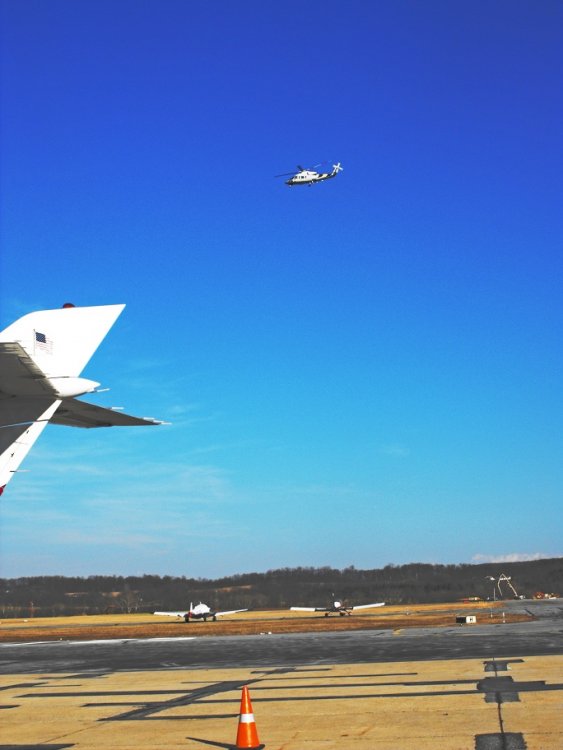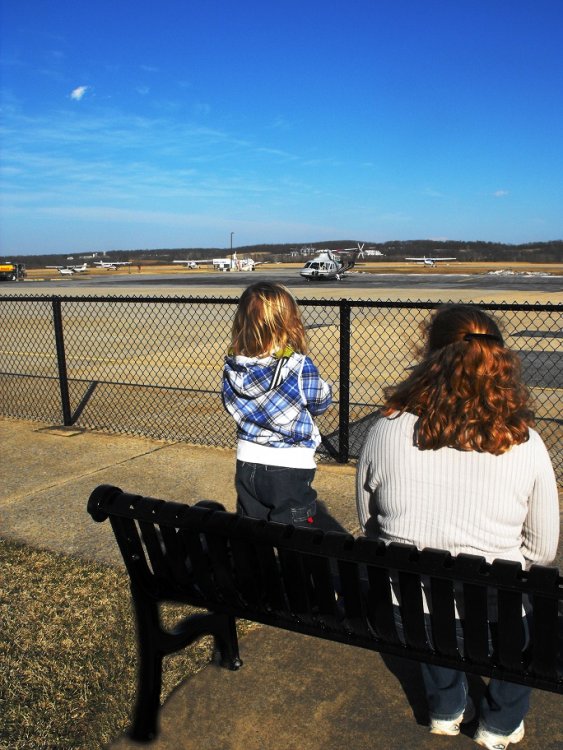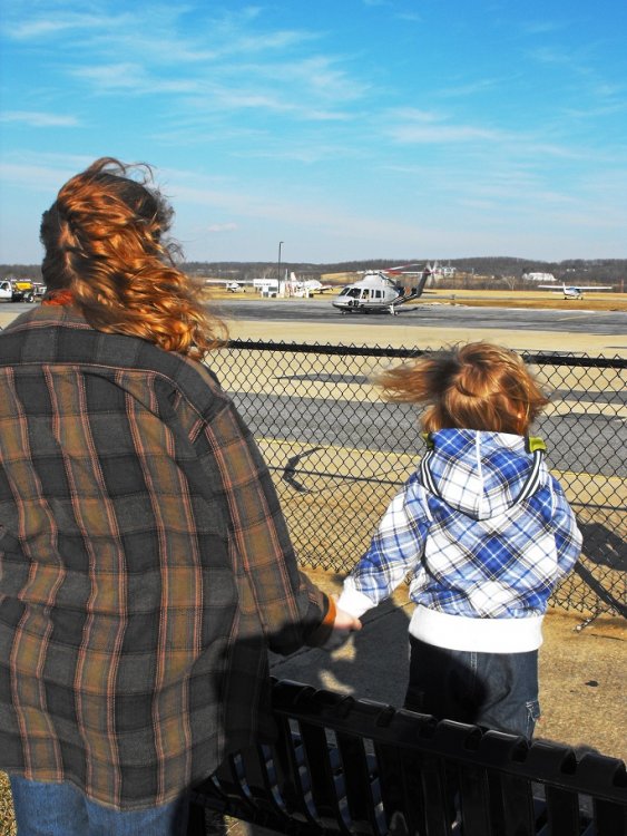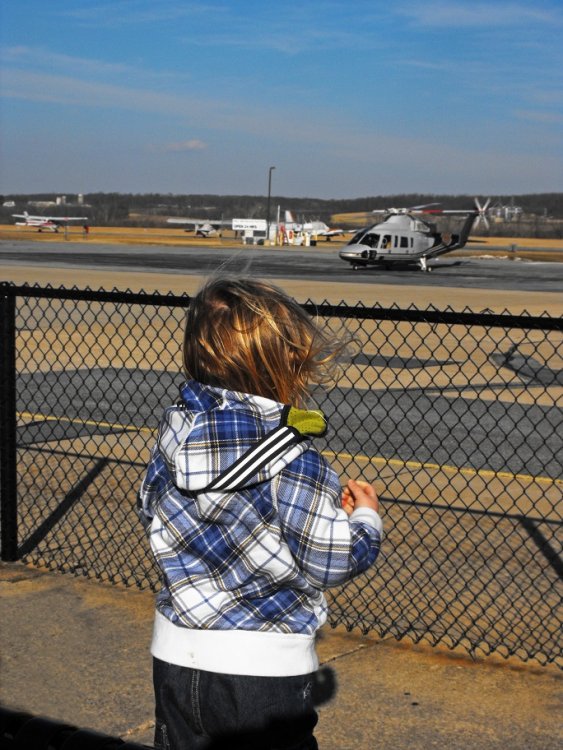 9. Yesterday my family and I spent the afternoon exploring some areas of our city, Frederick Maryland, that we hadn't really seen before (aside from occasionally driving by or through). One of the stops we made was the Frederick Municipal Airport, a small general aviation airport right outside of downtown Frederick. This helicopter came in for a quick refuel and inspection before heading back out. Taxiing right in front of us. A second helo approaches... ...and taxis to its parking spot. A view of the field. Connor had a great time looking at airplanes and helicopters. A small jet taxiing by us. Valet service? Due to the proximity of the field to the terminal, even helicopters had to taxi out to the runway. Up... ...up... ...and away! My attempt at an artsy look at wheel chocks. Hey, even I get my gas at Shell. I wonder if the pilot got to use his gas points? Even little tiny Frederick Municipal Airport has an Enterprise Rent-A-Car desk. Wheel chocks. Ready for departure. The airport restaurant in the terminal. I'm willing to bet it's quite a bit better than the average airport food court. The terminal.