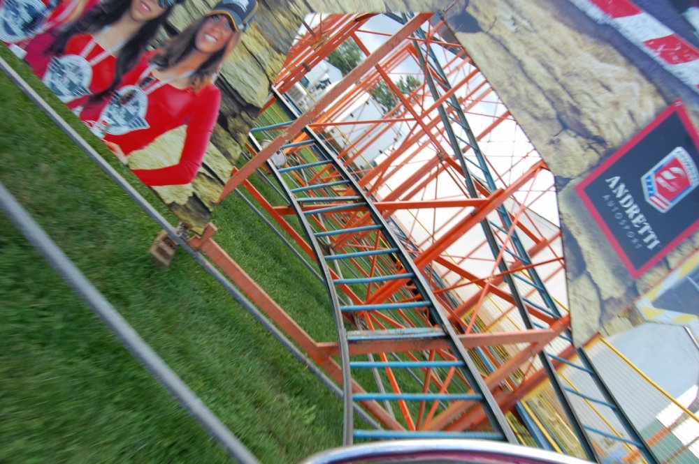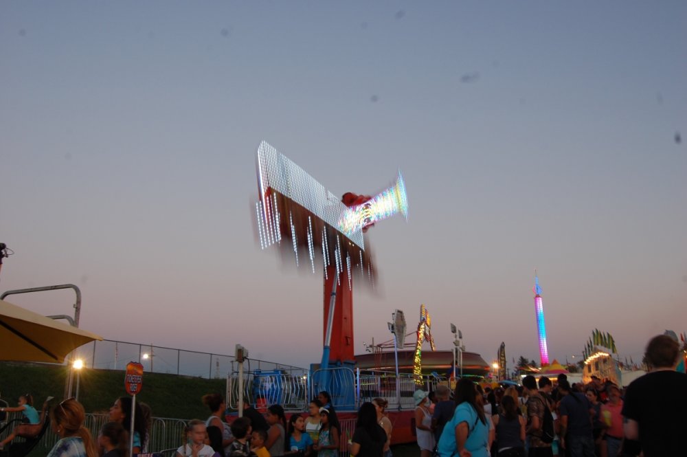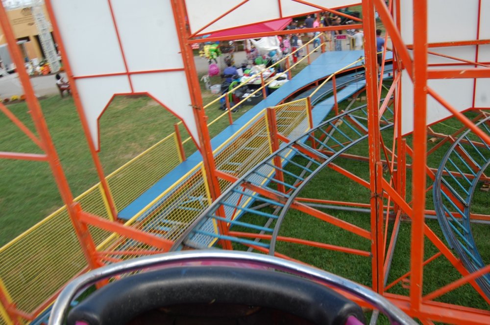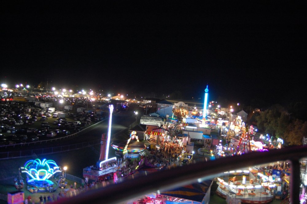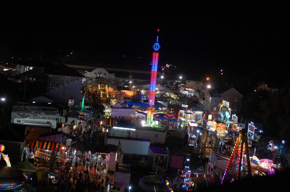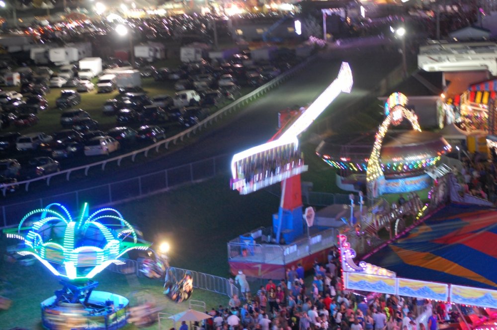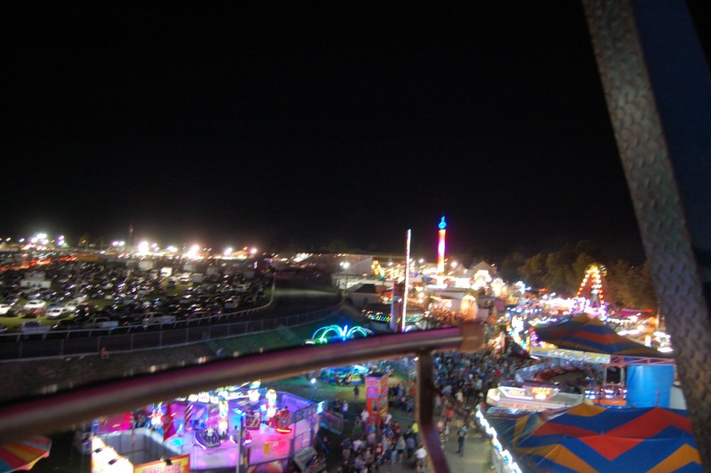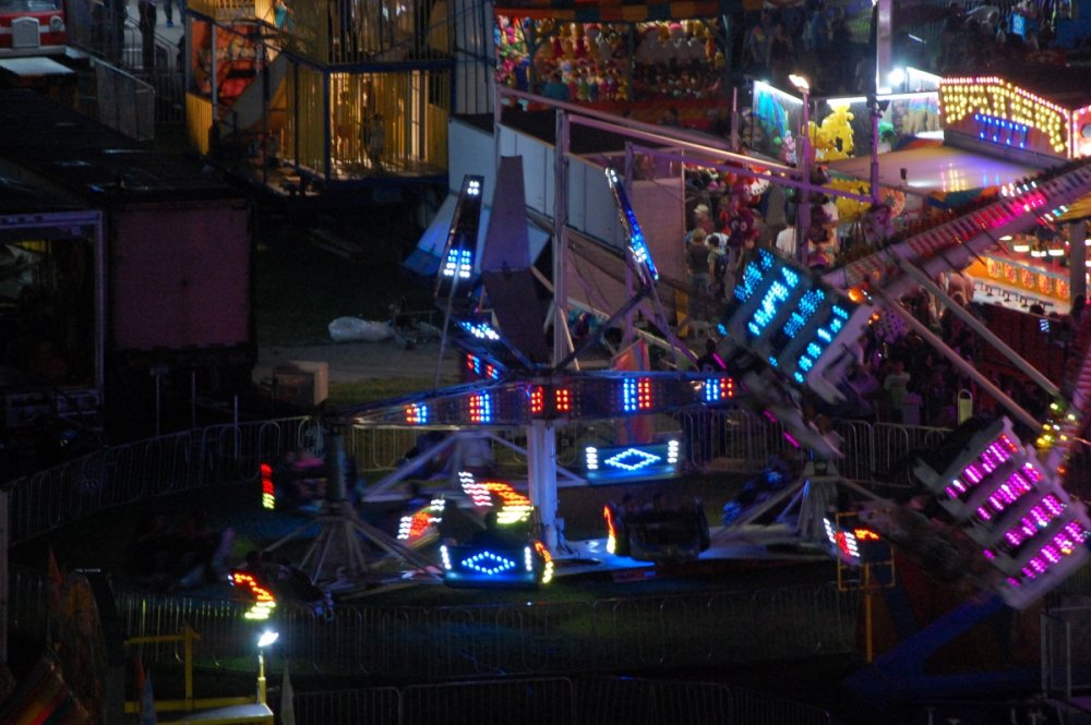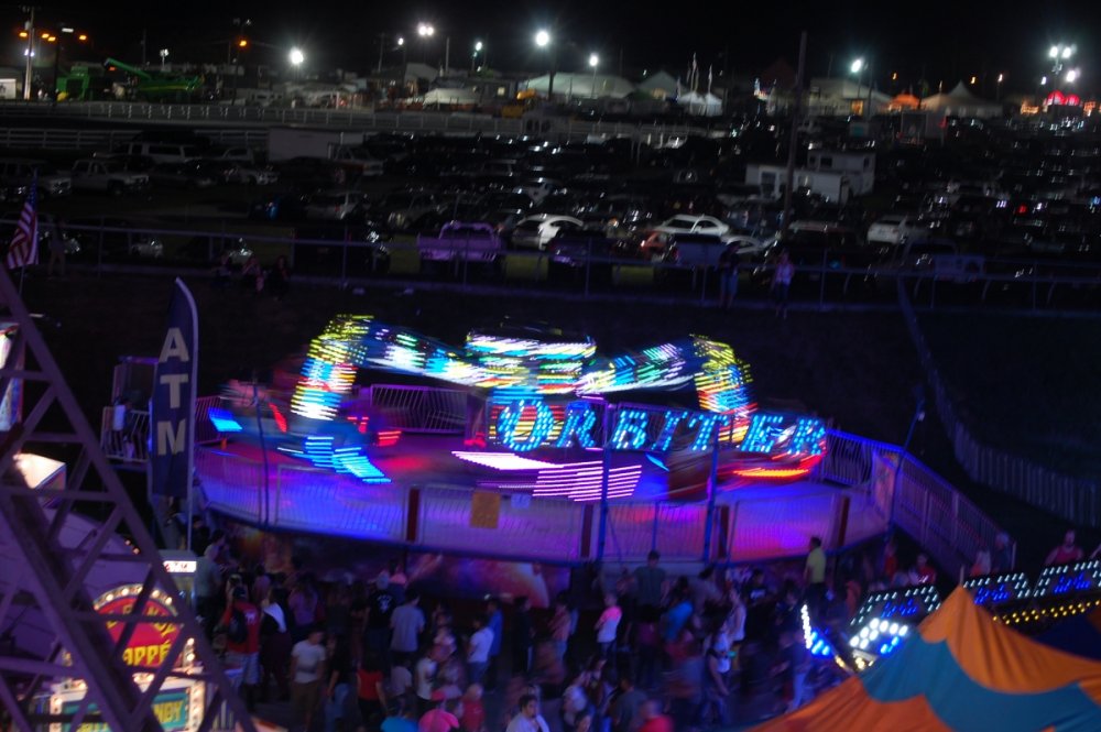 1. Yeah, it's not a half bad midway, and the fair overall is a really nice one. It surrounds a half-mile horse track. The midway runs the length of the front stretch behind the grandstand and curves around turn 4, outside turn 3 is the animal area/barns, along the outside of the back stretch is mainly for farm equipment dealers with food and other vendors scattered throughout, and outside turns 1 and 2 are the main food area and exhibit pavilions.