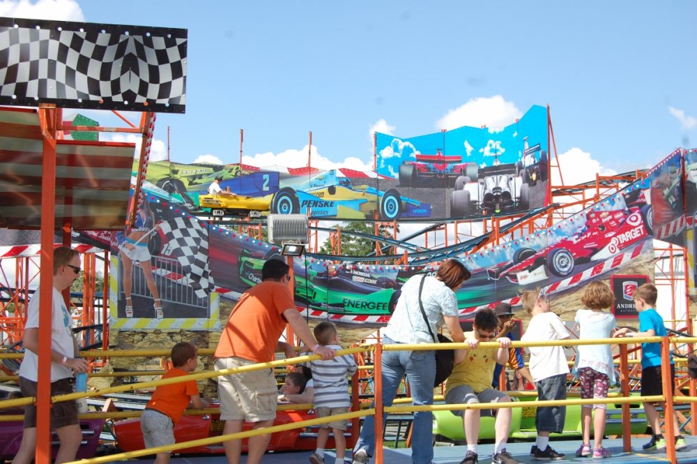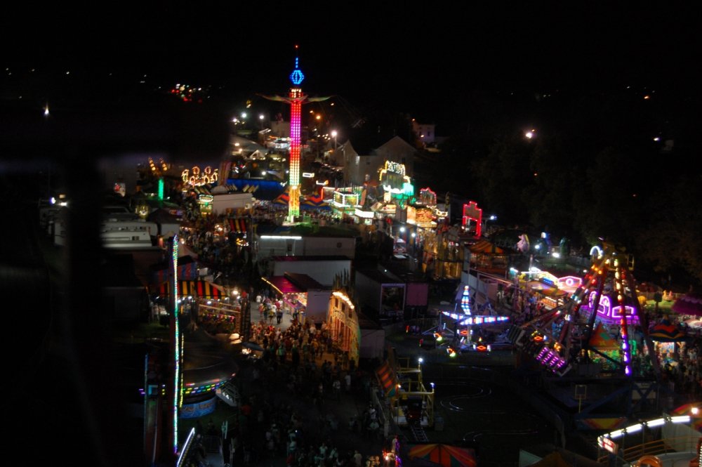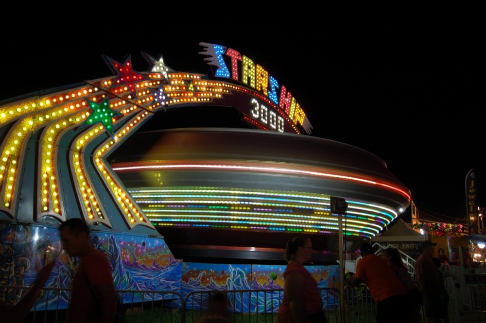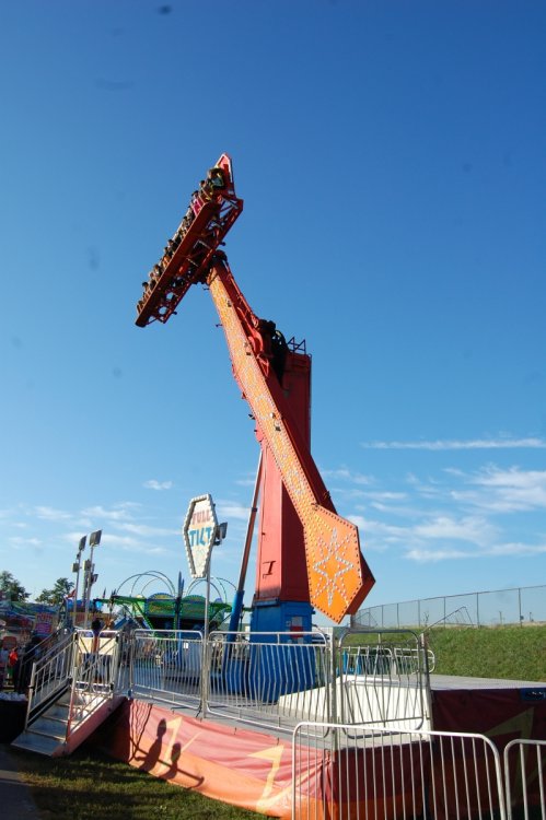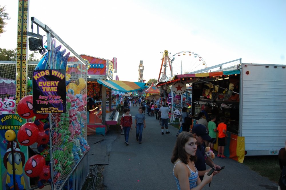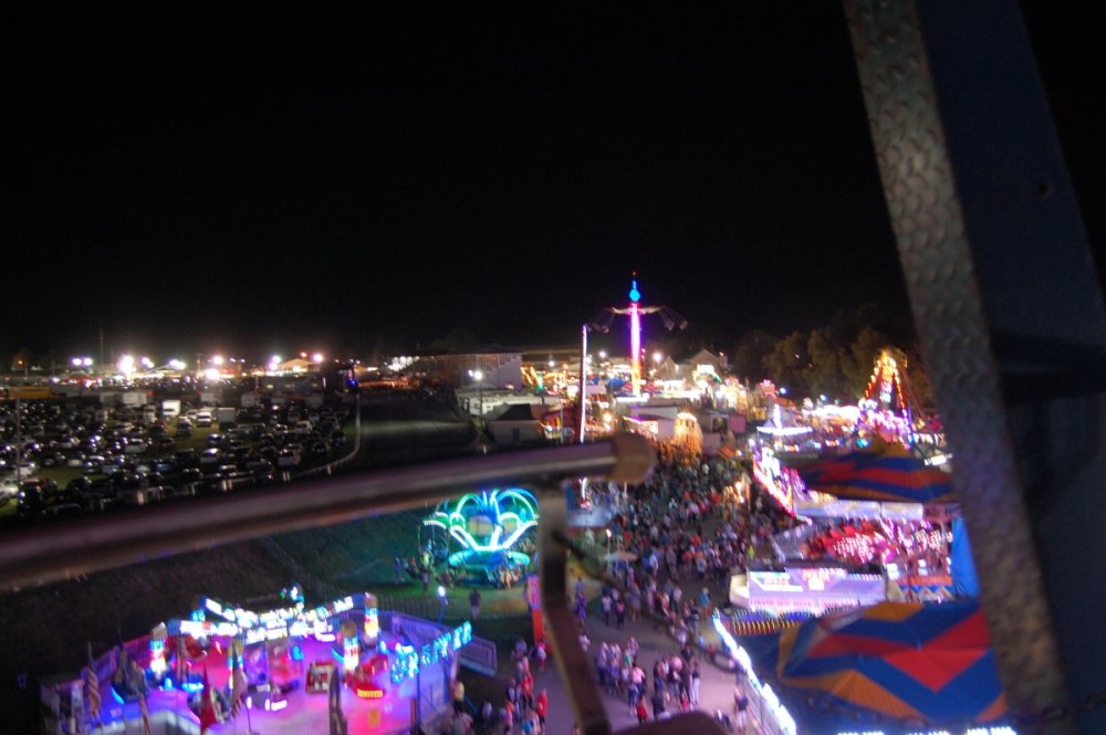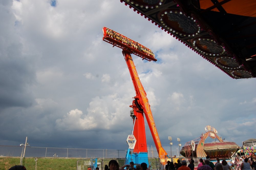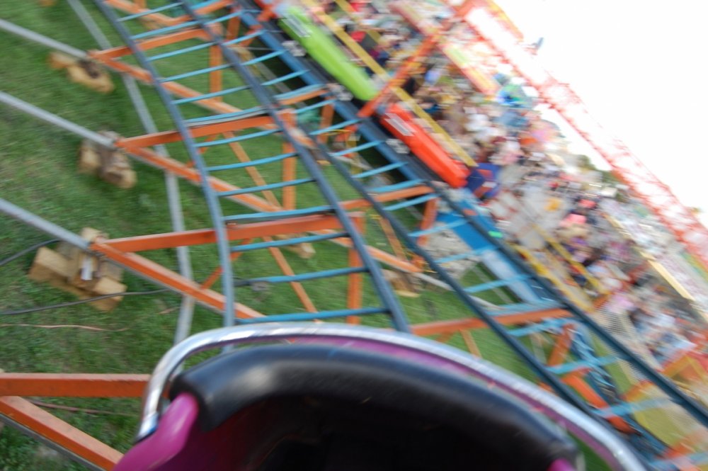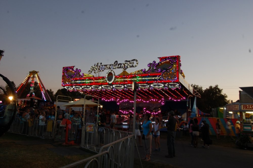 1. Yeah, it's not a half bad midway, and the fair overall is a really nice one. It surrounds a half-mile horse track. The midway runs the length of the front stretch behind the grandstand and curves around turn 4, outside turn 3 is the animal area/barns, along the outside of the back stretch is mainly for farm equipment dealers with food and other vendors scattered throughout, and outside turns 1 and 2 are the main food area and exhibit pavilions.