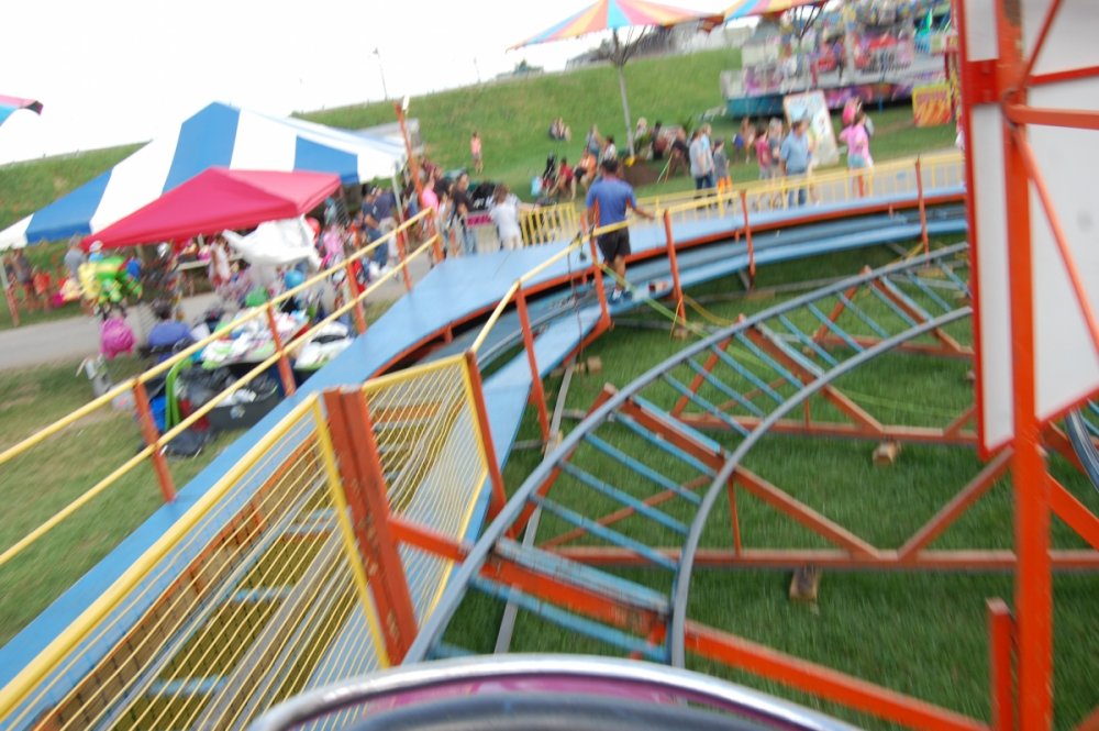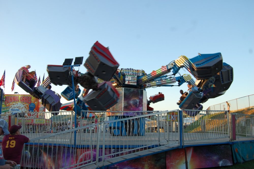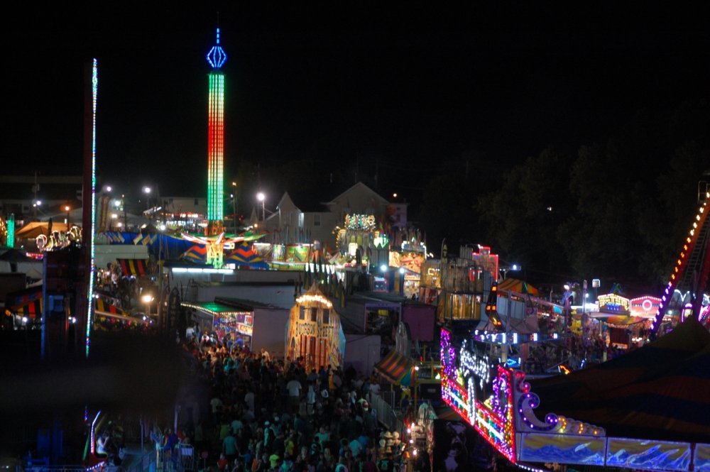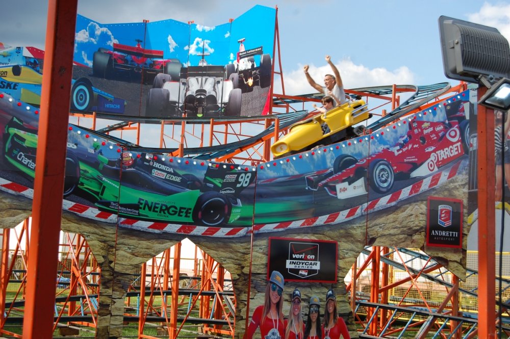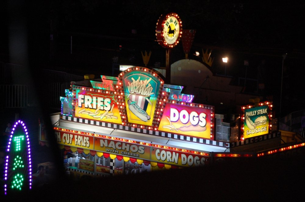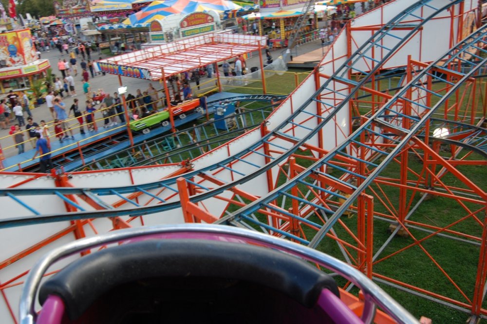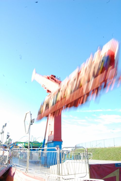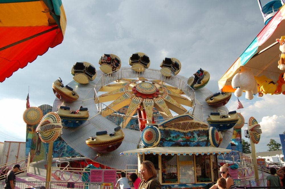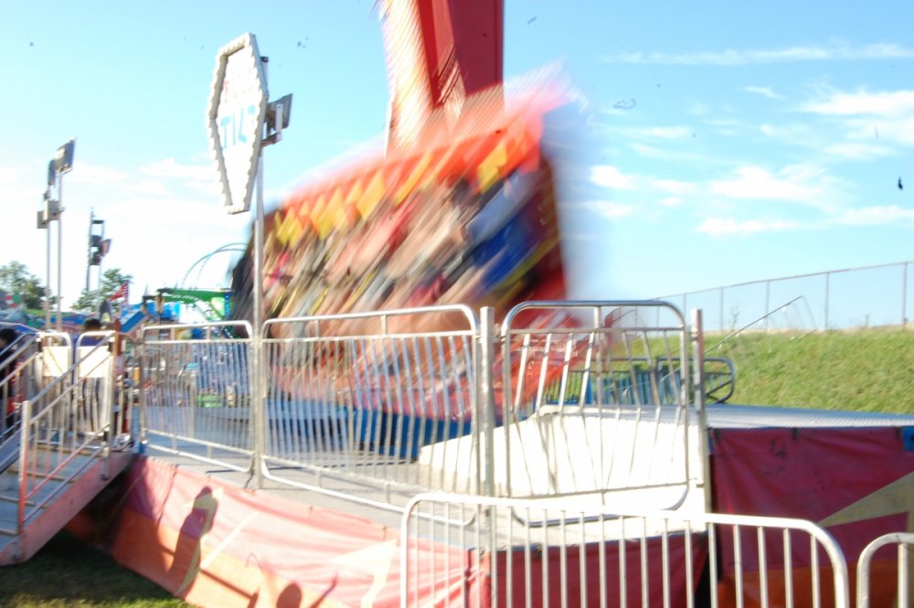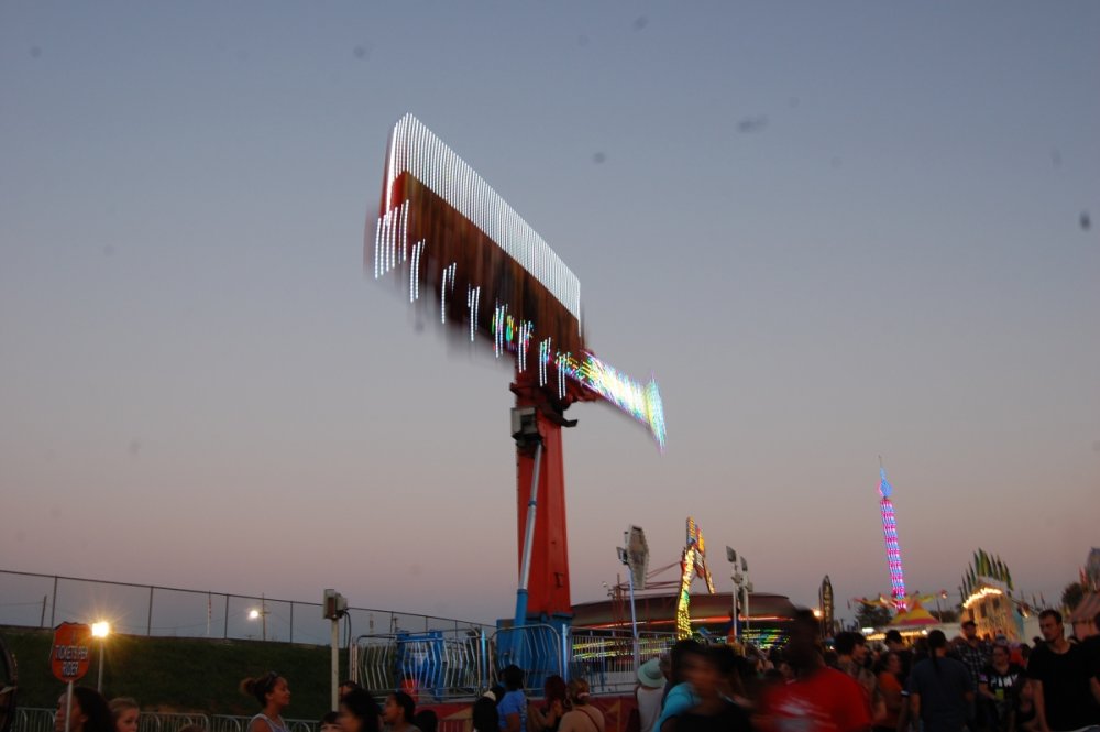 1. Yeah, it's not a half bad midway, and the fair overall is a really nice one. It surrounds a half-mile horse track. The midway runs the length of the front stretch behind the grandstand and curves around turn 4, outside turn 3 is the animal area/barns, along the outside of the back stretch is mainly for farm equipment dealers with food and other vendors scattered throughout, and outside turns 1 and 2 are the main food area and exhibit pavilions.