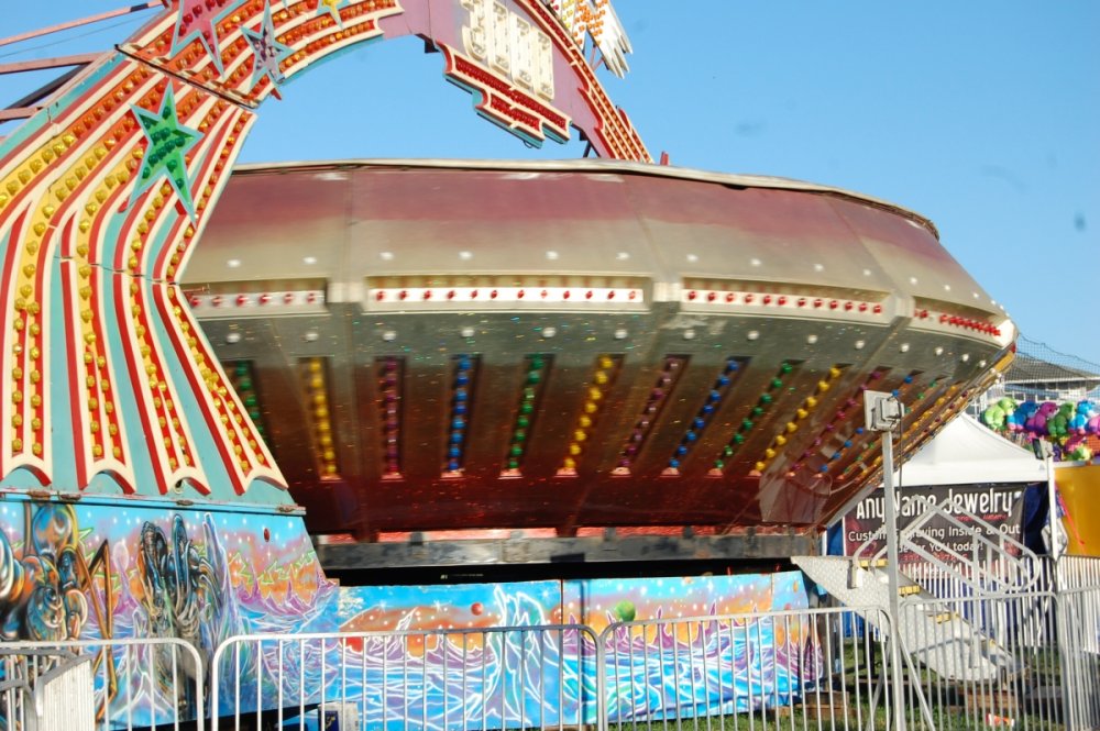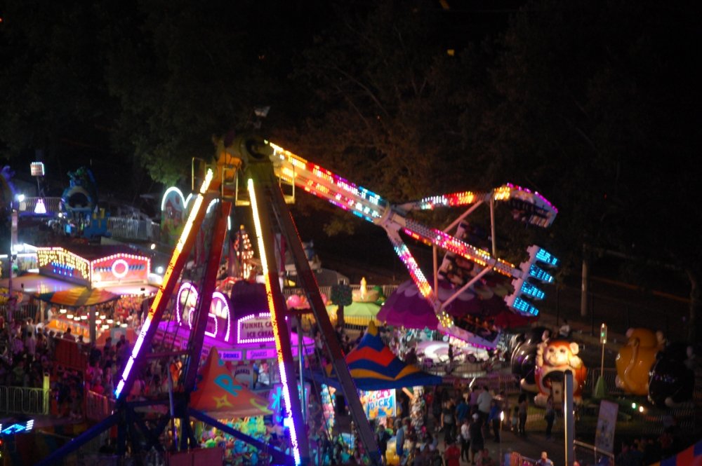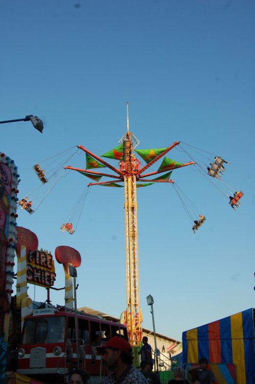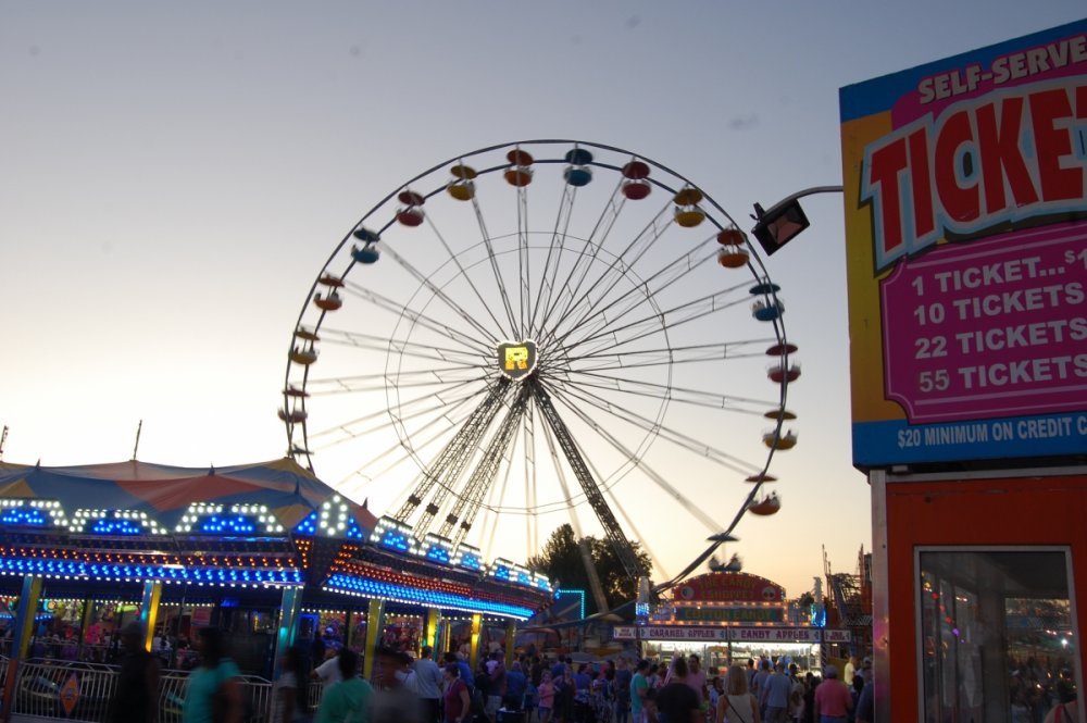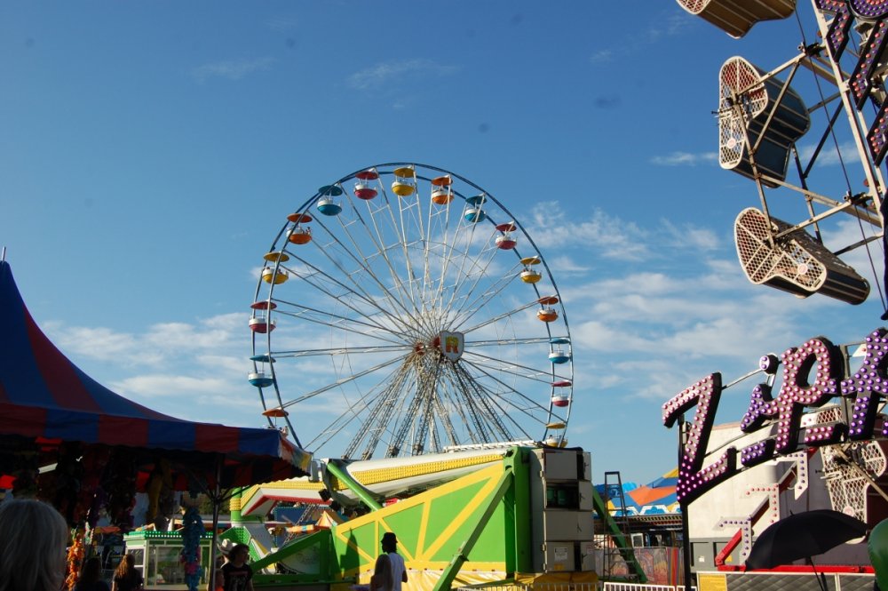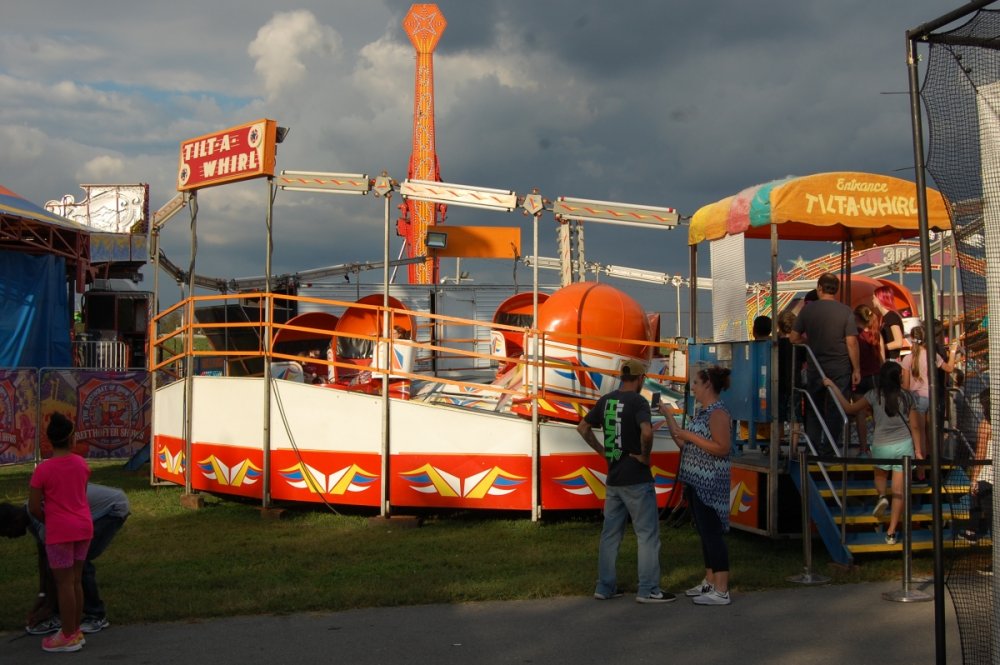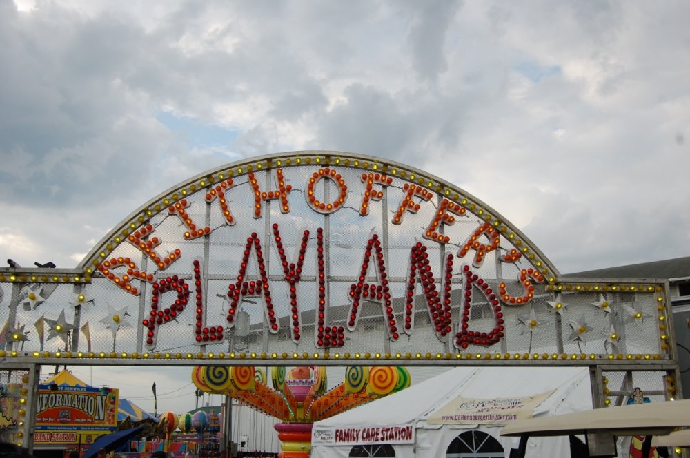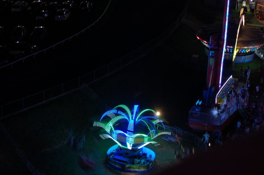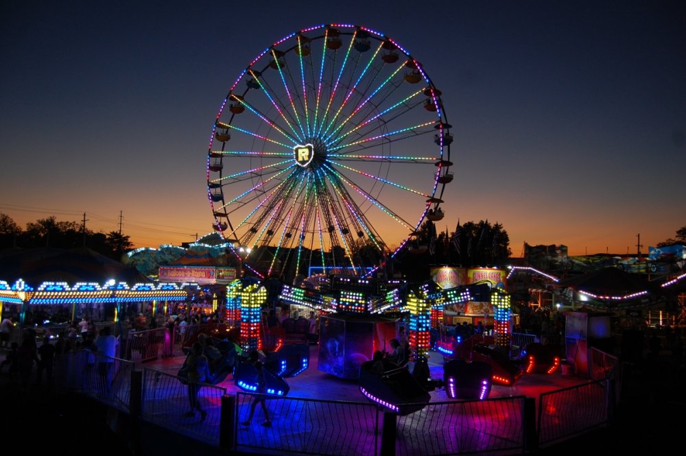 1. Yeah, it's not a half bad midway, and the fair overall is a really nice one. It surrounds a half-mile horse track. The midway runs the length of the front stretch behind the grandstand and curves around turn 4, outside turn 3 is the animal area/barns, along the outside of the back stretch is mainly for farm equipment dealers with food and other vendors scattered throughout, and outside turns 1 and 2 are the main food area and exhibit pavilions.