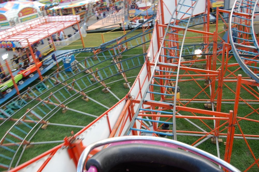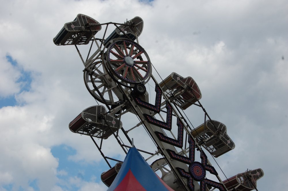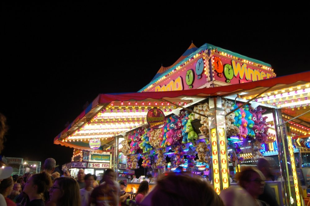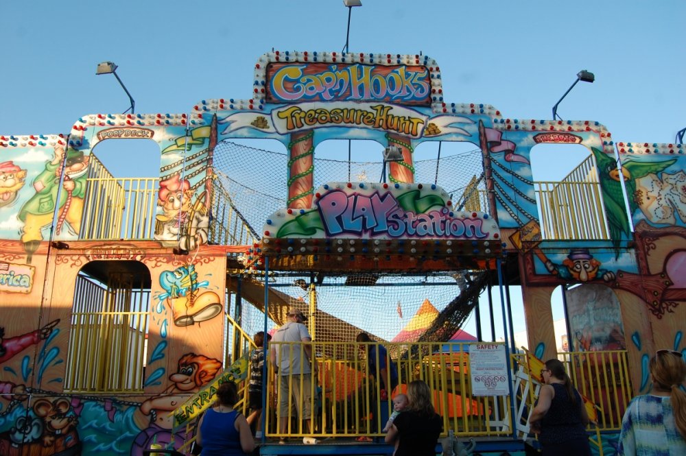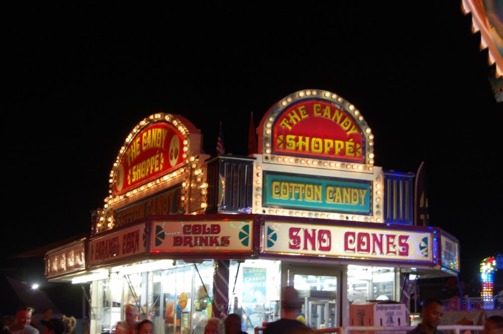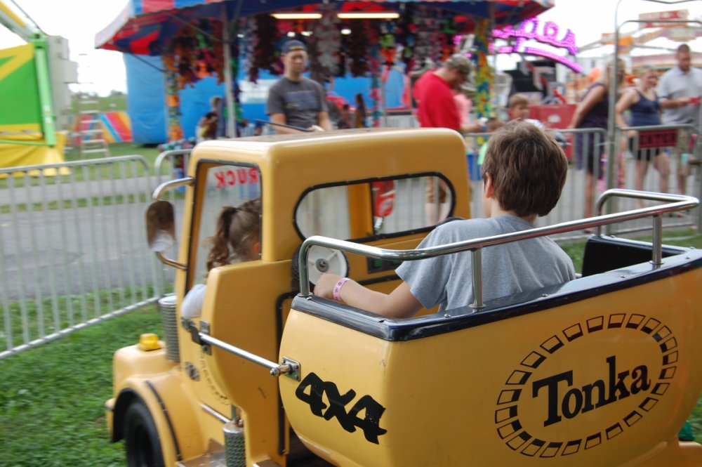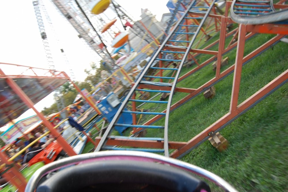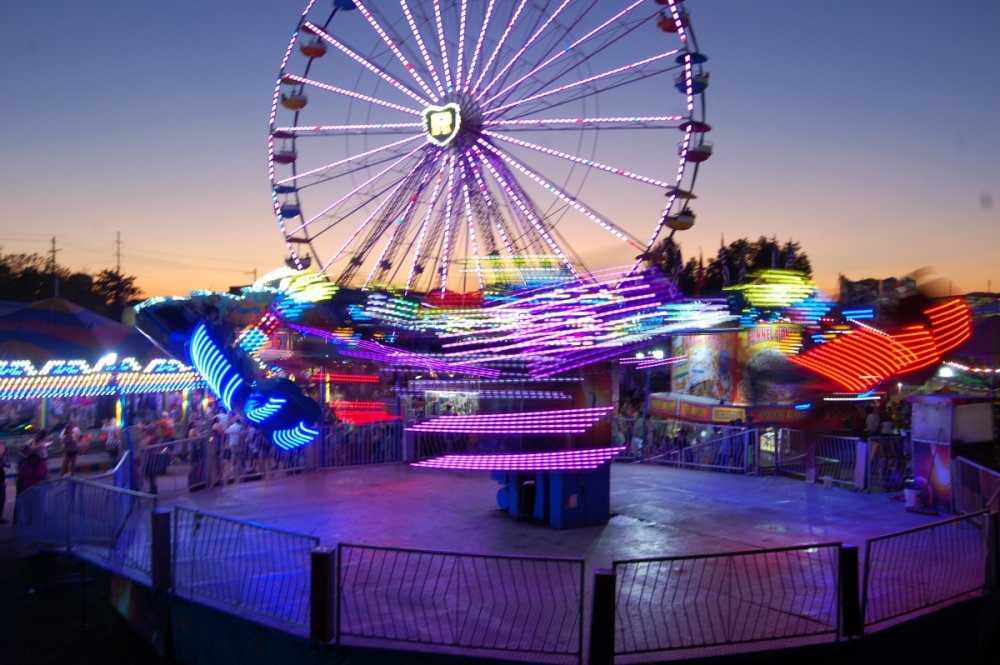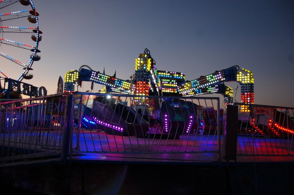 1. Yeah, it's not a half bad midway, and the fair overall is a really nice one. It surrounds a half-mile horse track. The midway runs the length of the front stretch behind the grandstand and curves around turn 4, outside turn 3 is the animal area/barns, along the outside of the back stretch is mainly for farm equipment dealers with food and other vendors scattered throughout, and outside turns 1 and 2 are the main food area and exhibit pavilions.