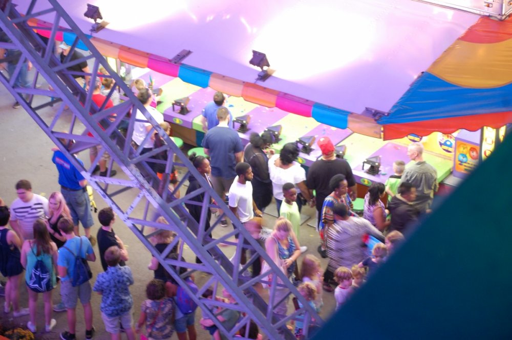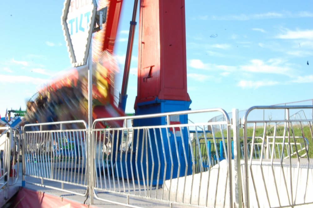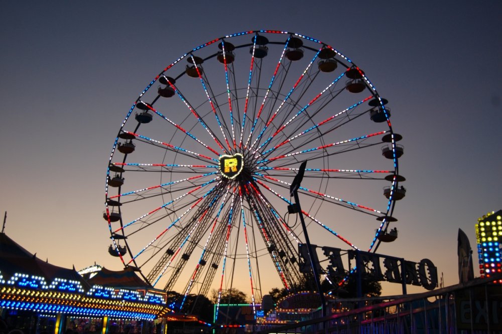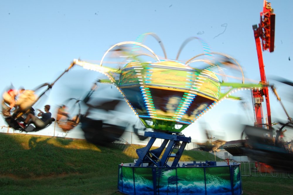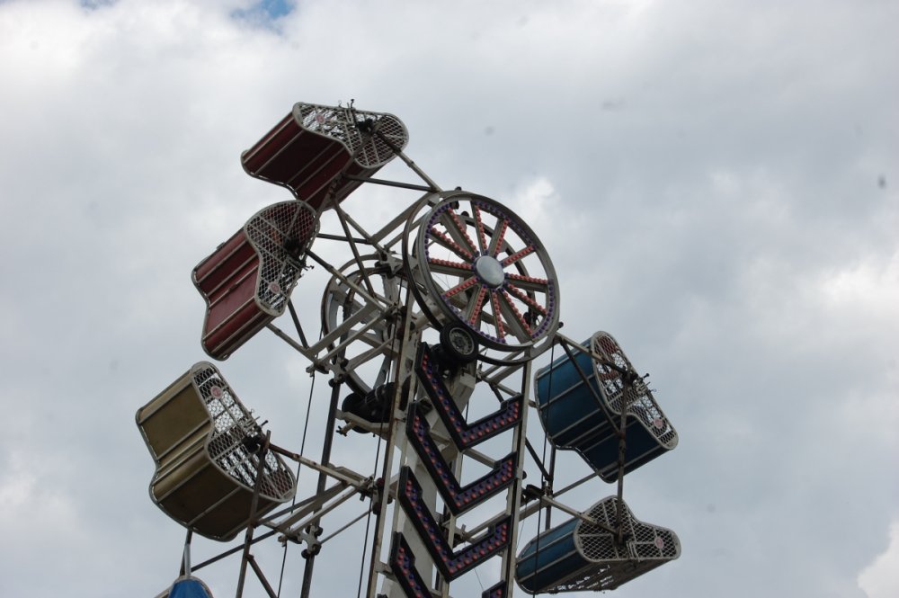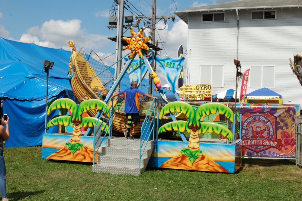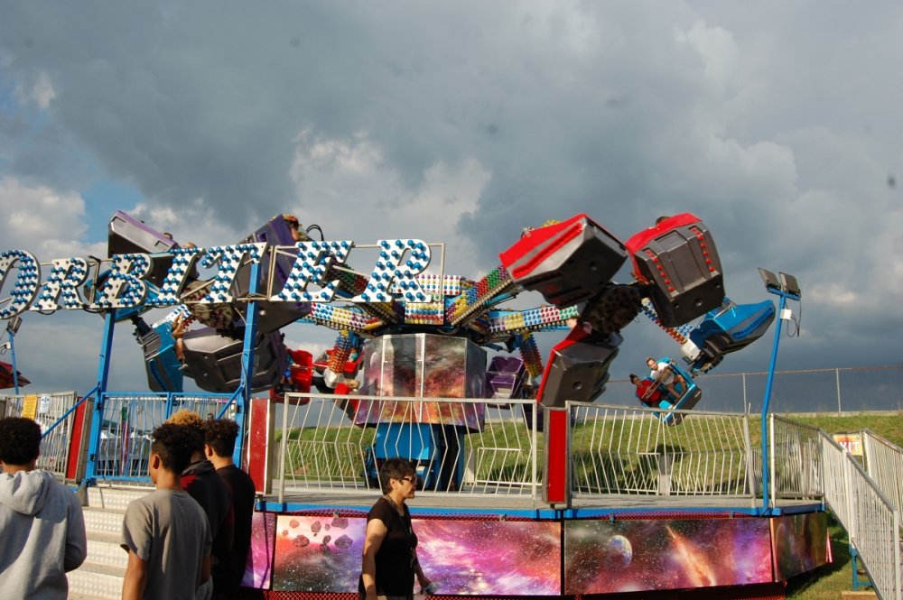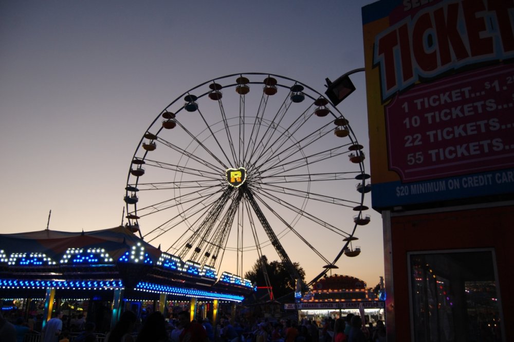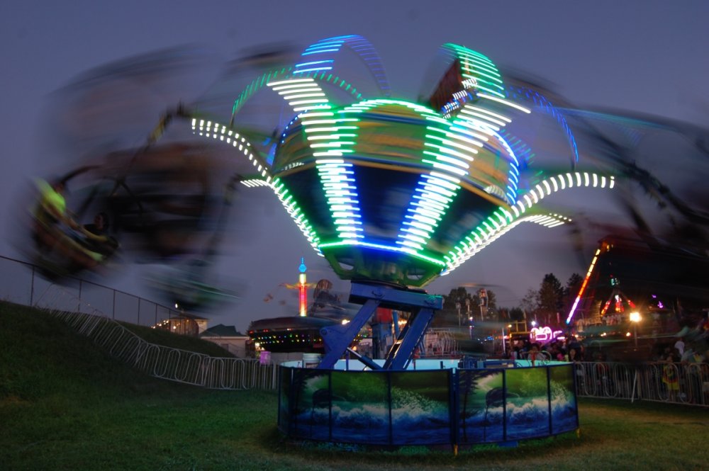 1. Yeah, it's not a half bad midway, and the fair overall is a really nice one. It surrounds a half-mile horse track. The midway runs the length of the front stretch behind the grandstand and curves around turn 4, outside turn 3 is the animal area/barns, along the outside of the back stretch is mainly for farm equipment dealers with food and other vendors scattered throughout, and outside turns 1 and 2 are the main food area and exhibit pavilions.