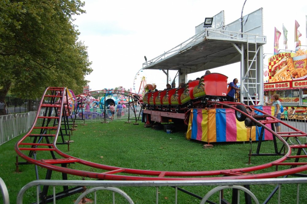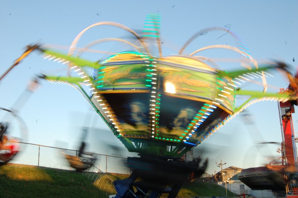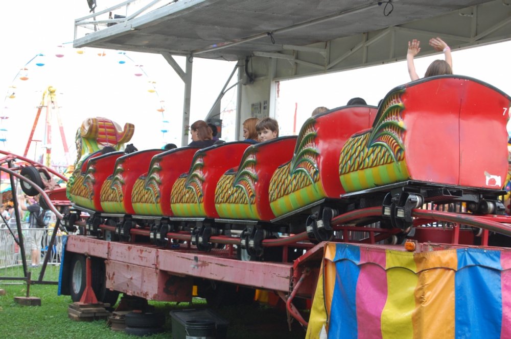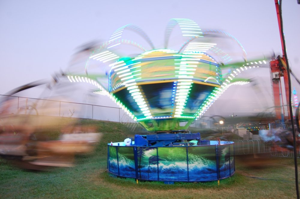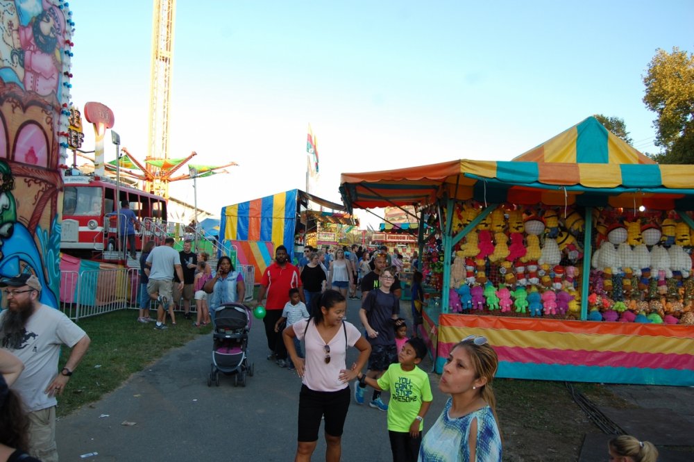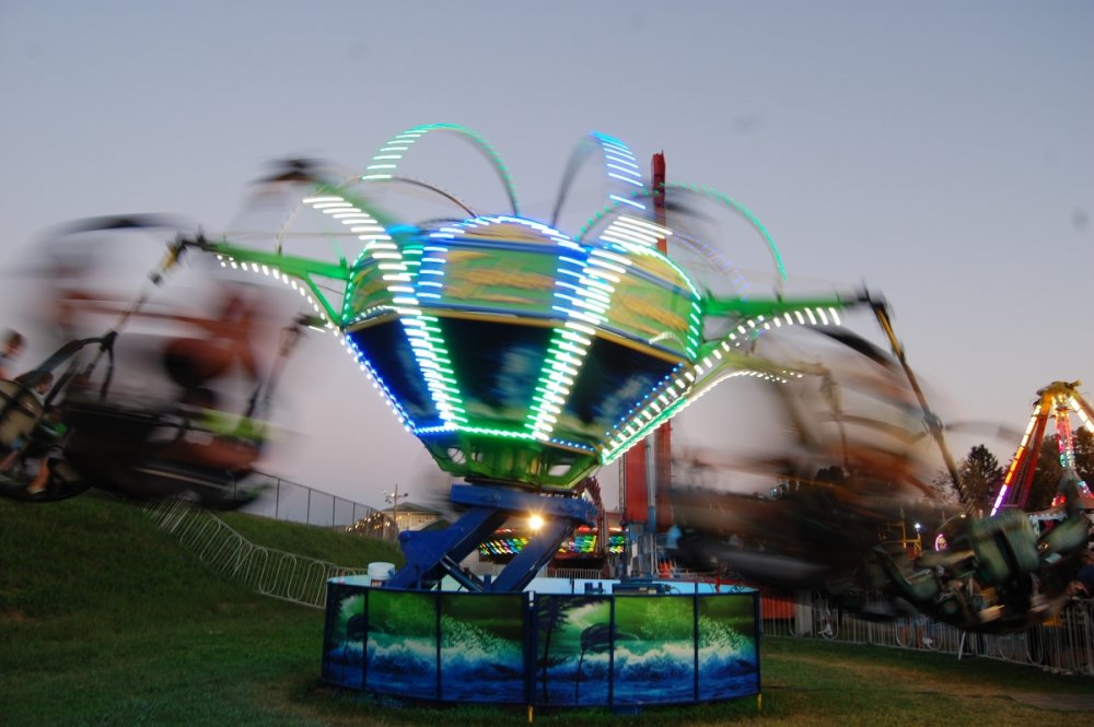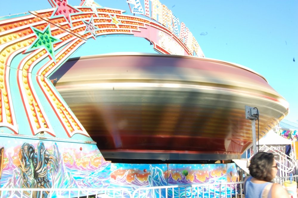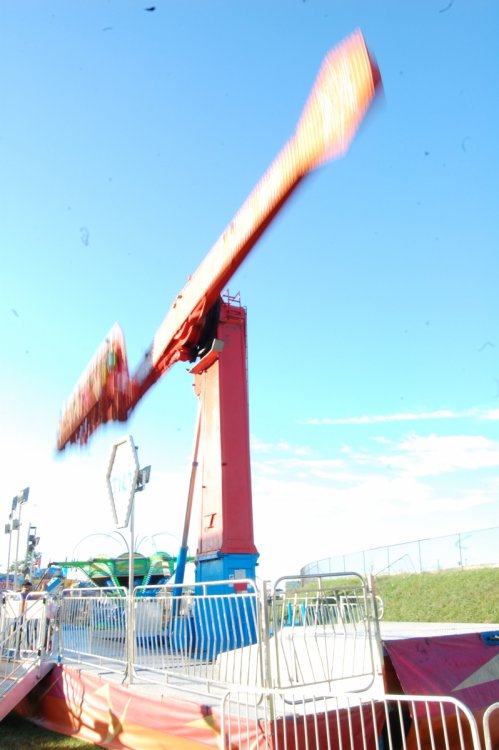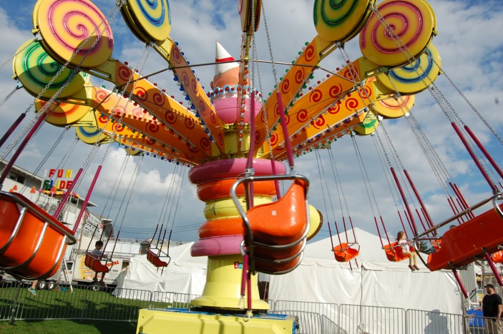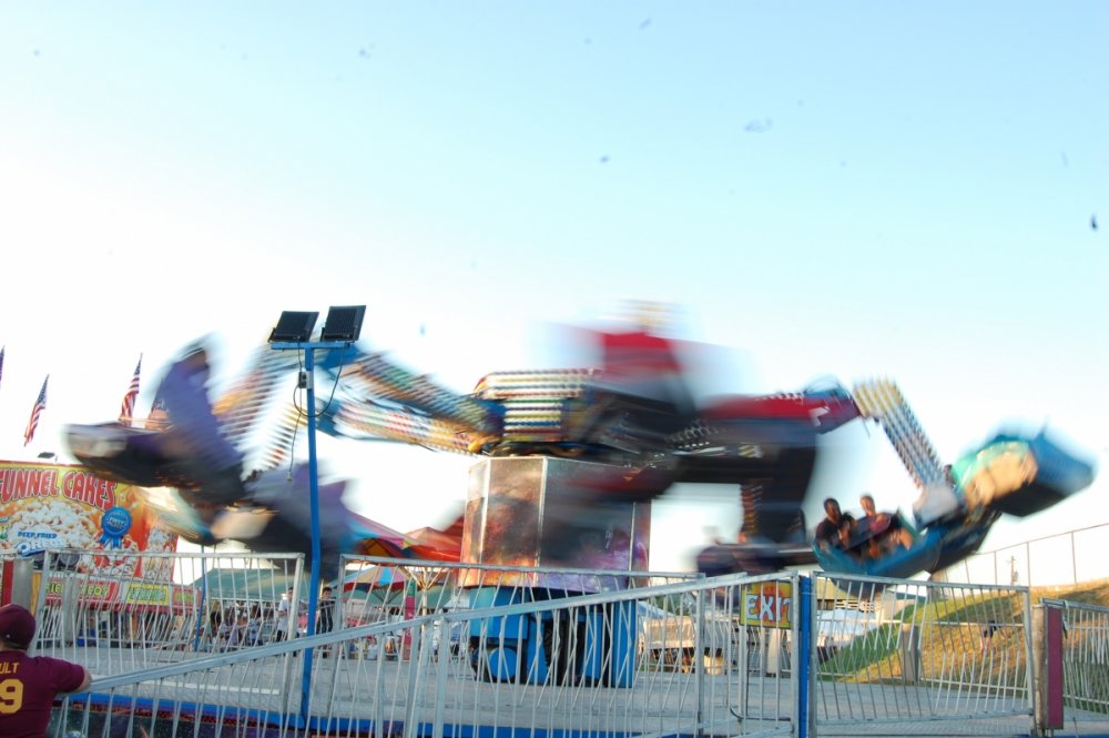 1. Yeah, it's not a half bad midway, and the fair overall is a really nice one. It surrounds a half-mile horse track. The midway runs the length of the front stretch behind the grandstand and curves around turn 4, outside turn 3 is the animal area/barns, along the outside of the back stretch is mainly for farm equipment dealers with food and other vendors scattered throughout, and outside turns 1 and 2 are the main food area and exhibit pavilions.