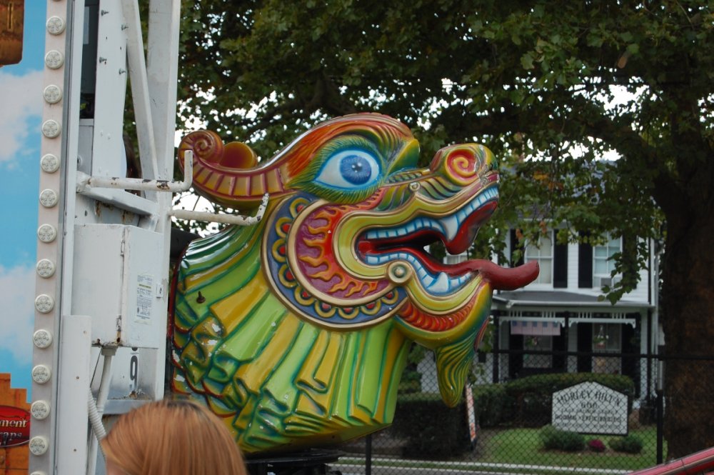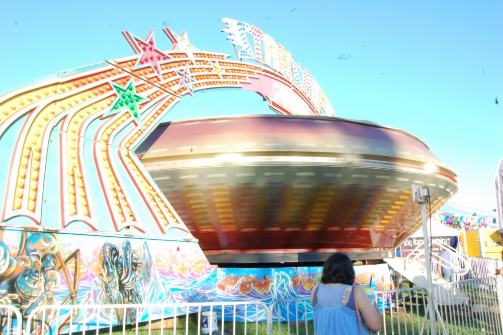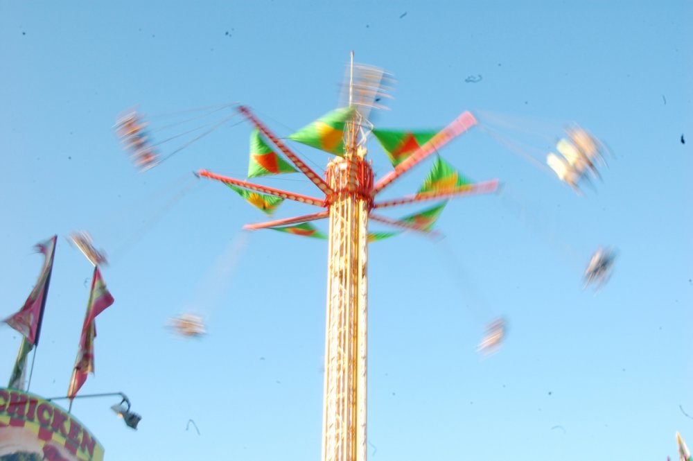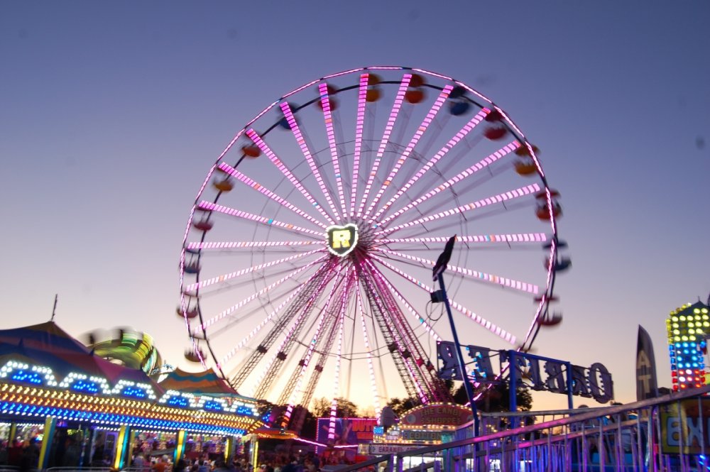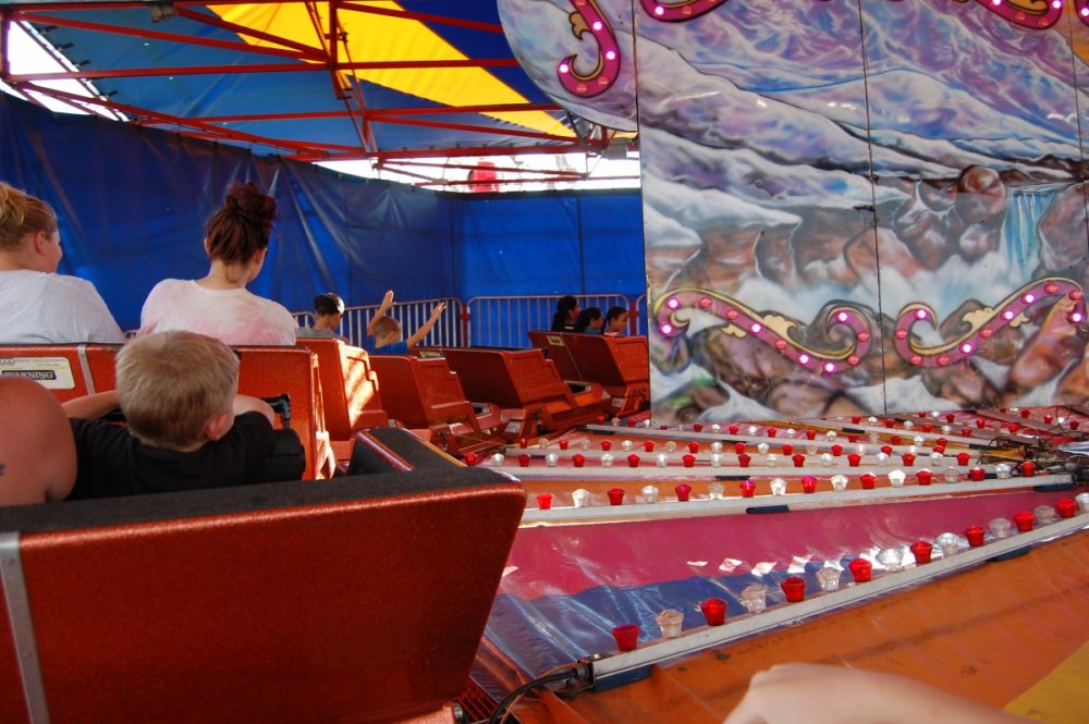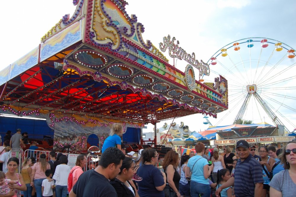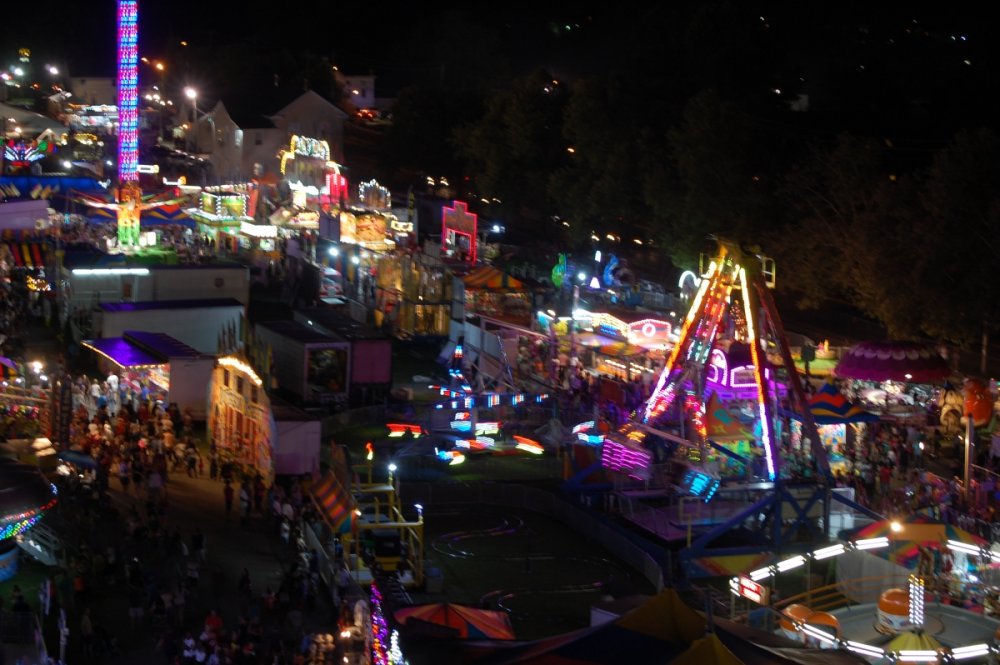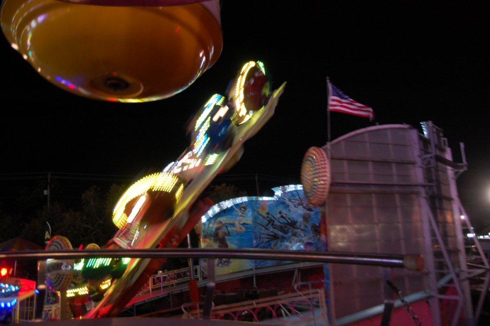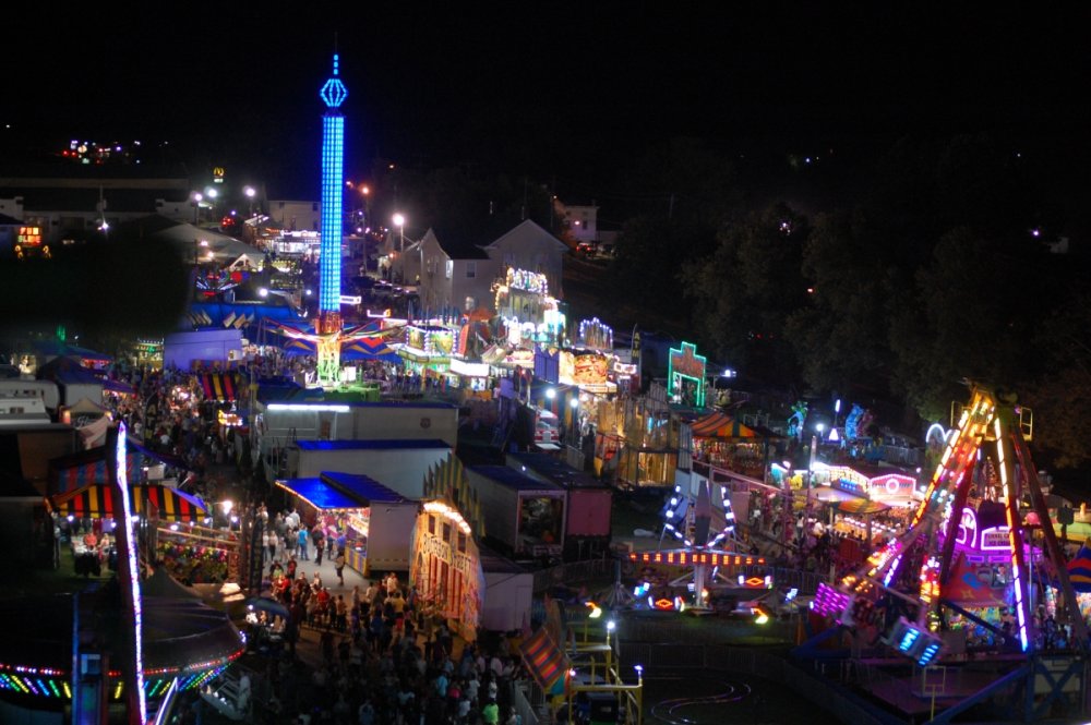 1. Yeah, it's not a half bad midway, and the fair overall is a really nice one. It surrounds a half-mile horse track. The midway runs the length of the front stretch behind the grandstand and curves around turn 4, outside turn 3 is the animal area/barns, along the outside of the back stretch is mainly for farm equipment dealers with food and other vendors scattered throughout, and outside turns 1 and 2 are the main food area and exhibit pavilions.