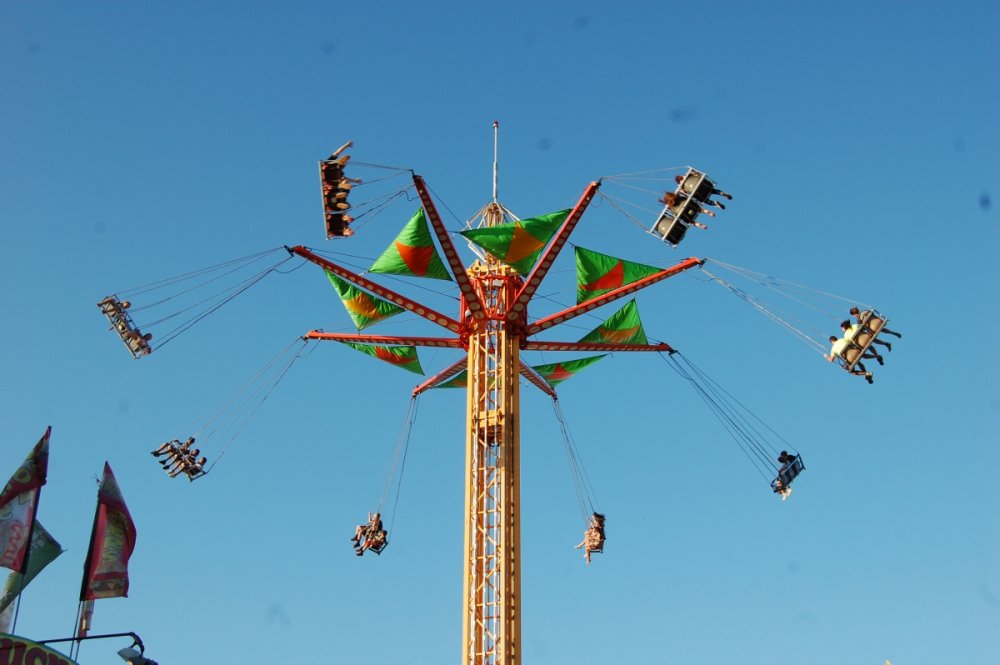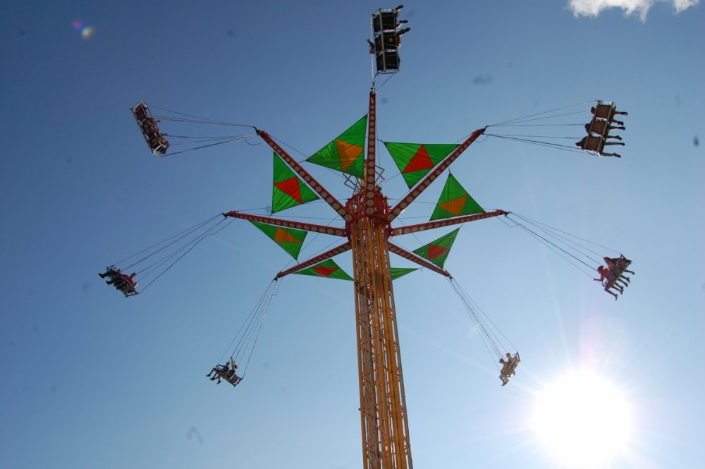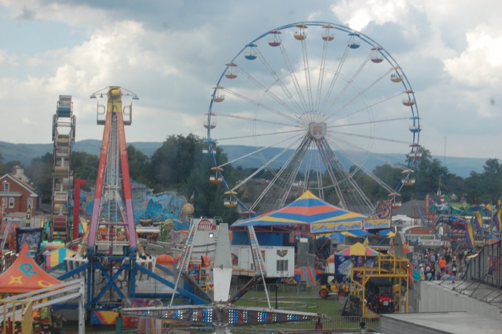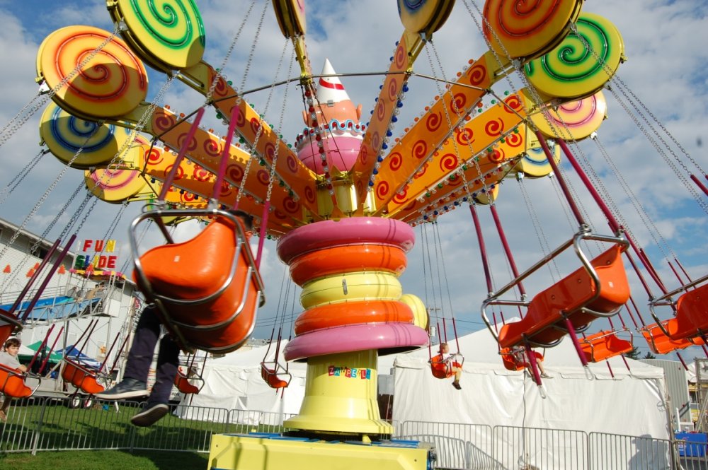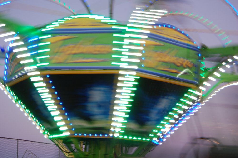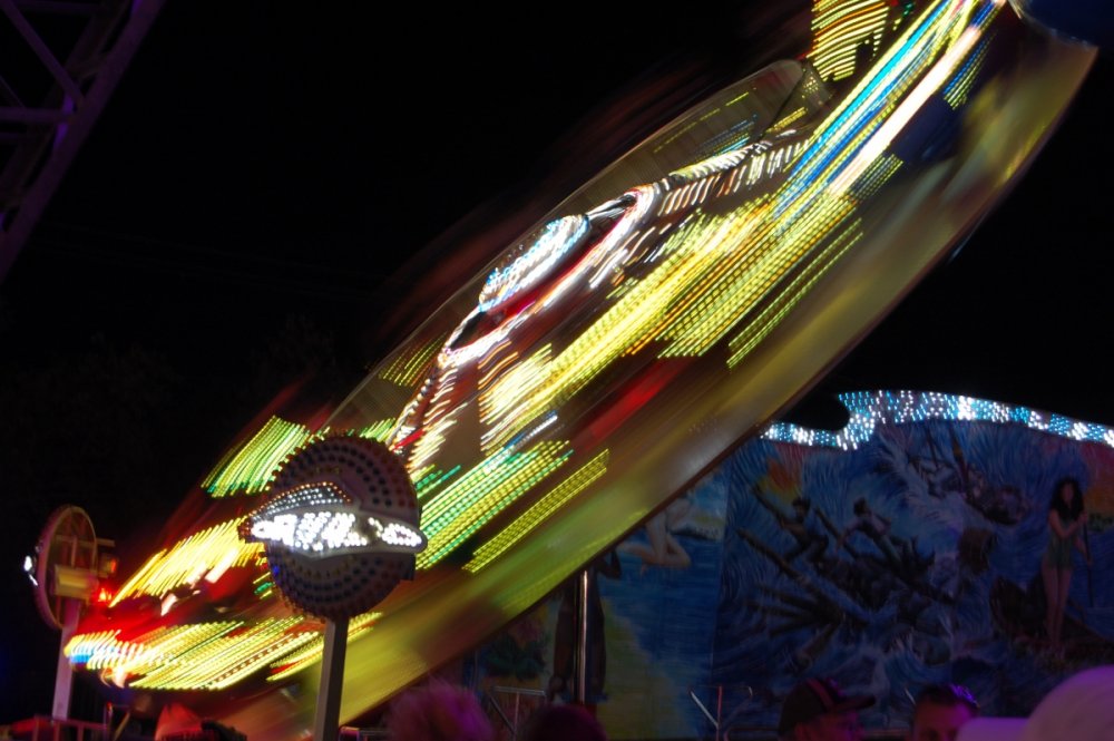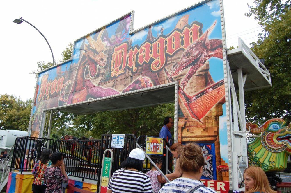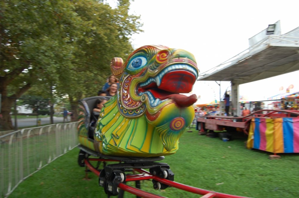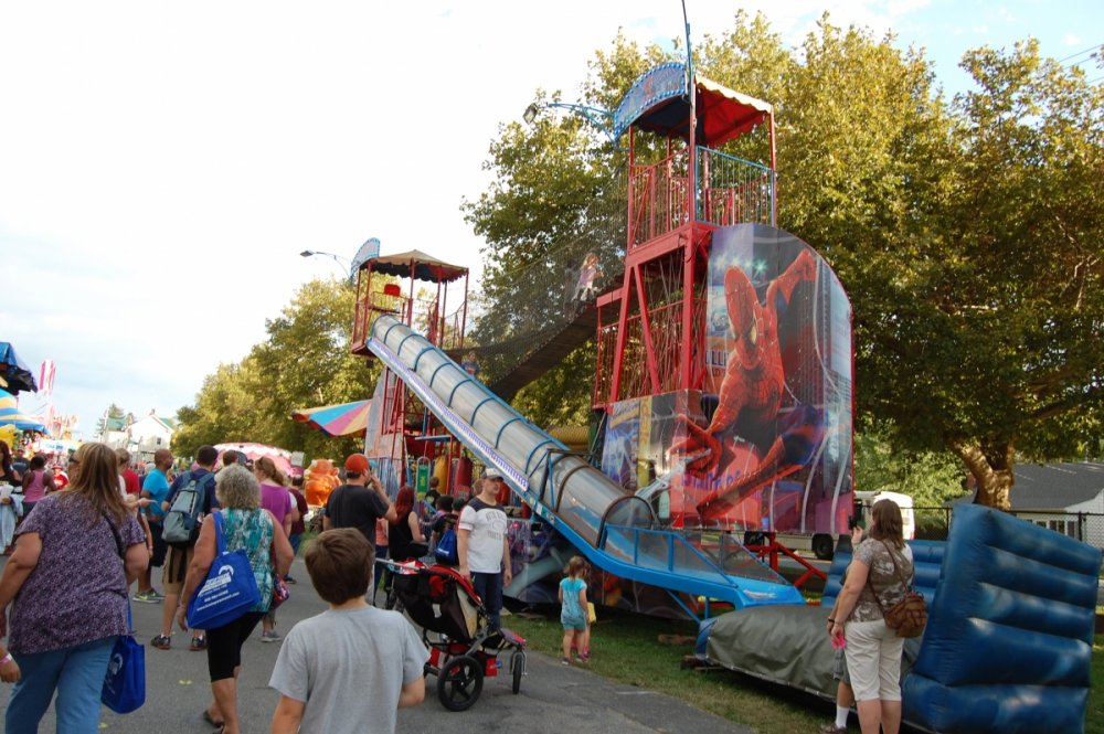 1. Yeah, it's not a half bad midway, and the fair overall is a really nice one. It surrounds a half-mile horse track. The midway runs the length of the front stretch behind the grandstand and curves around turn 4, outside turn 3 is the animal area/barns, along the outside of the back stretch is mainly for farm equipment dealers with food and other vendors scattered throughout, and outside turns 1 and 2 are the main food area and exhibit pavilions.