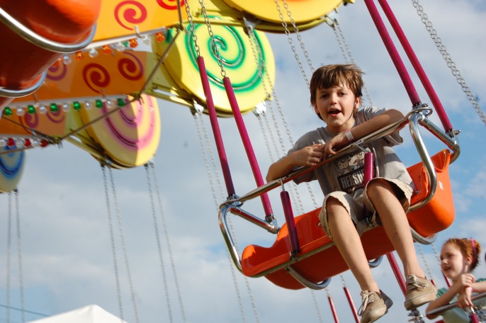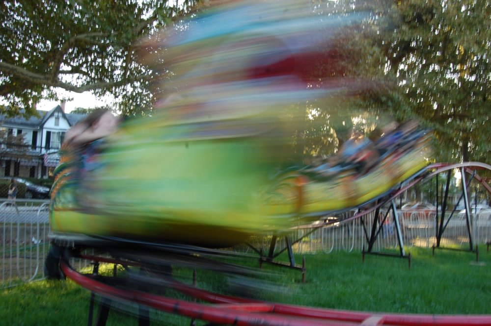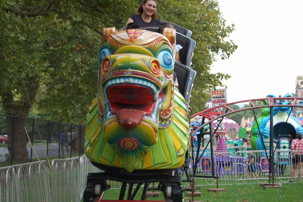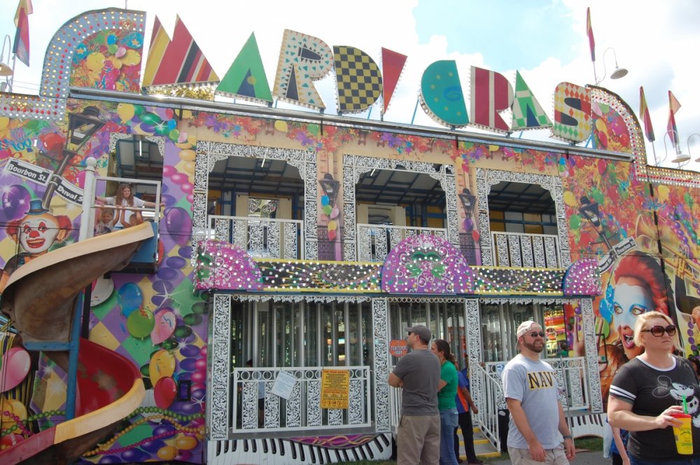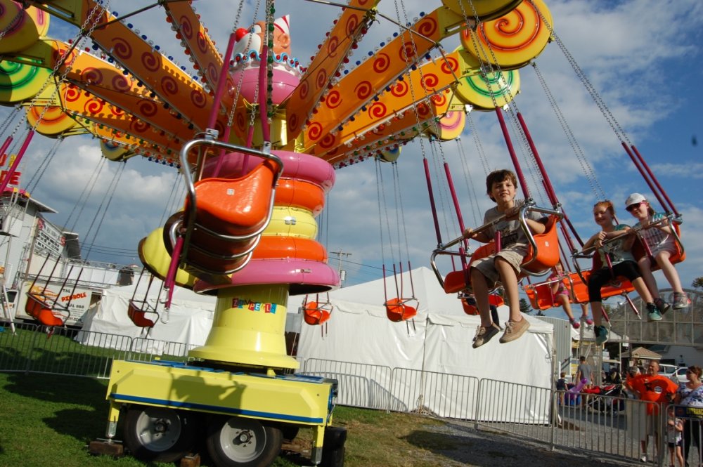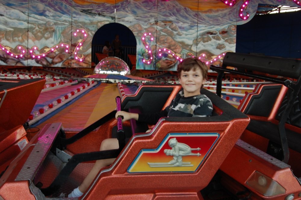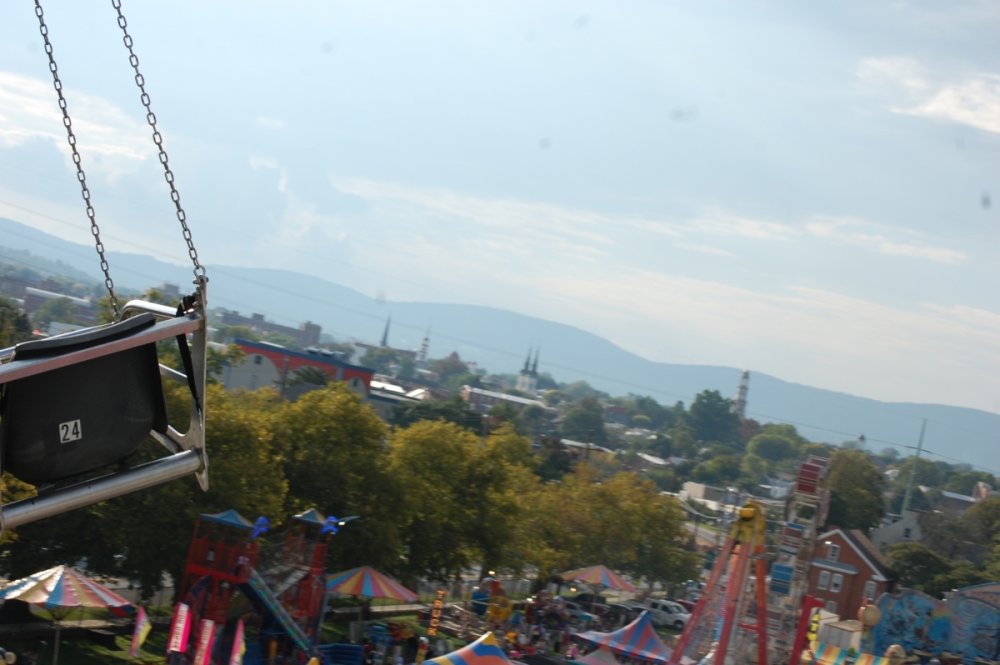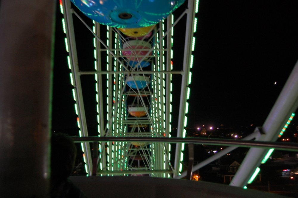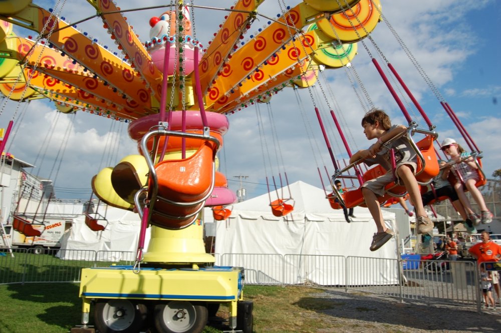 1. Yeah, it's not a half bad midway, and the fair overall is a really nice one. It surrounds a half-mile horse track. The midway runs the length of the front stretch behind the grandstand and curves around turn 4, outside turn 3 is the animal area/barns, along the outside of the back stretch is mainly for farm equipment dealers with food and other vendors scattered throughout, and outside turns 1 and 2 are the main food area and exhibit pavilions.
