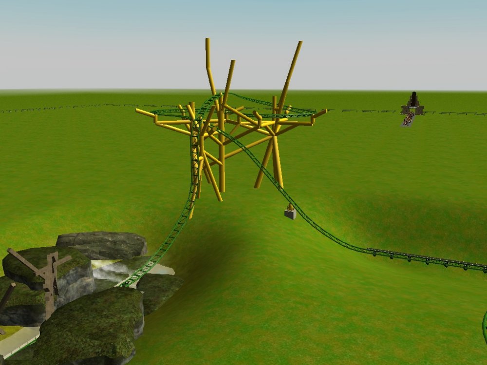 I'm bringing to you a new park I've been constructing for 2 days now, I'm going to focus on building the park first before I bring in a storyline for the park. I've got a fair amount of construction done and I'd like to share some photos in order to grab some feedback for further developments. Without further ado.. Although it's not huge and amazing, this is a small(ish) park and this is the signature coaster.. for now The coasters entrance, TimBurr is the coasters name It only has one train, which is a Millenium Flyer which was brought from GCI The entrance to JungKarts An overview of JungKarts and Tree Swinger Tree Swinger The entrance to Shot 'N Drop Shot 'N Drop overview The next ride is installed.. Now awaiting the themeing Signing Off,