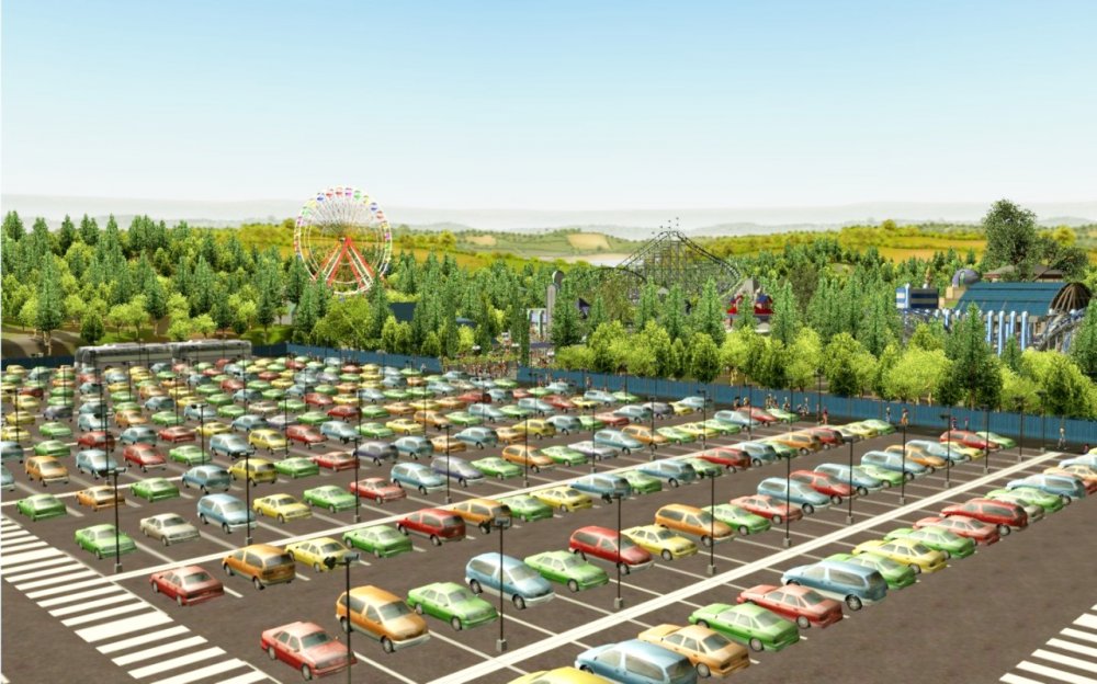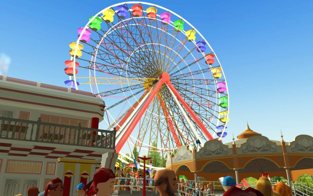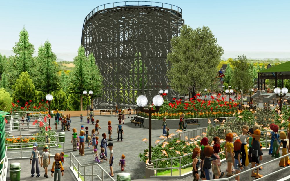 1964 - Progress Ahead You may be happy to hear, the park is really in a good financial position right about now. The Space Wheel is really attracting revenue, and the rally behind the space race is helping tons with publicity. It's awaiting that perfect sign which may make it truly recognizable for miles around. You may also want to hear that the park can finally do some upgrades to its layout. Some parts of the layout work really well, others have their flaws, which we intend to work out. A major flaw is the pathway clogging Mad Mouse whose days are already numbered. It's served its purpose, it's gotta go soon. As the park gains a new staple, it loses a tradition, the old ferris wheel has been removed, unfortunately no park wanted it, and its been sold for scrap. Finally though we get some great views of Racer, and the paths are infact going to be rerouted to help consolidate those views.