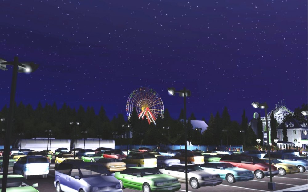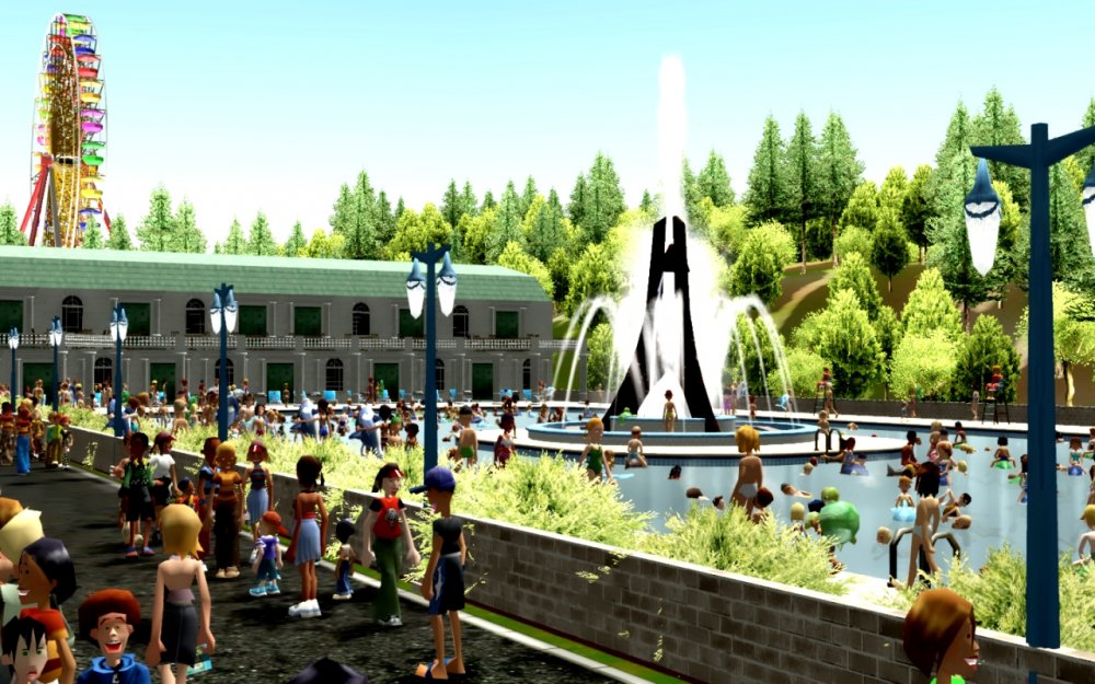 1964 - The Wheel Unveiled Nothing too exciting here! Path's been made less uneven, that's about it! Ahh, here it is! This 200+ foot tall ferris wheel stand high over the park. A new staple to East Side's growing skyline! In addition to the wheel, this refreshments building has been added. As well as these bathrooms.