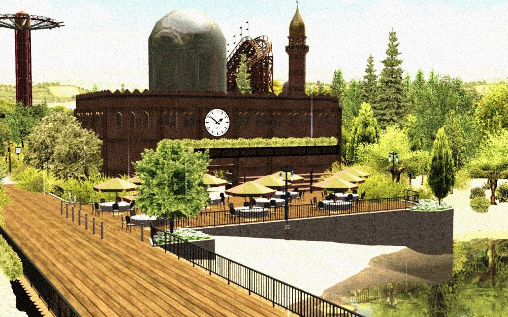 Guys, I hope you are enjoying my park so far. I'm almost caught up, but keep the comments coming! Criticism I will always take constructively. If you see something out of place, just let me know and I'll see if I can improve upon it. ------------------------------------------------------------ Well folks, as this long season is finally drawing to a close, it seems more and more that the people think this park is getting another coaster. There are rumors that touch-up maintenance to the Loop-De-Loop has been halted, and the ride is being left to rot. However, this is not true, as the park is dedicated to keeping all their rides at their peak performance at all times and no neglect has been made to any rides. Other parks in the region have begun collecting parts for their new attractions in 1928, and East Side is no exception, we've got a large store of parts ready to be assembled as soon as the season ends. Unfortunately we cannot reveal to you any details of this said attraction at the moment. However, we are able to give you an artists interpretation of the attraction of what it may look like based on all the plans collected. Details will be given once the ride has been fully constructed and is in a ride-able condition for all passengers.