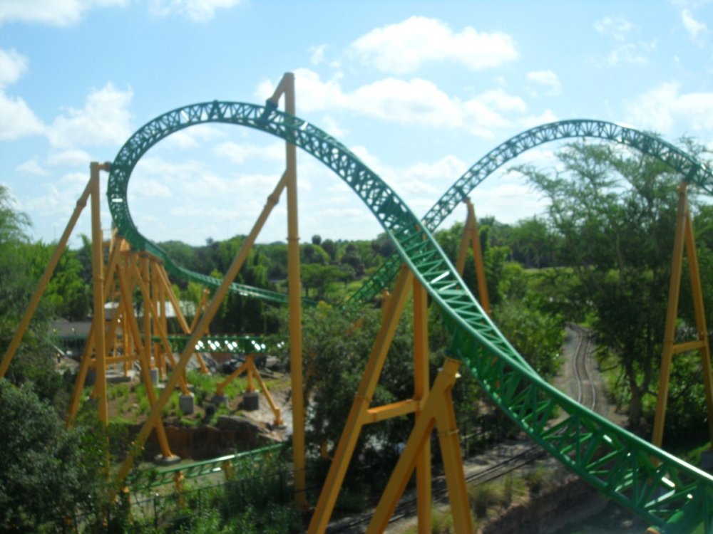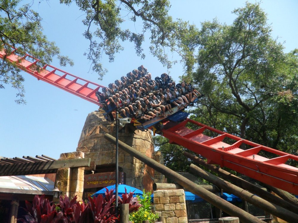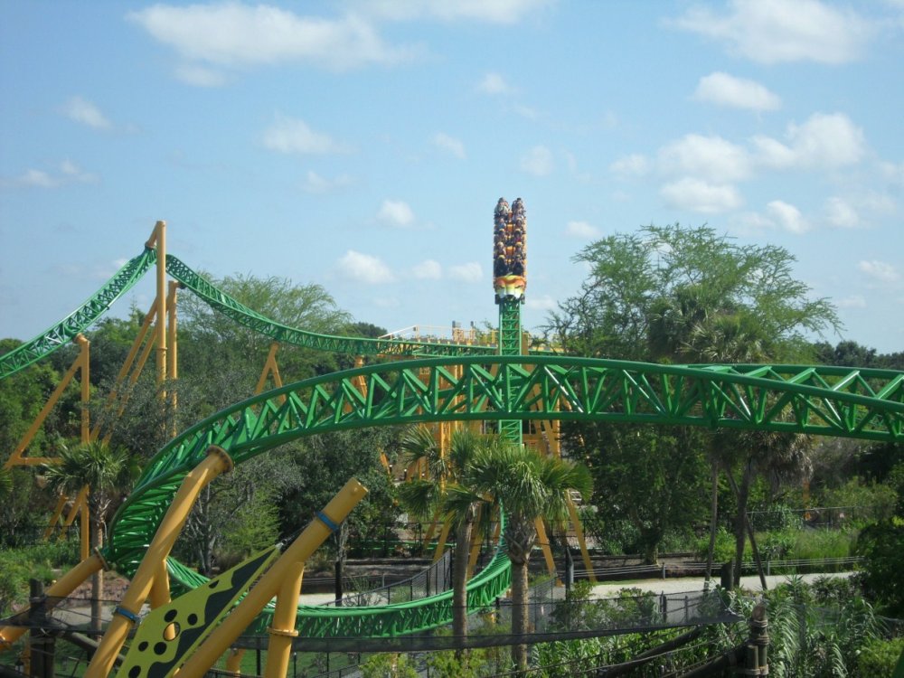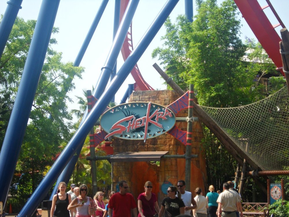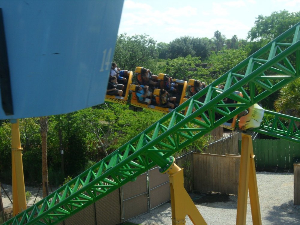 22. JUNE 3RD 2011 UPDATE STARTS TOMORROW WITH TONS OF SHOTS OF CHEETAH HUNT (if you know what I mean). I'll start today's update with the baby aardvark...it's just not the same as Kasi and Mtani...still cute though. It was roaming around his little "room" and sniffing...I think. Cheetah Hunt's corkroll! Different angle. Wait... This would be perfect if there was a Cheetah Hunt train right above it!!!!! UGH A look at the elephants. Timbuktu...this area has seemed "dead" this season. Hopefully they get rid of the Phoenix and put in a Screamin' Swing! Sheikra and Stanley Falls...the park was really empty in May...well at least before Cheetah Hunt opened. I love being in the front on the 4 second hang before the drop. I thought this shot was amazing! I can't believe I took this! Water Splash Finale Braking...whatever you wan't to call it. I love the view of Sheikra from the Zambia Smokehouse! Second drop into the tunnel...I miss the mist. Splash down! This is the entrance to the smokehouse and if you look up...this is what you see. Tidal Wave. This was supposed to turn out better but I was late and it didn't come out good. Sheikra's Immelman through the trees. This is my all-time favorite shot of Sheikra besides the one of the drop! I was really proud of myself haha. Just in case you didn't know what the big red thing I was taking pictures of or didn't bother reading the captions...here ya go. One last shot of the Sklooooooosh. A look at BGT's landscaping...doesn't even compare to BGW but still pretty. Statues of animals...they really must hate the heat haha...That's all from May's Update...Next update is June 2011 (the 3rd to be exact) and has a ton of amazing shots of Cheetah Hunt (literally) haha.
