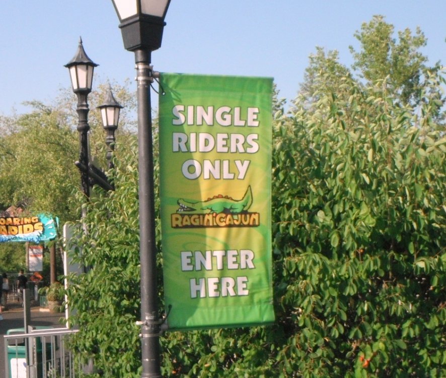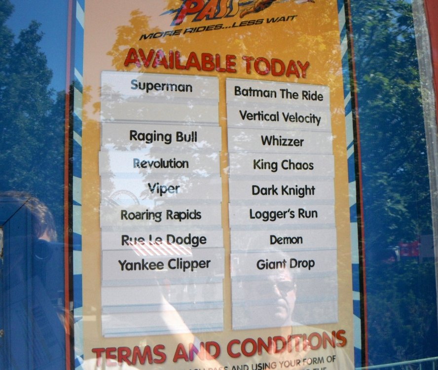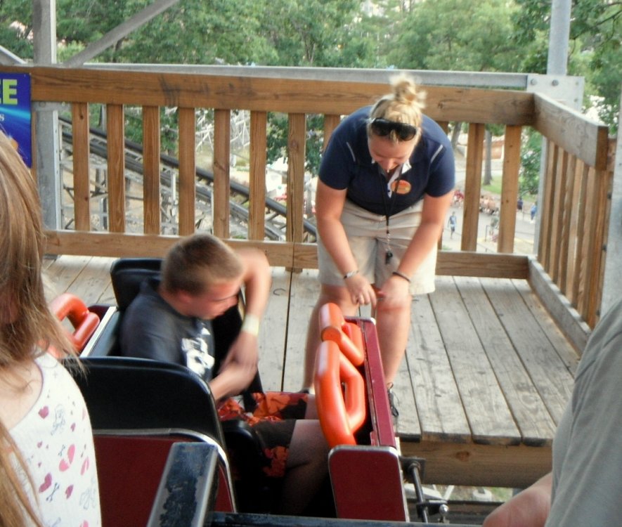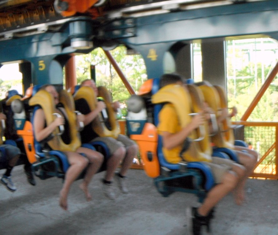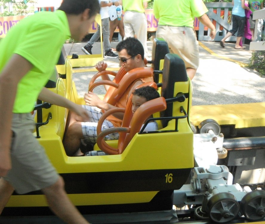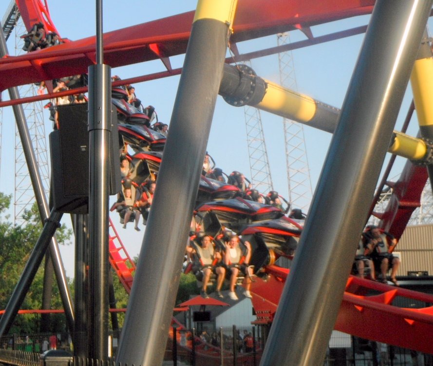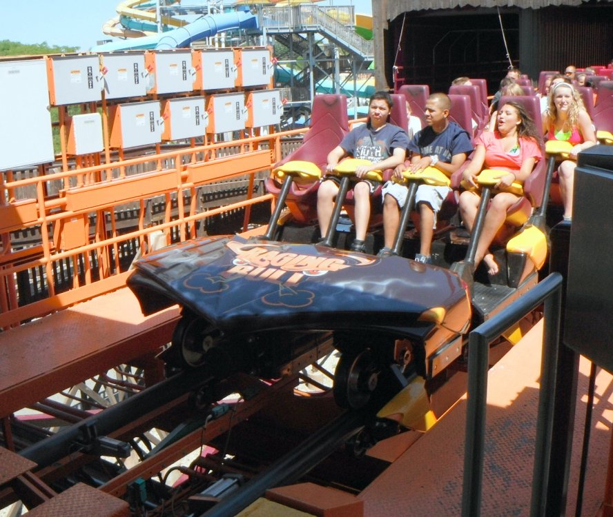 On this episode of The Adventures of LoneRider, will the LoneRider defeat X-Flight? Will he survive the excruciating heat of a hot June day? And does our hero finally have a riding companion? Well, in that order, yes, yes (mostly), and, eh, for a bit. It took a while, but I finally managed a visit down to Great America this year. My friend JoJo hadn't gone in a while either, so he wanted to come along (yes, I, in fact, was not the LoneRider for once). The day we picked originally had excellent weather and was shaping up to be a great day. Until earlier in the week when the forecast changed to 102*. Luckily it dropped slightly, but it was still a very hot day. Probably not the hottest I've faced at Great America before though, so it was fine. Unfortunately JoJo couldn't keep up with my pace (he nearly hurled on multiple occasions and was crapped out later in the day), so by the end of the day I was back to being the LoneRider. For those of you who haven't managed a trip up to Great America before, I encourage it. Of all the Six Flags I've been to, this is still my favorite. The park is very big with a ton of stuff to do and see. The coaster line-up is strong from top to bottom and there is a nice diversity of flat rides and themed areas (some more themed than others). I am also impressed with the water park; it seems to be above normal Six Flags quality and is a pretty good way to cool off for a bit with some nice theming and good slides. One of the only problems is that Great America is very popular, and lines at times can get quite long. Most of the rides are decent capacity (excluding our collection of wild mice), but on crowded days you might find yourself waiting a long time. That's why I've become a huge advocate for the Flash Pass, especially the Gold version. The initial cost may seem very steep and make you question whether or not it's really necessary (what if the lines are short and I waste a solid chunk of money?). Once you start blazing past hundreds and hundreds of people and wait next to nothing for most of the major rides, you will instantly love it. If you only can visit the park once or have a limited time for your visit, it is almost a must-buy. The longest wait we had all day was around 25 minutes for X-Flight. Speaking of which... I know X-Flight has already been reviewed numerous times and there have been several different view points, but come on guys! Let me have a turn! Word from the Coaster Nerd Wow, good job Six Flags and B&M. X-Flight was great! I rode in the last car, right inside seat and loved it. It was exactly what I was hoping for; something that provides a unique experience to the park with solid intensity and great capacity. Is it teh most amazing ride ever? (Well it has loops, so it must be. ) Actually, it isn't, but it is a very fun, different ride. I thought it was very interesting how, in the back, you get whipped over the first drop and alternate between high intensity and long, drawn out floatiness. The long in-line was awesome; it went on for a loooong time. It was very smooth, but I did notice in the last turn on both rides a bit of flexing action in the train and on the second ride my restraint got pushed down slightly, so the vest was very tight on my shoulders. However, if this is enough to ruin the ride experience for you, you're better off sticking to riding NoLimits coasters. As for my patented coaster ranking system, I organize the rides in this order: => Category 1 - Must rides (Try your best to hit them) - Raging Bull, V2, Batman, X-Flight, Viper, Whizzer (because I'll catch flak if I don't) => Category 2 - Solid rides (Best to at least try, but won't ruin your visit if you miss them) - Superman, American Eagle, Ragin' Cajun, Demon, Little Dipper => Category 3 - Up to you (Rides that might not be very exciting. Your choice on hitting these if time is short) - Dark Knight Onto the pics. Hope you have some spare time... This is JoJo. He will be accompanying me during our invasion of Great America. But can he keep up with me? We'll see. Waiting in line to pick up our Qbot. Here's the list of rides available today for Flash Pass. I'll reserve a spot for X-Flight as soon as we g- hey, where is it? Well, that's a bummer. I guess we'll have to do it the old fashioned way. Here's our little friend. His name was Lyle. Lyle was happy to help us have an awesome day. Thank you Lyle! Yes, I see you X-Flight. We'll get to you eventually, but we'll enjoy our Qbot a bit first. As much as Iron Wolfman claims it was his ride, I think I was one of the only other people who liked Iron Wolf. Sure it wasn't butter smooth (B&M had to start somewhere), but it was compact and intense and always worth a shot. I never found it as diabolically rough as others claimed it was. It was a good ride and I will miss it. Will a sign for something else be here next season? Who knows. First ride of the day (and season) for me, V2, a personal favorite. And all 3 signs in the picture as well. ^.^ NERD SHOT! I played around trying to get reaction shots when the ride launches. I think the girl in row 5 is hating her ride from the start. ;D That moment when everyone's heads are forced back against the seat. The same shot, only at 70 MPH. Congrats Batman on 20 years of great old school B&M intensity! We're both getting old, but the ride still delivers. I did notice some 'shivering' by the train during parts, but it's 20 years old! Hey, for the first inverted coaster in the world, B&M did some awesome work. Short, but VERY forceful and unrelenting. Another loop shot, now with 25% more tree! The 0 g roll, taken at a pretty good clip. Only a couple of rides and JoJo is already feeling it. "You're not *really* going to be taking pictures all day, are you?" While he catches his breath, I'll just keep snapping pictures. A pretty good loop shot for Derek and other loop enthusiasts out there. With the East River Crawler currently on vacation, the shot of the first corkscrew looks a littl