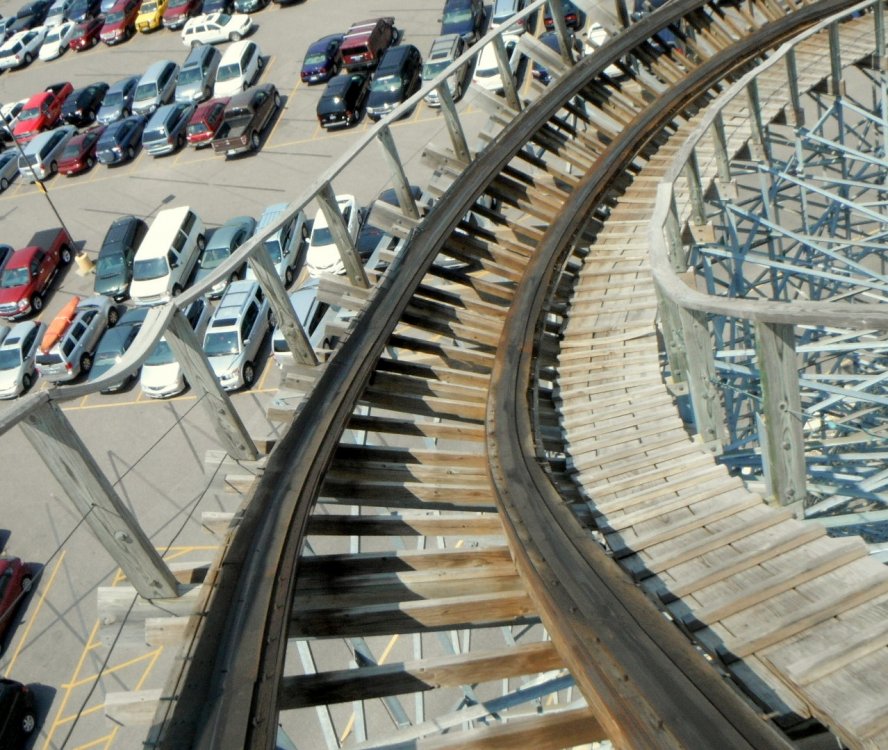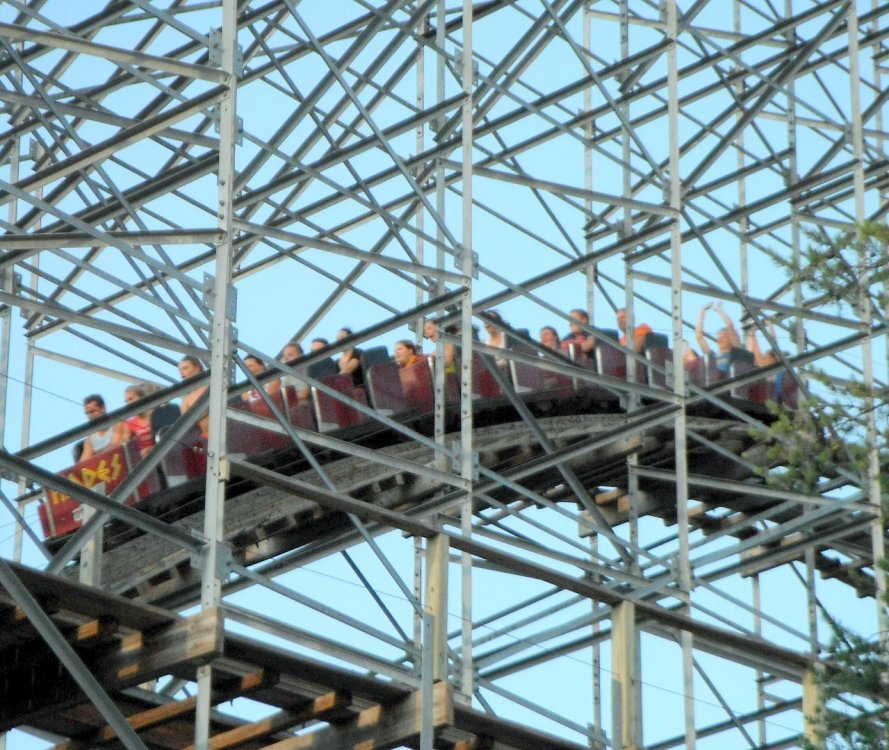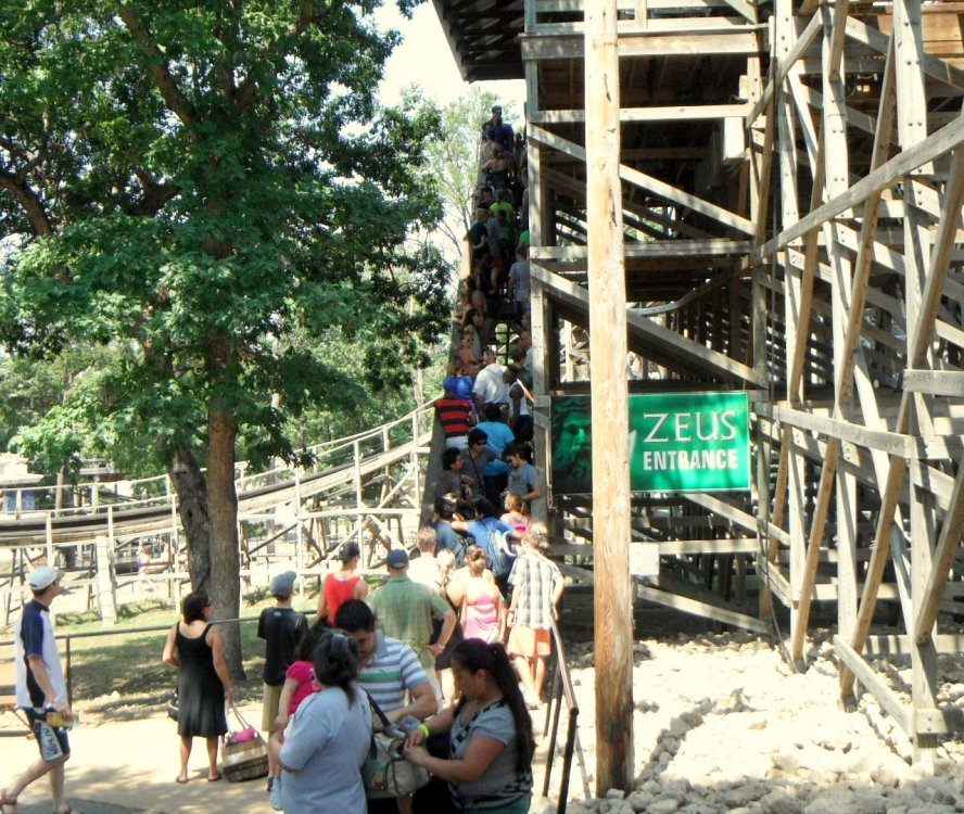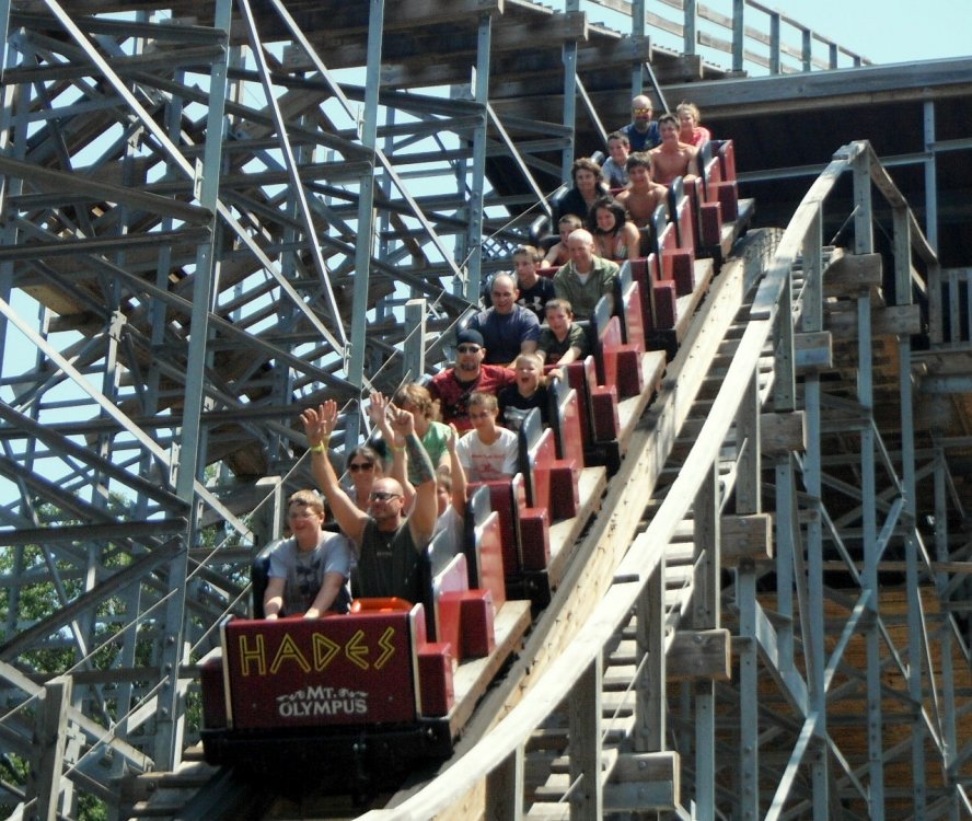 WARNING: A shmit-ton of reading ahead. If you want just pics scroll down. The first trip I ever took to Mt. Olympus was in 2004, the year it changed from Big Chief's (finding that website with no notice of the name change was a chore) and thoroughly enjoyed my visit. Since then it's been pretty incredible to watch the park explode the way it has by adding the waterpark next door and an on-site hotel. It was only to a point, however, as it seems like Mt. Olympus is beginning to devour a huge chunk of the Dells. Hotels left and right are being bought up (it seems like almost the entire left side of the strip into Lake Delton is owned by Mt. Olympus) or run out of business and the pricing is starting to concern me (it costs half the amount it does to park at Great America to get a less-complete park when only a few years ago there was no cost). It may sound like I have a bit of hate for Mt. Olympus, but in truth I really do like the park. It's a really expansive park that has a nice collection of wicked wooden coasters, some really unique go kart tracks, and plenty of waterpark options (including one of the most psychotic wave pools EVER). I always try to make at least one visit every year because it's a fun way to spend the day. The only problem I had is that for a place claiming to be a resort, it doesn't really *feel* like it to me. Sure they have the waterpark, the coasters, the hotels and everything, but I would hesitate to think of it as a resort compared to something like Cedar Point or any other comparable parks. A day here is often very hot, very tiring, and makes you leave feeling physically dirty. If they didn't try to market it as something along the lines of Disney, I wouldn't have much of a problem. I know that some people from the park might be present on this board and I hope they don't decide to ban me from the premises (shoot this man on sight ). I'm just portraying the park in great detail and offering my views. Once again, the LoneRider ride ranking system: => Category 1 - Must rides (Try your best to hit them) - Hades, Cyclops, Trojan Horse, Poseidon's Rage => Category 2 - Solid rides (Best to at least try, but won't ruin your visit if you miss them) - Zeus, Poseidon, Hermes Turbo Track => Category 3 - Up to you (Rides that might not be very exciting or good. Your choice on hitting these if time is short) - Pegasus, Opa After all the wooden coasters I've ridden, Hades is still my absolute favorite. I've never ridden a roller coaster than makes me laugh, drool, and have the time of my life every single ride. It really is one of the most unrelenting rides on the planet. Over the years, I noticed the bumps start to get more noticeable, but it was still amazing. The last couple of years, however, I was nervous each time I rode it, wondering whether I would come off the ride laughing and whooping or groaning and holding my head. With the extremely hot and dry summer we are having up here, I was worried that this visit would be a particularly trying one. However, after one ride, my fears were put to rest. Hades was running ferociously as ever and was no rougher than any other wooden coaster (heck, all of the rides were manageable today). As a seasoned rider, my best advice to have the best trip to Hell you can have is FRONT SEAT. It can make a shocking difference. The very front seat is an adrenaline-pumping ride, while the row right behind it can be a serious spine-buster and end your day very quickly. No worries, the wait for the front is often quite short and if you go on a weekday the wait is usually around 30-45 minutes. If you haven't done it before, try Cyclops for the backseat (18 years and up only!). However, more than one ride is not advised. The airtime on the ride is crazy, but it has gotten downright *brutal* with age. You'll be feeling this one for a bit. Zeus was actually pretty good on this visit, but it is also a front seat ride. The turn around can be a bit of a challenge anywhere else. For you first time visitors, bring your swim suit and try the waterpark. It is a nice one (not as nice as Noah's Ark), but still a good way to break up the day. And absolutely check out Poseidon's Rage. This wave pool is downright terrifying. You never knew drowning could be so much fun. Now, to give you guys an idea of what could be improved, a small list of things that could make the park better: - Coaster upkeep - PLEASE Mt. Olympus. You have a potentially outstanding line-up of wooden coasters here. I can only guess how much work goes into maintaining them and judging by some new wood in places, I'm glad to see you're trying. However, some more focus in this area could seriously go a long way. Hades is fantastic and the ride up to the hill out the return trip from the tunnel is fine. It's that looong turn that seems to be a trouble spot on the ride (much like Voyages' turn around). It's not too bad early in the day, but as the ride heats up it it's impossible to ignore. Those last couple of banked hills and turns could also use some TLC. You have a world-class coaster here! With a little polishing you could avoid some future problems if other areas start to deteriorate. Zeus could be a great ride and Cyclops could be even better if some more attention was given to it. Just by judging where the money seems to be going each off-season, I think this would be a better investment. - Two trains or Timberliners - Again, I think a better investment than enlarging the parking to a ridiculous size would be to add a transfer track to Hades (which is most likely not an option due to the design of the ride), so at least Timberliners would make me happy. It would just be another way to keep Hades running in the best shape possible. - Go-kart upgrade - As large as the theme park industry is, there must be *someone* that designs go-karts, and there must be some that are cleaner and greener than the ones that make up the Mt. Olympus fleet. I understand it would be a LOT of karts to replac