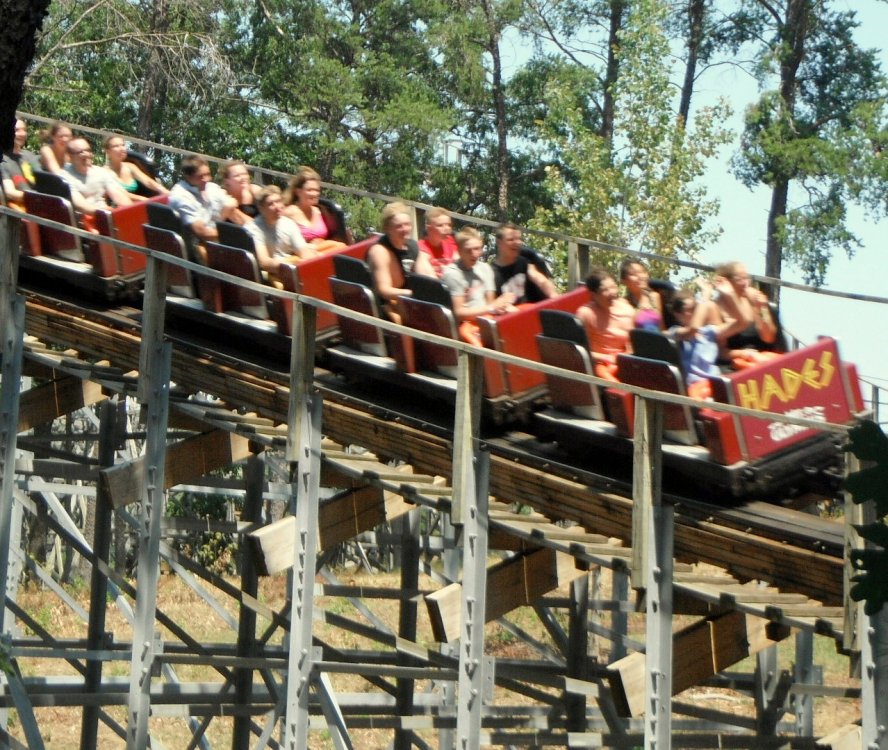 Pics! Pics! More pics! Remember guys, I ask for questions/comments/concerns because I really do want feedback! The last report I did basically got nothing. Nada. Zip. Zilch. (And thank you to those who did. It was greatly appreciated). Well, here we are! Hades awaits! Hades welcoming me to the park in the best way. =D Zeus doing it's thing as well. Eh, I guess it good to see you too... Is that the line for Zeus?! Holy crap. O.O I pray it's not that busy today (luckily it mellowed out not long after this). Ah, one of my favorite rides out there. Enough waiting, let's ride! Oh wow, that sign would have such a HUGE impact. If it wasn't up every. Single. Day. At least it tells the truth. A long, long climb up. If anyone ever said Hades runs so fast it might shake itself to pieces... Well, you might not be that far off. The drop out of the station is honestly great! In fact, the pre-lift section is probably better than some coasters. This is the section of the ride that needs the most attention. However, if you are expecting to run like, well, a wood coaster, then it's not too bad. Besides, it's hard for a small section of track to ruin an entire hell-raising ride. One of the couple very good moments of airtime before you even hit the lift. This area of the ride needs some help too, but there are so many worse rides out there. Diving down after the return trip through the tunnel. I love the queue for the ride as well. Getting up close and personal with a couple of PTC cars at 50 mph is pretty awesome. Also, some timely holes in the barrier provided me with some nice photo opportunities. What is it with the Dells and gum? Scorpion's Tail has the gum tree and here Hades has the gum post. Good thing I wasn't hungry... I see a lot of happy faces, so I'm excited. =D I think the kid in row three might be dead, however, so I'm also apprehensive. =\ How about some POV pictures? The drop out of the station and the beginning of our adventure. (*Checked and okayed by the ride ops*) A lift hill shot for those of you out there into that kind of stuff. We just have to make it under the parking lot and over there. Piece of cake, right? Oh man, I love this drop. =D Don't forget to smile for the camera! Well, we made it through. Let's do it again! Some great airtime all the way back down into the abyss. Yay, we made it out! And little low g's into the hairy part of the ride. More airtime into the last turn, another problem area. No worries gang, it was running great! This attraction is far better than the one it replaced. Honestly, Dive to Atlantis wasn't a bad ride. It just wasn't very exciting and it had the most *agonizingly* slow line ever. That concrete slab is all that is left of what was the best moment of airtime on a go-kart track ever. =( THE drop. The airtime is OMFG insane, but this also the most brutal part of the ride, and I thought Mean Streak wasn't that bad at all. Still, Cylops has at least 4 moments of wicked airtime and should not be missed. Just don't expect to marathon it. Mt. Olympus is home to a wide variety of unique go-kart tracks. If you're looking for adventure, try Trojan Horse or Poseidon. If you're into more traditional racing, try Hermes. And it's LoneRider approved! =D Little Titans for you credit whores. Sorry though, there is a max height. Here's a bit of a beef I have with the park; there is enough shade by the wooden coasters, but once you get to Hermes, it's wide open and very hot. Perhaps a few more trees or something would be appreciated. Pegasus rounding the bend. Seriously, for the smallest wooden coaster here, this is one of the worst out there! Watch out for that last turn. It is an absolute neck-snapper. Hey, at least I got two trains in one shot. This hill might not look like much, but watch out. Holy ejector airtime Batman! There's just five words to say as you fall down, down, dooowwwn... I think your butt is still completely out of the seat here if you're in the back . At least this part of Mt. Olympus is Dave approved, right? Airtime here? Maybe. A little discomfort? Most likely. Hades hurtling through the woods. Cresting the hill out of Hell. I'm my own group leader. I am the LoneRider after all. 8D A brief moment for everyone to catch their breath before plunging back down. Flying high all the way down. Not the best pic of Trojan Horse, but it gives you the idea that it is an expansive, enjoyable track. I took this picture because I too have crabs. =D (hermit crabs) Here was a new one; men working on the ride structure while the ride is running. I hope they get paid enough... Back over to Hades, where everyone is having the time of their lives. Avalanche/Hellcat way over on another hillside. It's kind of Hades' little brother, but it's just as crazy. This view never gets old. I just realized now I could have used the night mode on my camera to get pics inside the tunnel. =( Then again, I don't want to ruin the experience for anyone. ;D Hmm... Maybe later. Let's hit the waterpark, shall we? The new DJ in the wave pool was an interesting touch, I thought. Nothing like listening to tunes while being rolled by a mammoth wave. Here's TPR first - POV of Poseidon's Rage. Let's just say this won't end well... (Yeah, those sunglasses will protect you...) One of the few serene moments in Poseidon's Rage. Until this happens. Yep, that's a 9 footer. It's amazing. =D This year Mt. Olympus opened up their new water playground area. I was very happy with the result! It was highly popular and immersive. Water coming from ALL directions. I loved it. =D The area had just a touch of theming (I wasn't asking for much) and it was very original. The structure had the big bucket, little buckets, nozzles, hoses, bells, whistles, the whole nine yards. It was interesting to see you could almost drown on dry land. The big mat racing slide. This was also the first time I had ever seen someone go all the way through the splashdown area and off the end of the slide. O.o The quarter-pipe 