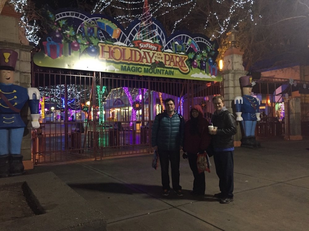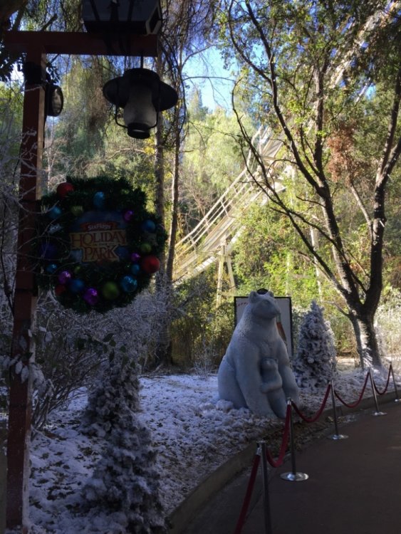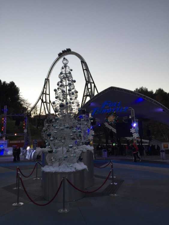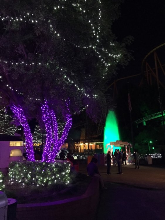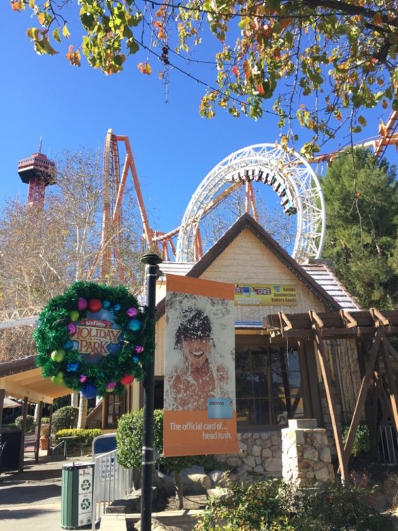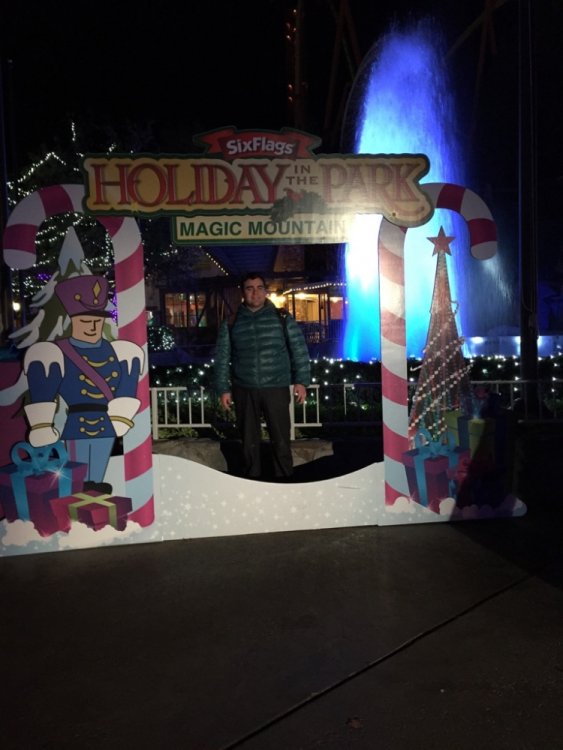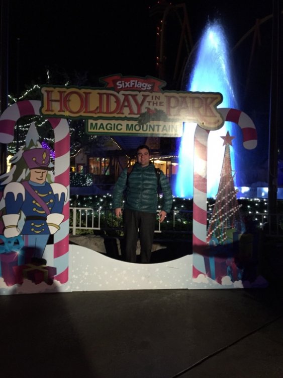 2. MY NEW YEARS DAY TR: I was at the park on New Years Day with a few friends from San Luis Obispo. Two of them won tickets from a local radio station and one of them already had a season pass. I decided to get a season pass since I will be going back when Twisted Colossus opens. Also I may now do a trip now to Discovery Kingdom to ride that new Superman coaster they have. Anyways one of my friends who won tickets had never been to Magic Mountain before and was uneasy about certain roller coasters and the most intense roller coaster he had been on prior to this day was California Screamin' at DCA. We started the day getting him on Revolution which he liked. We walked towards the back of the park past the fake snow area in the Roaring Rapids Camp (it was cold enough for them to use real snow - lol) expecting to get on Apocalypse. It was closed for the time being and they was someone actually on the track doing work. They said it may open later in the day. Tatsu was also closed when we had walked by it - they said they were waiting for it to warm up a bit more (it was 46° F). We kept walking and Marlena (the season pass holder) wanted to go on Riddlers Revenge. They were testing it and people were lined up waiting for it. I said we have to build up Adam (the first timer) for that one. We did a quick ride on Gold Rusher. We started walking toward DC Universe. Lex Luther wasn't open yet so we went to Scream. Adam was nervous about getting on Scream. I walked up to the ride and decided to not to get on due to a recent head injury (don't worry I'm fine). No Scream, Viper, Tatsu, or X2 for me today. Adam was strapped in and bailed at the last moment (probably because I wasn't on). Adam's girlfriend Fina rode with Marlena while Adam and I waited. Marlena wanted to try and get Adam on Goliath, so we walked towards it. Lex Luther was now open so Marlena and I rode while Adam and Fina waited. Fina likes most thrill rides but was feeling under the weather today. We all got in line for Goliath. It was probably about a 20-30 min wait. Lex Luther was a 5-10 min wait and the others were walk ons. There were decent crowds today, but not too bad, and definitely a lot lighter than Summer. The cold weather kept some people away on New Years Day. Anyways we were able to get Adam on Goliath, mainly because it didn't go upside down, and the peer pressure from the three of us. He was screaming half the ride, but he enjoyed it and said he'd be willing to go on it again, just not right away. This was a big leap forward for my friend. Next, we walked towards Full Throttle. It was about a 15 min wait and I didn't tell Adam (or the others who hadn't been on YOLO prior) about the back half of the ride. He was totally surprised about the backwards launch and lost his sunglasses (I didn't realize he was wearing them or else I would have told him to take them off). He loved the ride and liked the fact the loop was long and straight as opposed to short and abrupt. Adam and Fina needed a break and wanted to walk around so we looked at some shops by the park entrance and then took Orient Express to go up the mountain while Marlena went to check on X2 (which had been closed on her prior visits). At the top we were going to go up the Sky Tower but it was closed (is that thing ever open?) so we got in line for Ninja while Marlena went on X2. The wait for Ninja was 30-40 min. Marlena was done with X2 before we got on Ninja (I think she waited less for X2 then we did for Ninja - lol). After Ninja we all went on Superman which was about a 45 min wait with one side running. The other one train rides of the day were Ninja and Batman. Adam almost got off of Superman at the last moment but we convinced him to stay on. As he was asking what to hold on to they launched the ride without an announcement. We were all laughing afterwards and he thanked us for making him stay on. I think it was his favorite ride of the day. We were pretty hungry afterward and went to the Full Throttle Plaza to get wings and hot dogs while Marlena went to get Panda Express and met us at the plaza. It got dark while we were eating and the lights came on. Full Throttle Plaza and the front of the park looked great with all the lights. After eating we separated for a bit and met up by DC Universe. We saw the light show (basically just changing light patterns) and Marlena and I got a night ride on Lex Luther which was only a few minutes wait. It was great seeing all the lights at the front of the park from high above. Afterward we decided to try and get Adam on Batman. It was about a 10 min wait. Again, Adam was a bit nervous but we were able to keep him on. He really liked the ride, probably not more than Superman or Full Throttle, but probably more than Goliath. Next we walked towards Riddler's Revenge. Adam was a bit more confident and decided to try Riddler. It was a walk on to the station, probably the emptiest I've ever seen Riddler with two trains running. I wasn't going to originally do Riddler today due to my head injury six days prior, but I was feeling fine on everything else and I wanted Adam to get on so I got on too. Adam felt more comfortable sitting rather than standing so that's what he did (whatever gets him to ride). He liked the ride and said he'd be willing to try it standing up next time he rode it now that he knows what the ride was like. Since the station was empty, the crew let us ride again: Marlena and Fina did while Adam and I waited. Time was ticking as it was 40 min to park closing (8PM). The back half of the park was deserted and it was pretty dark exiting Riddler (they need more lighting!). Marlena and I walked to Apocalypse to see it was open while Adam and Fina looked in a shop nearby. Apocalypse was open (and a walk on) so I called him and Marlena and I rode while we waited for Adam and Fina to arrive. We all rode together when they arrived at the station. Apocalypse was more wild then they expected but they enjoyed it. After 