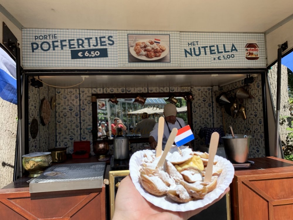 Same here. I actually liked Duinrell and didn't hate it or dislike like it like some people on the trip. This is a place where I could spend a weekend and just kick it and enjoy the water park (which looked really good) and walk around doing some rides and explore around like going to that view point you went to (which I didn't even know about until you snapped a picture of me on the alpine slide). Gearhart and I had a pretty good game plan for hitting up all the coasters that Andrew Goldberg went along with for the most of the time we were there. We went around counterclockwise and hit up all three coasters first starting with the Eurofighter. We waited 45 minutes for the Eurofighter and about 15-25 minutes each for the other two coasters. We were also able to do Wild Wings and the alpine slide and have lunch in between at La Place (which was pretty good although the most expensive counter service meal I had in NL). I also did the very tall slides and the Aqua Chute slide. I really wanted to do the boat jump but had to cut that out (I've done the one at Skyline Park in Germany though) and would have also wanted to do the covered splashdown boat but we decided to skip it to fit in Wild Wings and the alpine slide. I definitely could have spend a whole day here but a few hours here was better than no time at all here and being stuck at the crowded airport longer. You can tell I was having a good time here by the pictures you took of me. Great pictures of Amsterdam from the air btw. I'm envious you were able to get a window seat on the right side of the plane. I really did miss the best part, didn't I? Poffertjes should be an automatic! I only had Poffertjes twice on this trip and this was one of them. I had two different styles of Poffertjes, traditional here and with cherries and cream toppings at Walibi and both were great. These were kind of messy but I ate them while walking and waiting in line for the alpine slide. I feel like it's a good park to just hang out at. I definitely get the camping aspect and why people would want to stay overnight here. The Poffertjes I had at Duinrell (sorry to troll you with this picture Andy)