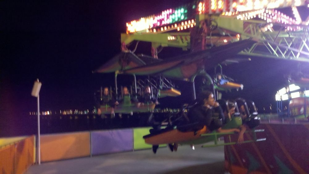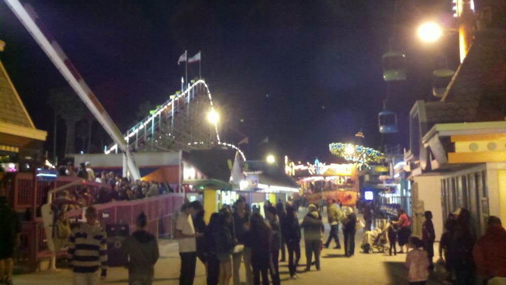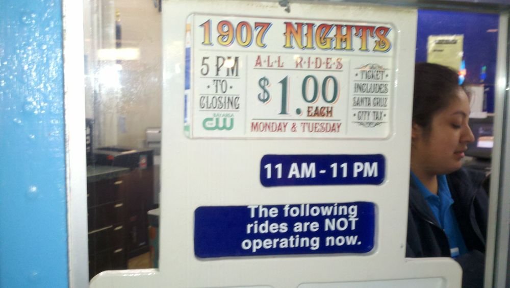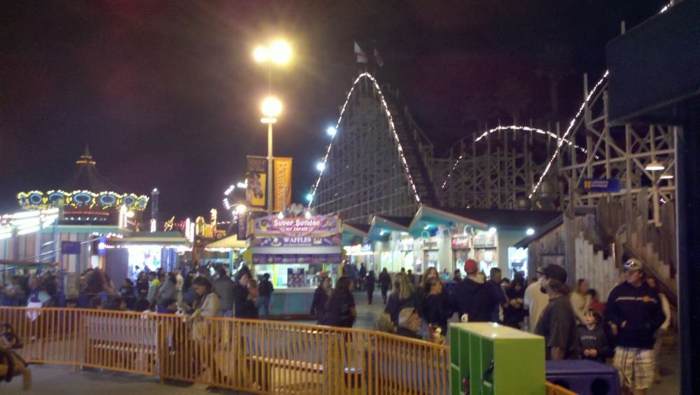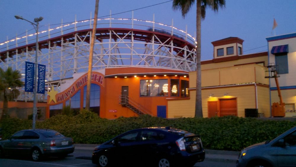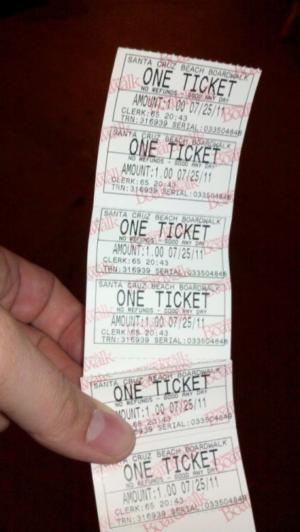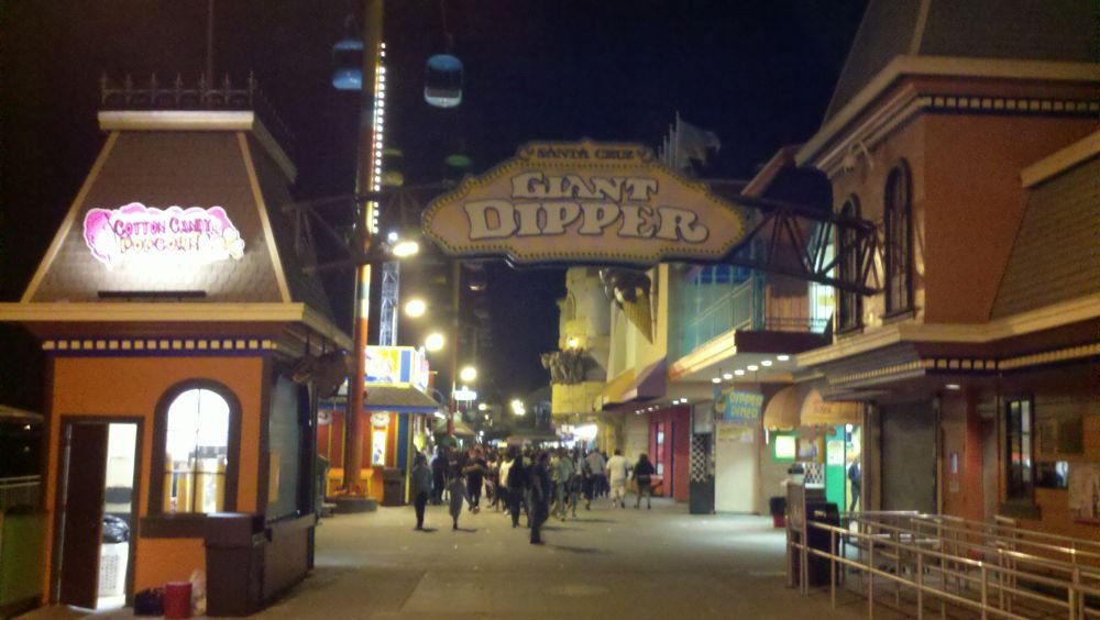 Now its time to head to Santa Cruz Beach Boardwalk for 1907 Nights - $1 rides (one ticket each), $1 Pepsi, $1 hot dogs, and $1 cotton candy! First things first, since my eyes are now red and twitching from the chlorine of some of Raging Waters rides I need some eye drops ( I didn't notice this until I left RW). I also need food. I find a Lucky grocery store (didn't know those still existed) right outside Raging Waters so I get Visine in my eyes (much better ). There's also a In-N-Out in the Lucky center, so a one-two punch. My $3.63 meal from In-N-Out Burger plus a $1.67 Red Bull from Lucky (not pictured). Cheap, delicious, and it refuels me. Now on to Santa Cruz. Once I get out of the San Jose area the drive down to Santa Cruz on Hwy 17 is very scenic (sorry no pics, I was driving) with lots of hills and trees. I arrive at Santa Cruz. I can hear the screams of the Boardwalk before I even leave my car. I find one parking spot right by the Giant Dipper so I take it. Its a metered spot and since its after 8 PM its free! This is the Boardwalk's other main coaster. Hurricane uses 12 passenger trains and had two trains running. Time to buy the tickets. I bought 15 thinking I would have time to do 15 rides - BIG MISTAKE! I ended up doing 9 rides before the 11 PM park closing. Wish I would have gone with my original instinct and bought 10 instead. Time to check out the park map, which is also my park souvenir. The first place I head to is the nearest bathroom which is in this place. A pirate themed indoor mini golf/arcade area. Very nice! I pass by the Double Shot which has a long line. Last time I came to SCBB was in 2005 and this ride was brand new back then. I figure I'll come back to it later (of course I never make it back to this ride). Going up ...and back down. There was a Pirate Ship ride next to it I would have probably ridden if I had more time. A view of the beach at night and the wharf in the background. OK, time to ride some rides, time is ticking. Hurricane is my first ride of the night. I didn't realize how long the line was until I had entered it, but the line moved quickly as the ride had separate loading and unloading areas and I ended up waiting 20 minutes. Hurricane packs quite a punch for its size and is fun. Next up was Sky Glider to get to the other side of the Boardwalk. Luckily I only had to wait a couple of minutes to get on this. The ride across to the other side took eight minutes as it stopped several times (reminded me of a ski lift). I filmed the whole time while on this which will be a POV posted below. Sea Swings was on the other side of Sky Glider so this ride was next. It was your average swings ride but its beach side location made a difference. In case you forgot where I'm at. The Giant Dipper sits in the middle of the Boardwalk. I'll get to you later. Cliff Hanger was next. You can see the Giant Dipper in the background. Cliff Hanger was fun but I was concerned as time was ticking away. I started to notice a pattern that SCBB is slooow at loading its flat rides. Santa Cruz Beach Boardwalk looks so great at night. All the other times I've been here have been during the day, so seeing it at night was a totally new experience for me. Here you can see the splashdown from Logger's Revenge. I didn't ride it having been wet at Raging Waters all day. This is the part of the Boardwalk where they have rides on top of each other. I remember back in the day when none of those rides were under the Logger's Revenge. I'm eyeing those two rides above Cave Train Adventure. Tornado was the next ride I went on. It was a walk on so I thought what the heck. It ended up being my least favourite ride of the night. The constant spinning made me a little dizzy. Cyclone was right across from Tornado, so that was next. It is one of those rides where you stand against the wall with one little belt strapping you in and all the G's suck you against the wall. It ran a long cycle (like five minutes). It had been seven years since I've ridden this type of ride and I now I remember why. More than halfway through the ride people were begging for it to stop, myself included. It will probably be another seven years before I attempt this type of ride again. Next up was Crazy Surf. I almost skipped it because I was running low on time, but I'm sure glad I didn't! Its hard to tell from the picture, but this ride is an airtime machine. Loads of it on every turn over the top. It goes vertically counter-clockwise then clockwise. This was my second favorite ride of the night. The ride fits 18 passengers per cycle and I was kinda ticked off that in the cycle before my they let one seat ride empty as I could have been on that seat and then been off to the next ride (SCBB should have single rider lines on some of its rides or call out for a single rider). It was past 10:40 PM and I was concerned about time since they close the rides at 11 PM. The cycle right before mine was insanely long - over five minutes. My cycle was generous but not nearly as long as the previously one. The ride operator stopped the ride at the end waiting for the riders to demand more (as with the previous cycle) but someone had to throw up so they let her out and the ride ended. It took longer to unload every one else (time was ticking) because of this. I'm surprised someone throw up because of this ride but not because of Tornado or Cyclone. Coaster whoring time! Sea Serpent is my newest credit. I almost had to skip it as it was 10:52 PM but since it was a walk-on with the coaster in the station I hopped into the vacant back seat. Sea Serpent was pretty wild for a kiddie coaster and while kids where putting their hands up in front of me, I was holding on in the back. Sea Serpent circled around the track twice and then it was done. I'm glad it didn't circle around a third time or else I might have missed Giant Dipper. I made a mad dash for Giant Dipper. There was no way in hell I was going complete a visit on the Santa Cruz Beac