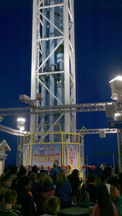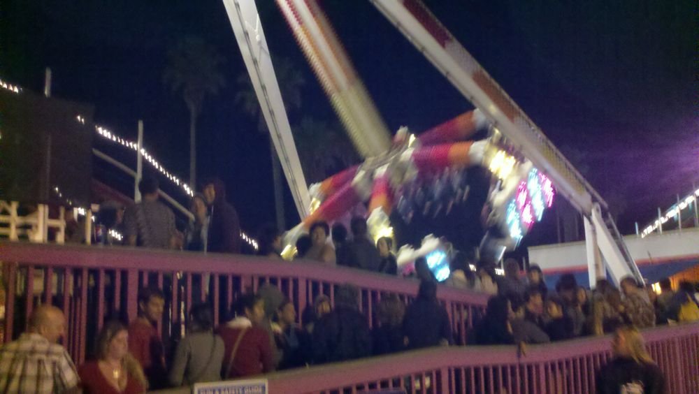 Here is a 720p HD video of Bombs Away! It was taken with my Droid X phone therefore I couldn't zoom in to see the capsule drop. My normal camera (a Sony Cybershot w/ 12.1 megapixels and 5X zoom) needed a new battery charger which UPS delivered to my house the next day. I wish I would have filmed the rider right before this one because he had a much bigger splash at the bottom - oh well! Santa Cruz Beach Boardwalk at Night pics coming soon! -